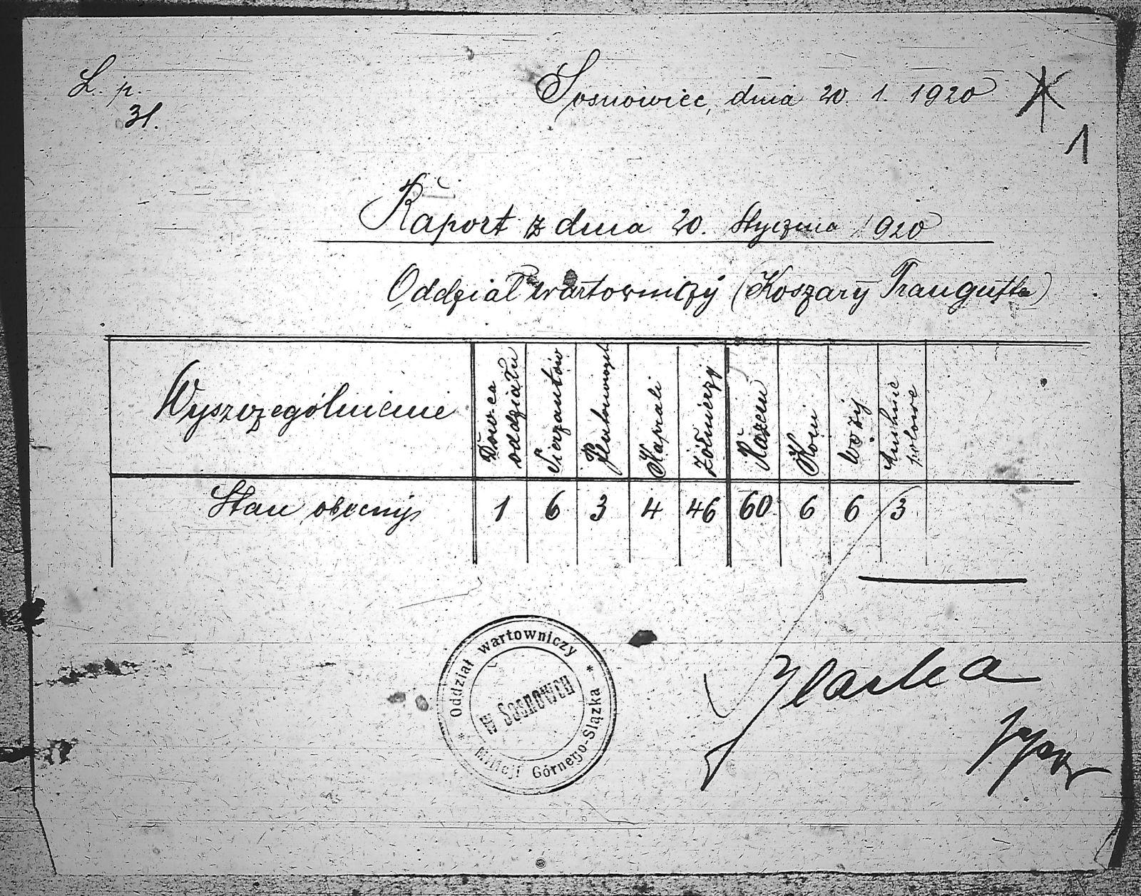 | Tytuł | Raport dzienny z oddziału wartowniczego - Koszary Traugutta |