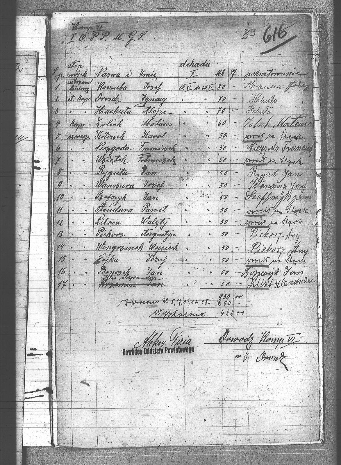 | Osoby | Bonczek, Jan; Drosdz, Ignacy; Fizia, Aleksy; Hachuła, Alojzy; Klis, Aleksander; Koczuba, Jan; Kołoczek, Karol; Libera, Walenty; Niezgoda, Franciszek; Piekorz, Augustyn; Ryguła, Jan; Sojka, Józef; Standura, Paweł; Szefczyk, Jan; Wanszura, Józef; Wengrzinek, Wojciech; Wziętek, Franciszek; Zolich, Mateusz; |