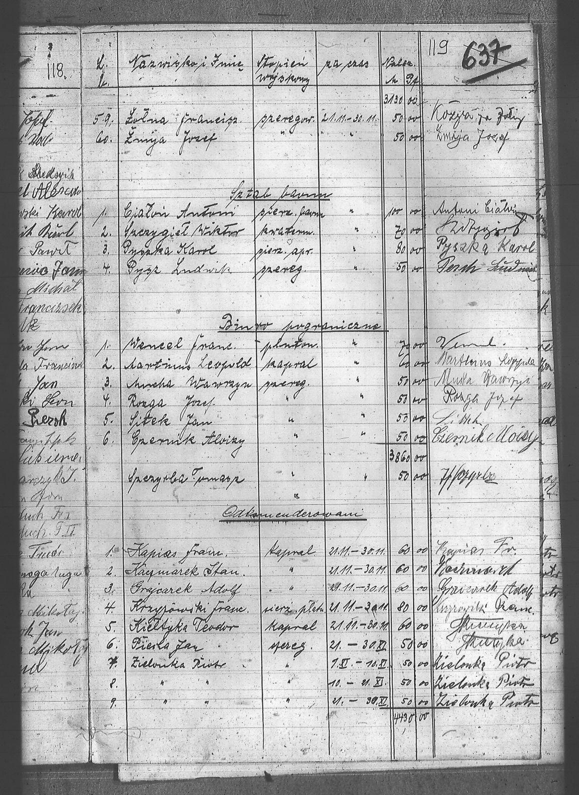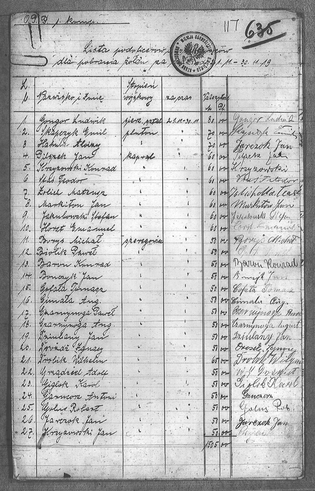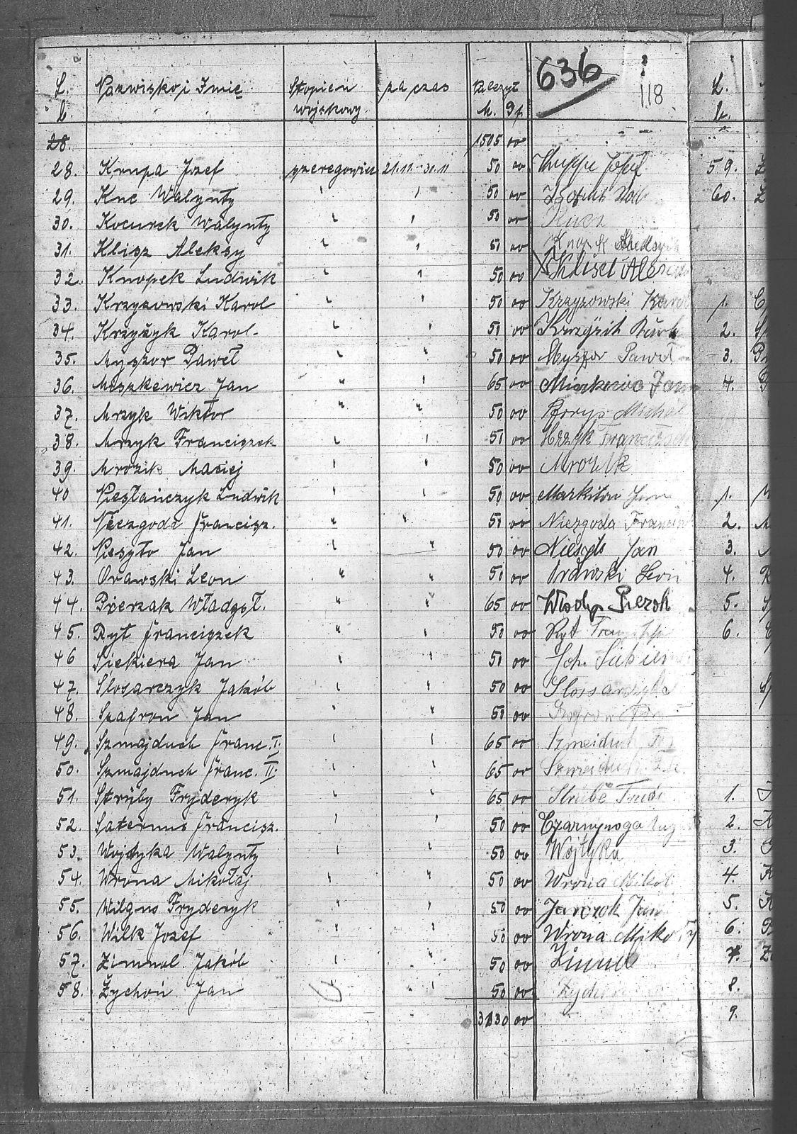 Baron, Konrad; Biolik, Paweł; Bonczyk, Jan; Borys, Michał; Ciałoń, ; Ciałoń, Antoni; Cimała, Augustyn; Cofała, Tomasz; Czarnynoga, Augustyn; Czarnynoga, Paweł; Czernik, Alojzy; Drobik, Wilhelm; Drożdż, Ignacy; Dziubany, Jan; Fiział, Aleksy; Galus, Robert; Garncorz, Antoni; Giglok, Karol; Gongor, Ludwik; Grajcarek, Adolf; Grządziel, Adolf; Hachuła, Alojzy; Horst, Emanuel; Jakubowski, Stefan; Jarczok, Jan; Kaczmarek, Stanisław; Kapias, Franciszek; Kiełtyka, Teodor; Klisz, Aleksy; Knopek, Ludwik; Kocurek, Walenty; Kozyra, Franciszek; Krupa, Józef; Krzyżowski, Franciszek; Krzyżowski, Jan; Krzyżowski, Karol; Krzyżowski, Konrad; Krzyżyk, Karol; Kuc, Walenty; Markiton, Jan; Martinus, Leopold; Miszkewicz, Jan; Mrozik, Maciej; Mrzyk, Franciszek; Mrzyk, Wiktor; Mucha, Wawrzyn; Myszor, Paweł; Niesyto, Jan; Niezgoda, Franciszek; Orawski, Leon; Piecha, Jan; Pierzak, Władysław; Piesłańczyk, Ludwik; Pilszek, Jan; Pysz, Ludwik; Pyszka, Karol; Rózga, Jan; Ryt, Franciszek; Saternus, Franciszek; Siekiera, Jan; Sitek, Jan; Skapczyk, Emil; Slósarczyk, Jakub; Staś, Teodor; Strube, Fryderyk; Szafran, Jan; Szczygieł, Wiktor; Szczyrba, Tomasz; Szmajduch, Franciszek I; Szmajduch, Franciszek II; Wencel, Franciszek; Wilgus, Fryderyk; Wilk, Józef; Wojtyka, Walenty; Wrona, Mikołaj; Zielonka, Piotr; Zimnol, Jakub; Zolich, Mateusz; Żmija, Józef; Żołna, Franciszek; Żychoń, Jan; |