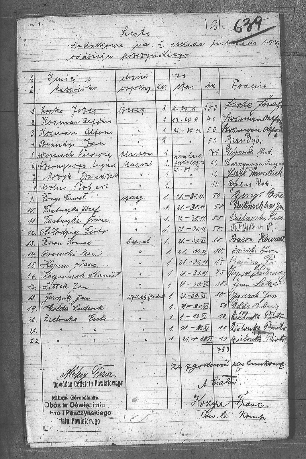 | Tytuł | Lista dodatkowa na III dekadę listopada 1919r. Oddział Pszczyński. |