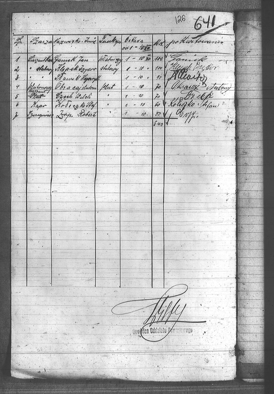 Tytuł Lista żołdu dla I Baonu O.P.R. I dekada.