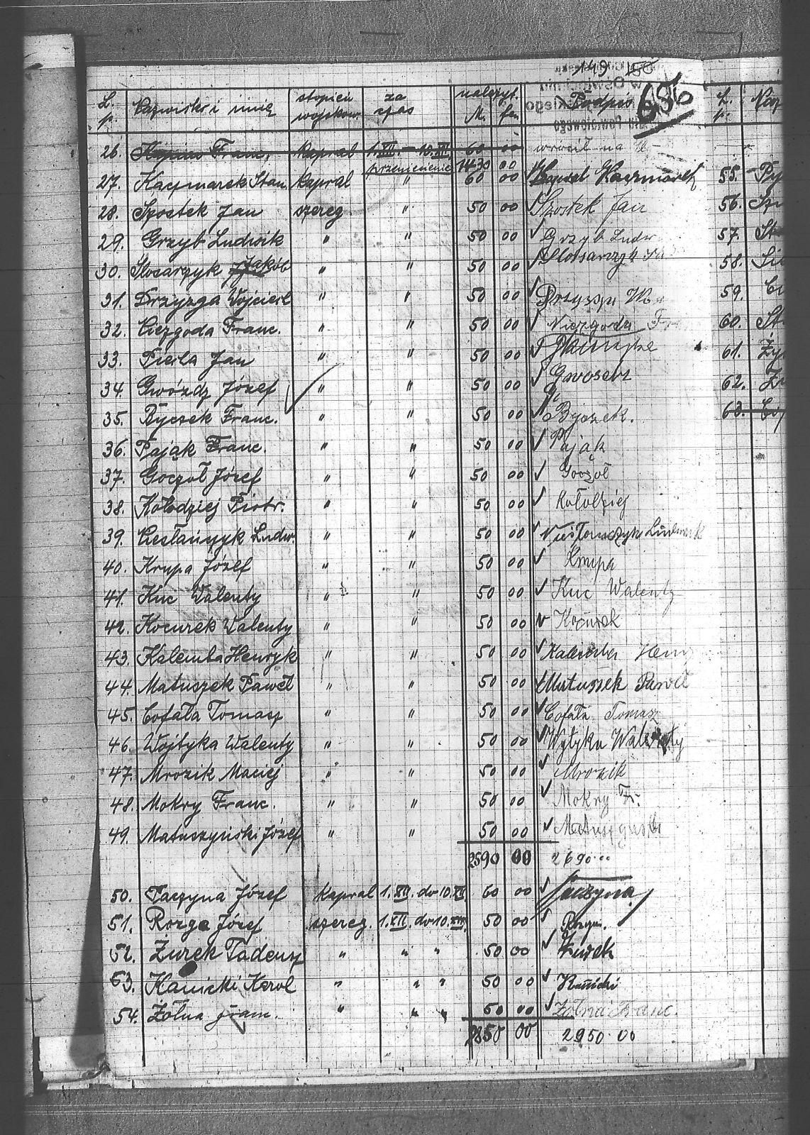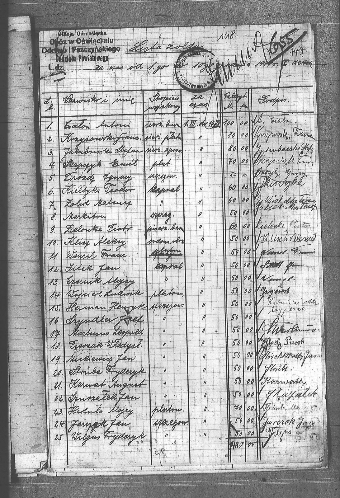 Byczek, Franciszek; Ciałoń, Antoni; Ciesłańczyk, Ludwik; Cimala, August; Cofała, Tomasz; Czernik, Alojzy; Dróżdż, Ignacy; Drzyzga, Wojciech; Goczoł, Józef; Grzyb, Ludwik; Gwóźdź, Józef; Hachuła, Alojzy; Herman, Henryk; Jakubowski, Stefan; Jarczok, Jan; Kaczmarek, Stanisław; Kalemba, Henryk; Kanicki, Karol; Karwat, August; Kiełtyka, Teodor; Klisz, Aleksy; Kocurek, Walenty; Kołodziej, Piotr; Krupa, Józef; Krzyżowski, Franciszek; Kuc, Walenty; Markiton; Martinus, Leopold; Matuszek, Paweł; Matuszyński, Józef; Mickiewicz, Jan; Mokry, Franciszek; Mrozik, Maciej; Niezgoda, Franciszek; Paczyna, Józef; Pająk, Franciszek; Piecha, Jan; Pierzak, Władysław; Pyrz, Ludwik; Rózga, Józef; Siekiera, Jan; Sitek, Jan; Skapczyk, Emil; Staś, Paweł; Staś, Teodor; Strube, Fryderyk; Szmajduch, Franciszek; Szostek, Jan; Szurzałek, Jan; Szyndler, Józef; ślusarczyk, Jakób; Wencel, Franciszek; Wilgus, Fryderyk; Wojciech, Ludwik; Wojtyka, Walenty; Zielonka, Piotr; Zimnoł, Jakub; Zolich, Mateusz; Żołna, Franciszek; Żurek, Tadeusz; Żychoń, Jan; |