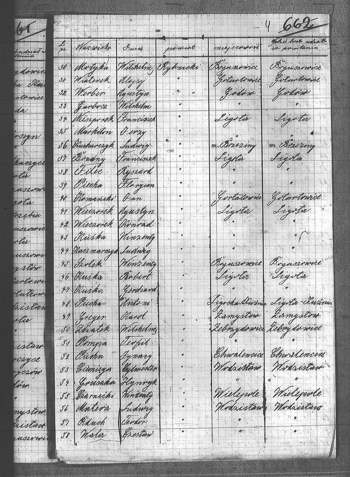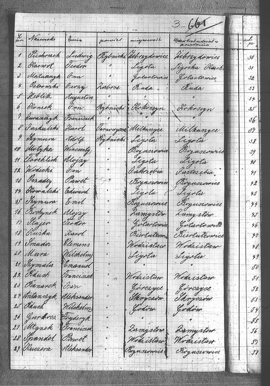 [Panic], Antoni; Anas, Karol; Antanczyk, Aleksander; Babilas, Alojzy; Baja, Józef; Banarek, Jan; Bielaczek, Augustyn; Bochynek, Alojzy; Brudny, Franciszek; Brzoza, Jerzy; Ciemięga, Sylwester; Cyba, Franciszek; Czarnecki, Wincenty; Czech, Emil; Czech, Jan; Dziuba, Franciszek; Filec, Ryszard; Frochlich, Alojzy; Ganiek, Jan; Garbocz, Wilhelm; Garbosz, Franciszek; Garbosz, Jan; Greger, Karol; Gruszka, Henryk; Gurbocz, Fryderyk; Halczuk, Józef; Heblik, Augustyn; Hernak, Ignacy; Jaruszczyk, Franciszek; Jaskulski, Karol; Jochyczyk, Walenty; Jurczyk, Alojzy; Kaczmarczyk, Ludwig; Karwot, Teodor; Kawrocz, Jan; Komański, Jan; Konieczny, Adolf; Konsek, Jan; Kowalski, Edward; Kucharczyk, Alojzy; Kucharczyk, Ludwig; Kuczera, Aleksander; Kuczera, Franciszek; Kulik, Wiktor; Kuska, Robert; Kuśka, Gerhard; Kuśka, Karol; Kuśka, Wincenty; Kuźnik, Augustyn; Mansfeld, Paweł; Marek, Alojzy; Markiton, Jerzy; Matera, Ludwig; Matuszczyk, Franciszek; Matuszczyk, Jan; Matuszczyk, Maks; Młynek, Franciszek; Moczała, Wiktor; Motyka, Bronisław; Motyka, Wilhelm; Motyka, Wincenty; Mura, Wilhelm; Nieszporek, Franciszek; Nowak, Paweł; Obracaj, Stanisław; Ochojski, Paweł; Oczadły, Paweł; Ostrawski, Jerzy; Pander, Karol; Piecha, Antoni; Piecha, Florian; Piecha, Ignacy; Piechoczek, Ludwig; Pierchała, Augustyn; Piłek, Aleksander; Poloczek, August; Pompa, Teofil; Pyszny, Paweł; Rduch, Franciszek; Rduch, Teodor; Rduch, Wilhelm; Różański, Dominik; Sewera, Franciszek; Sitko, Alfons; Skoryczowski, Ferdynand; Sławik, Henryk; Smuda, Klemens; Sobota, Alojzy; Spandel, Paweł; Stajer, Teodor; Stencel, Antoni; Strzelec, Paweł; Swoboda, Ludwik; Szlachta, Wilhelm; Szotek, Wincenty; Szymala, Emanuel; Szymura, Adolf; Szymura, Emil; Szymura, Marian; Szymura, Paweł; Świerczek, Mikołaj; Wala, Czesław; Wala, Stanisław; Werber, Augustyn; Wiaterek, Alojzy; Wieczorek, Alojzy; Wieczorek, Augustyn; Wieczorek, Jan; Wieczorek, Konrad; Wodecki, Jan; Wolnik, Maks; Zdrzałek, Wilhelm; |