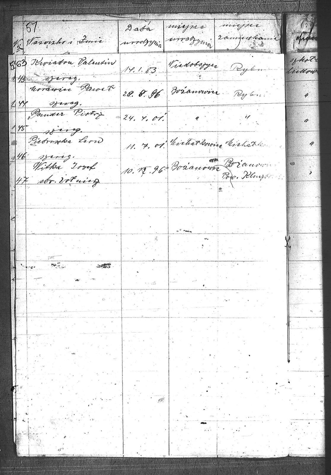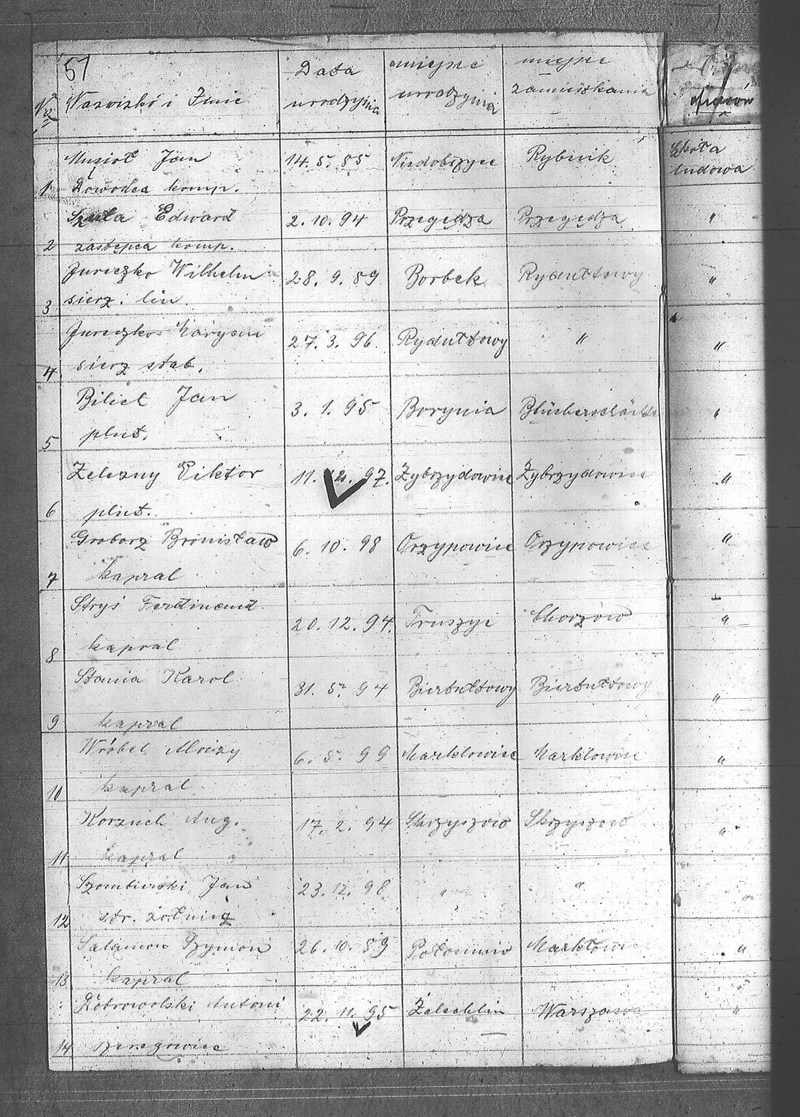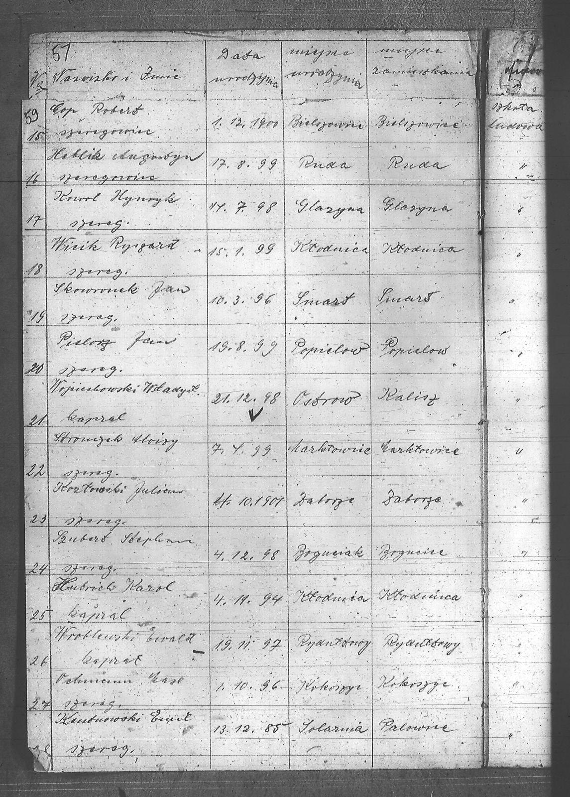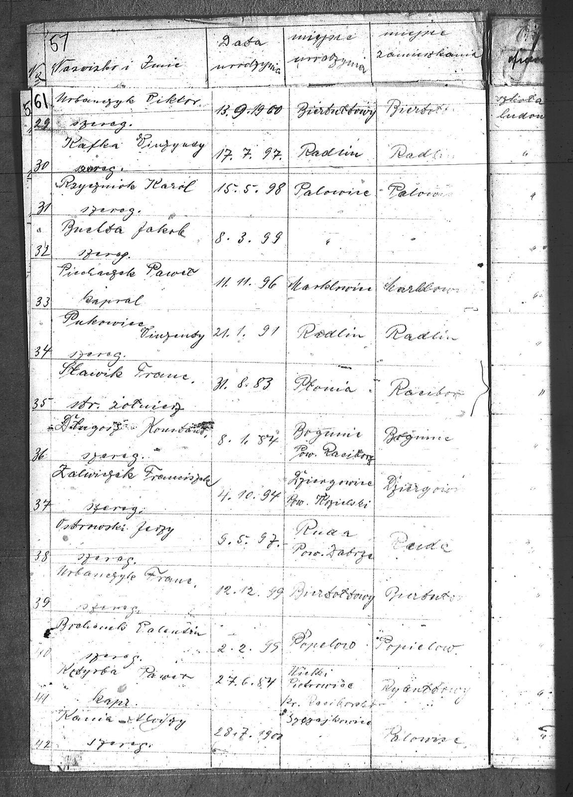 [Bochomek], [Walenty]; [Ochmann], [Maksymilian]; Blich, Jan; Buchta, Jakób; Cop, Robert; Długosz, Konstanty; Dobrowolski, Antoni; Groborz, Bronisław; Heblik, Augustyn; Hubrich, Karol; Jureczko, Wawrzyn; Jureczko, Wilhelm; Kafka, Wincenty; Kania, Alojzy; Kentnowski, Emil; Korzuch, Augustyn; Kotyrba, Paweł; Kowol, Henryk; Kozłowski, Julian; Kwiaton, Walenty; Morawiec, Paweł; Musioł, Jan; Ostrowski, Jerzy; Pander, Piotr; Piechaczek, Paweł; Pielorz, Jan; Pietruszka, Leon; Pukowiec, Wincenty; Rzyczmiok, Karol; Salamon, Szymon; Skowronek, Jan; Sławik, Franciszek; Stania, Karol; Stronczek, Alojzy; Stryś, Ferdynand; Szombierski, Jan; Szubert, Stefan; Szuła, Edward; Urbańczyk, Franciszek; Urbańczyk, Wiktor; Wicik, Ryszard; Witka, Józef; Wojciechowski, Władysław; Wróbel, Alojzy; Wróblewski, Ewald; Zalwiczek, Franciszek; Żelezny, Viktor; |
