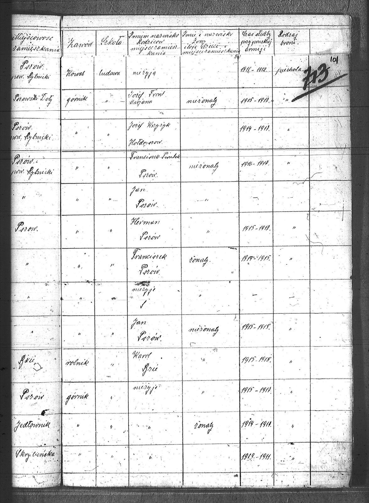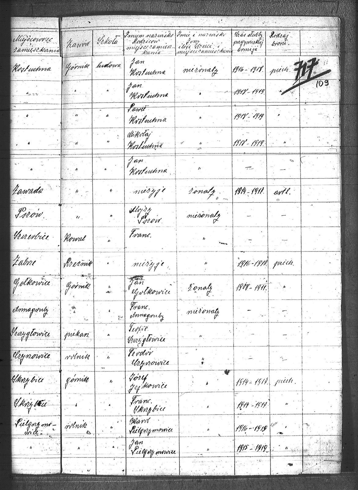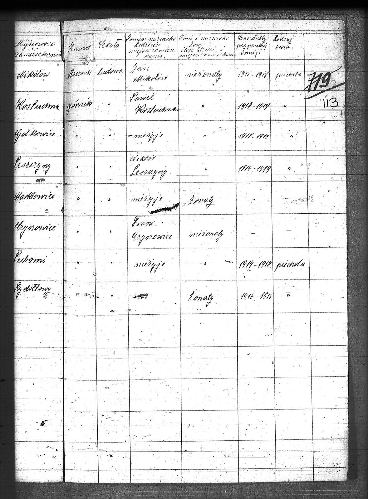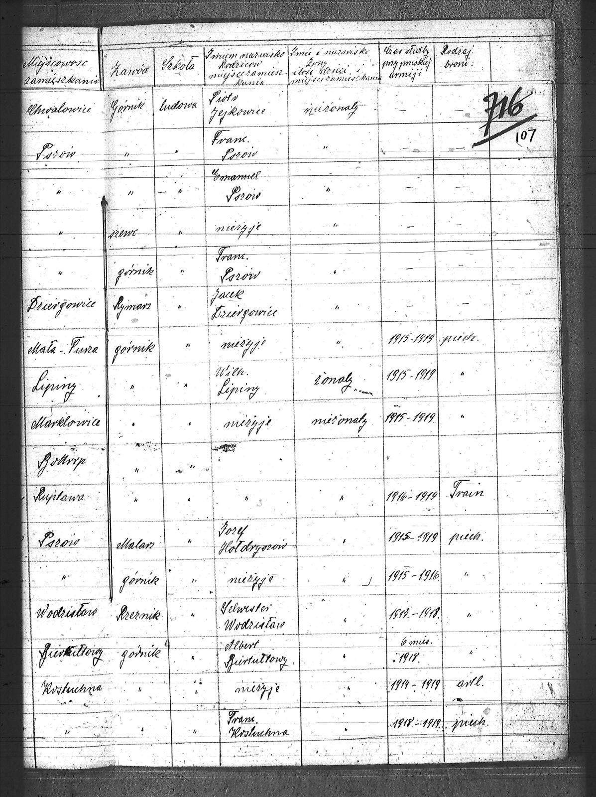 Adamczyk, Robert; Babisz, Engelbert; Basista, Jan; Basista, Paweł; Baszton, Emanuel; Baszton, Józef; Bjałek, Wilhelm; Blacha, Emanuel; Breier, Eduard; Brozek, Teofil; Cienciała, Franciszek; Cupok, Wilhelmy; Czarnota, Alojzy; Czernik, Alojzy; Dobisz, Jan; Dworok, Józef; Fojcik, Maks; Front, Paweł; Front, Szczepan; Gardyjan, Jan; Glenc, Karol; Głąbica, Franciszek; Goralczyk, Florian; Greiner, Emil; Grobelny, Adolf; Gruszczyk, Alojzy; Herman, Henryk; Hornik, Józef; Idziak, Karol; Iksel, Maksymilian; Jabłonka, Jakób; Jakupczyk, Józef; Kabut, Franciszek; Kampczyk, Augustyn; Kampik, Konstanty; Kiełkowski, Andrzej; Klimanek, Józef; Klimek, Józef; Klinik, Augustyn; Kłosek, Alojzy; Koczór, Wiktor; Kopieć, Walenty; Kozub, Ludwik; Krakowczyk, Wincenty; Krentusz, Antoni; Krzyżowski, Franciszek; Krzyżowski, Paweł; Krzyżyk, Franciszek; Krzyżyk, Jan; Kurpanik, Ludwik; Kustos, Mikołaj; Kuś, Wilhelm; Kwiatoń, Michał; Larysz, Adolf; Larysz, Józef; Łaciok, Wiktor; Łuzka, Anzelm; Majwald, Alojzy; Marcol, Alojzy; Masłowski, Jan; Matuszczyk, Alojzy; Menżyk, Walenty; Mercik, Robert; Minol, Franciszek; Mitko, Antoni; Moczka, Tomasz; Morcinek, Teodor; Musioł, Teofil; Nachtigal, Antoni; Nawrat, Robert; Nawrot, Józef; Nogły, Franciszek; Nogły, Frytc; Noras, Paweł; Oleś, Franciszek; Ostrzołek, Franciszek; Paloc, Stanisław; Pampuch, Emanuel; Piontek, Herman; Połap, Jan; Pośpiech, Jan; Potop, Józef; Potysz, Franciszek; Powieczka, Alfryd; Powieczka, Franciszek; Powieczka, Teofil; Prochasek, Jan; Reś, Wiktor; Salamon, Jan; Siodmok, Jan; Skupnik, Edward; Spojda, Alojzy; Stacha, Ignacy; Strańkus, Józef; Szenk, Jan; Szindler, Józef; Szkatuła, Franciszek; Szkatuła, Jan; Szklarz, Franciszek; Szklarz, Jan; Szołtysek, Leopold; Szuła, Edward; Szyrocki, Szczepan; Tytko, Paweł; Wańczura, Jerzy; Zdziebło, Wiktor; Zernik, Karol; Zganiacz, Wilhelm; Zielenski, Paweł; Żmuda, Franciszek; |