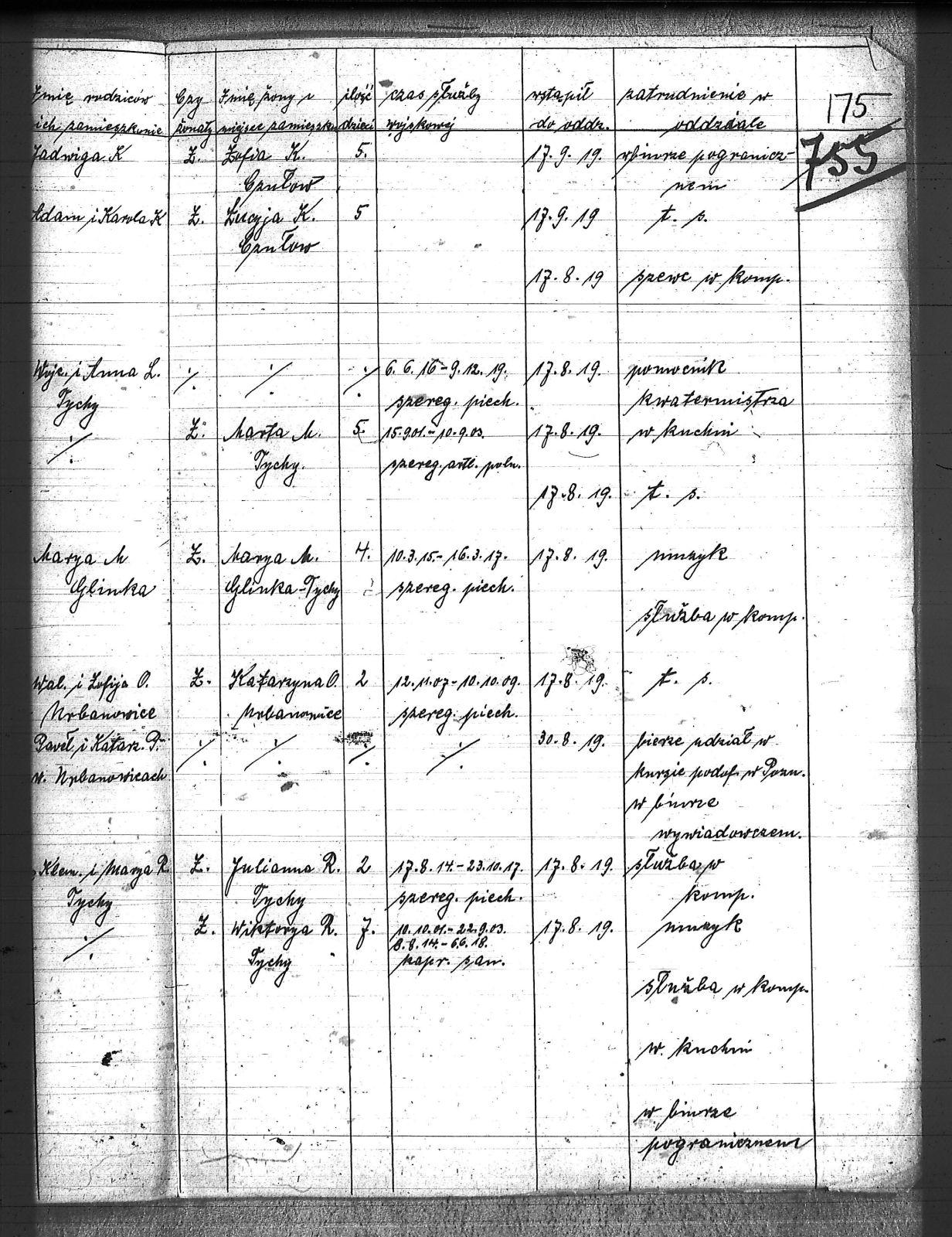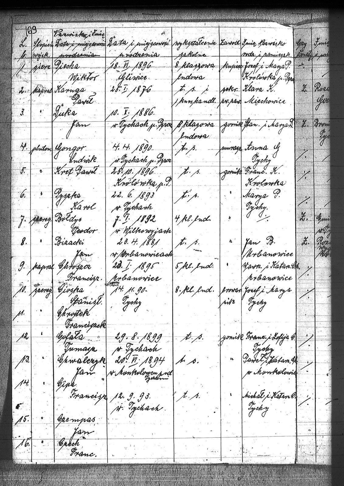 Bizacki, Jan; Bołdys, Teodor; Chrostek, Franciszek; Chroszcz, Franciszek; Chwalczyk, Jan; Cioska, Stanisław; Cipa, Franciszek; Cipa, Teofil; Cofata, Tomasz; Czech, Franciszek; Czempas, Jan; Czyba, Stefan; Duka, Jan; Dzimkany, Paweł; Garncorz, Antoni; Golda, Ludwik; Gongor, Ludwik; Goralczyk, Maciej; Grajcarek, Adolf; Grządziel, Adolf; Haśnik, Jan; Haśnik, Józef; Janik, Jan; Jendrysik, Walynty; Kal, Augustyn; Kapias, Franciszek; Karuga, Paweł; Kołodziej, Wojciech; Kost, Józef; Kozyra, Klemens; Kret, Franciszek; Kret, Paweł; Kroczek, Józef; Krzyżowski, Jan; Krzyżowski, Konrad; Krzyżowski, Paweł; Kurpas, Teodor; Kurzak, Józef; Latusek, Franciszek; Lisoń, Józef; Loska, Karol; Malcharek, Franciszek; Mierny, Michał; Mrozik, Maciej; Myszor, Paweł; Okoń, Józef; Piecha, Wiktor; Prusek, Adam; Pustelnik, Jan; Pyszka, Karol; Roskoszny, Franciszek; Ryt, Franciszek; Skapczyk, Emil; Słomka, Józef; Sojka, Michał; Sojka, Paweł; Szafron, Jan; Szojda, Emanuel; Szojda, Paweł; Targiel, Jan; Tendera, Jan; Wilgus, Fryderyk; Wojtyka, Walenty; Zając, Wojciech; Zimnoł, Jakób; |