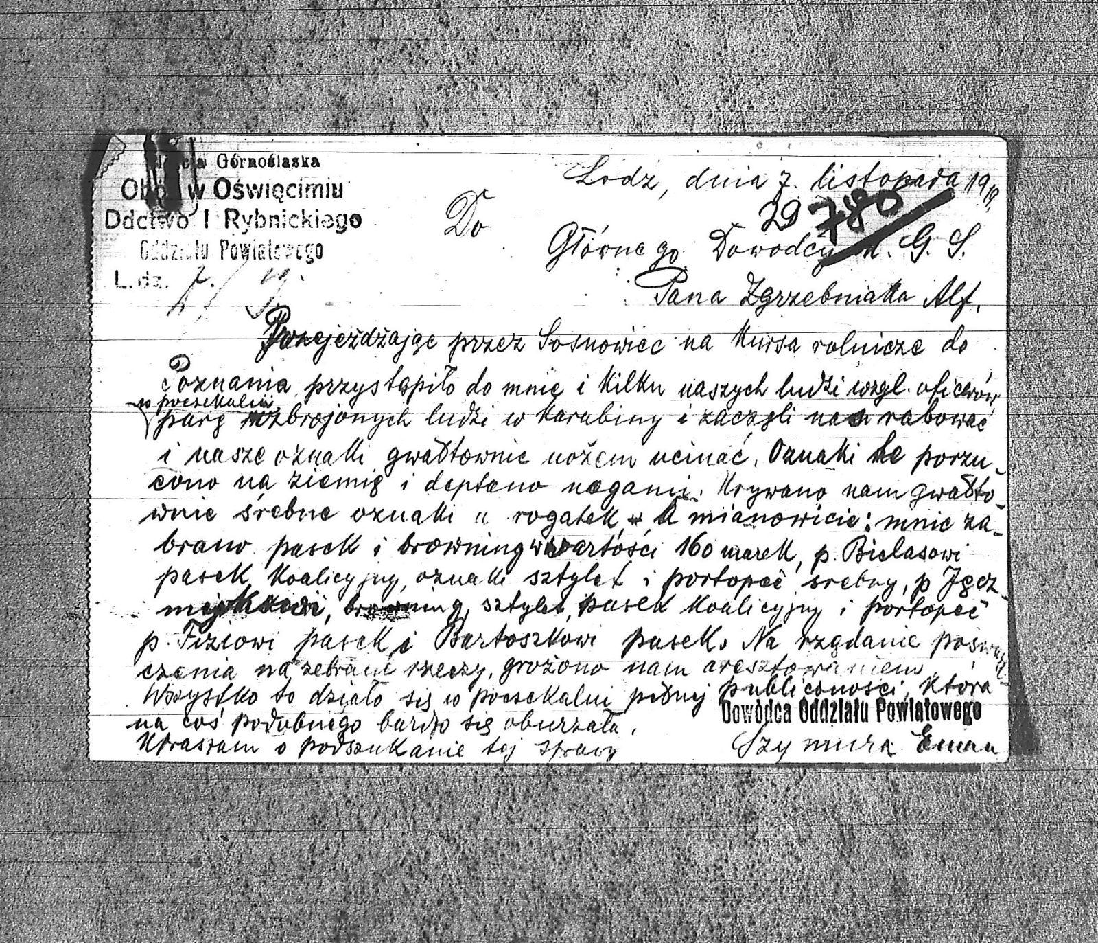 | Tytuł | Do Głównego Dowódcy M.G.Śl. Pana Zgrzebnioka Alf. |