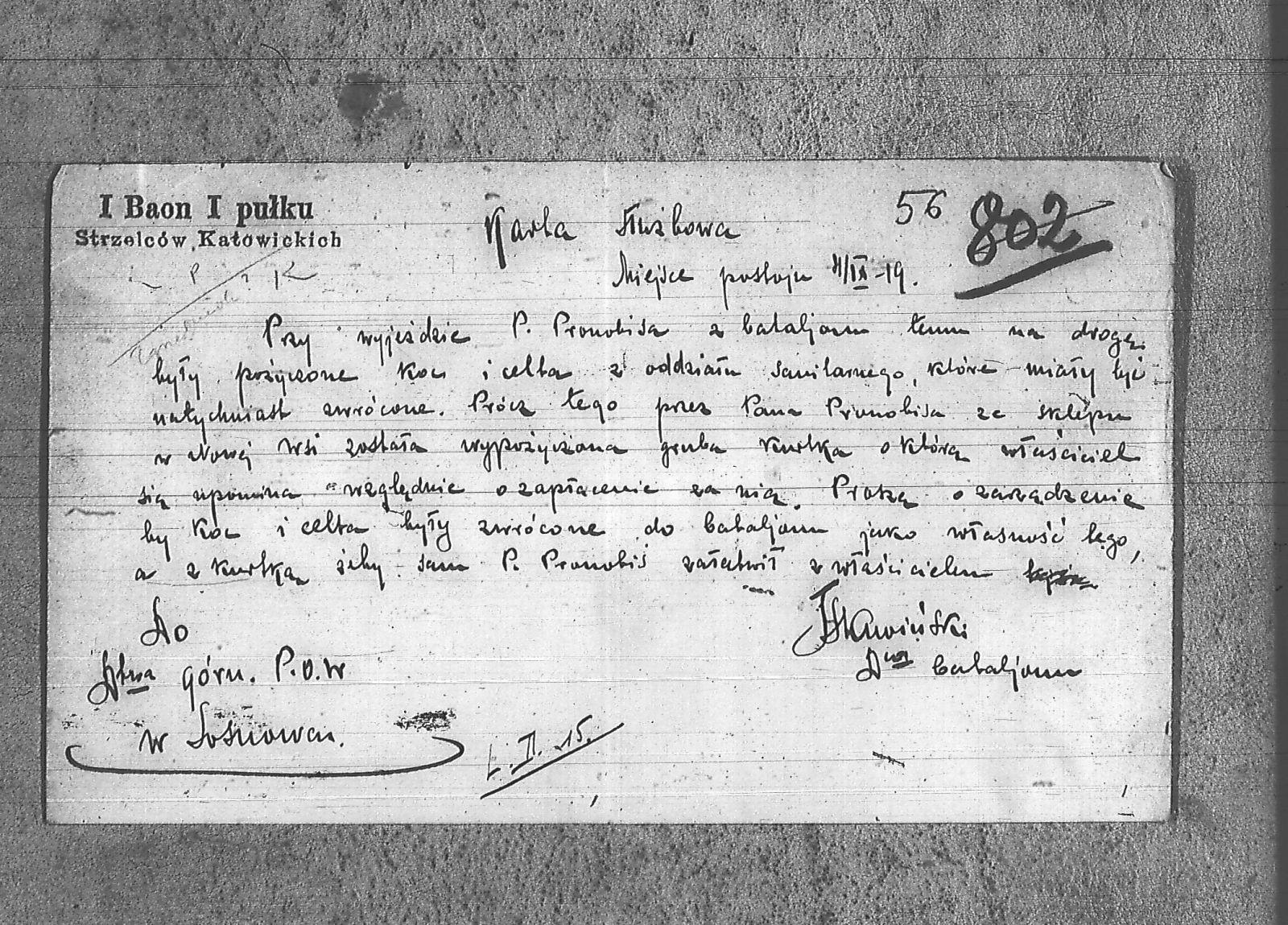 Tytuł Karta służbowa - do Dowództwa P.O.W. w Sosnowcu