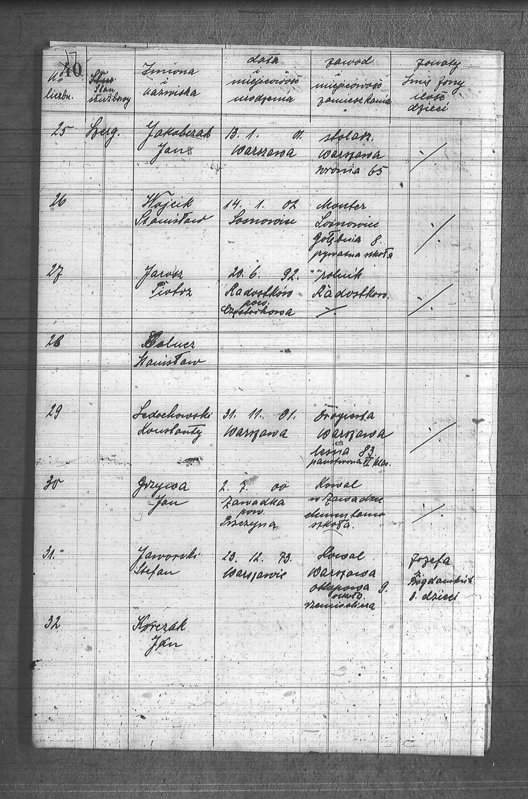 Balcerzak, Aleksander; Barlinski, Jan; Bieniaczek, Mateusz; Calucz, Stanisław; Chmurski, Leonard; Czuja, Marian; Doniecki, Sylwester; Fornal, Jan; Furmanek, Michał; Grzybowski, Julian; Grzywa, Jan; Igucka, Kaspar; Jakubczak, Jan; Janicki, Zdzisław; Jarosz, Piotr; Jaworski, Stefan; Jaworski, Wiktor; Juk, Paweł; Korczak, Jan; Kotułowski, Tadeusz; Kwiecień, Józef; Laskowski, Władysław; Ledochowski, Konstanty; Leśnik, Florian; Michalski, Stanisław; Miczka, Paweł; Miłek, Jan; Pielorz, Jan; Polanski, Jan; Ryczan, Stanisław; Salomon, Szymon; Skoniecki, Józef; Sluszczyk, Franciszek; Starzewski, Roman; Steckler, Alfons; Studziński, Stanisław; Syp, Tomasz; Turczyn, Wladysław; Twardzik, Edward; Urbańczyk, Franciszek; Witek, Józef; Wojcik, Stanisław; Woźniak, Marcin; Zygmund, Jan; |
