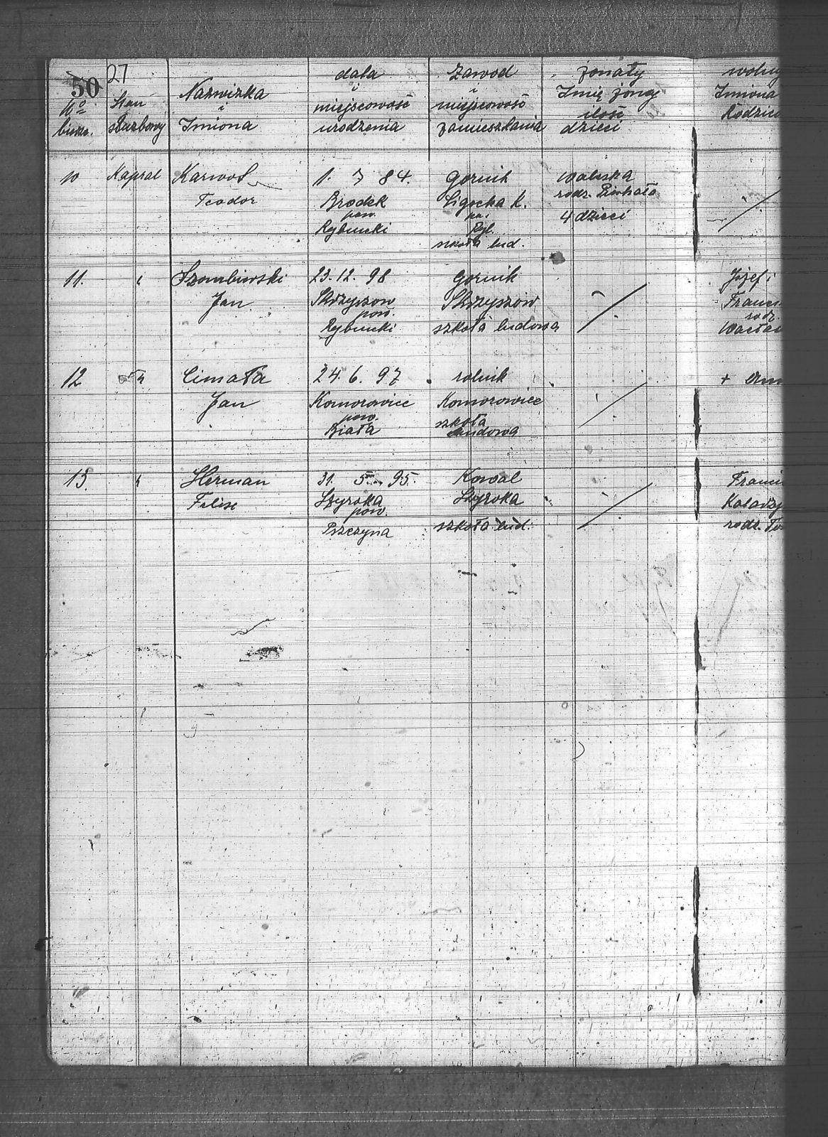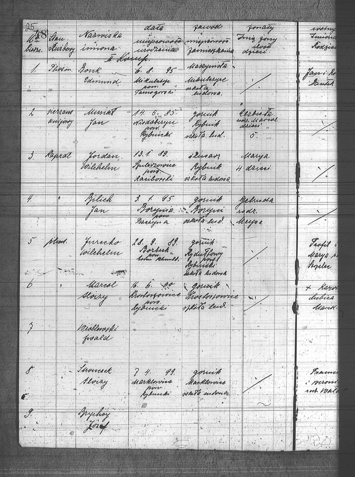 | Osoby | Bilich, Jan; Bonk, Edmund; Brychcy, Józef; Cimała, Jan; Herman, Feliks; Jordan, Wilhelm; Jurecko, Wilhelm; Karwot, Teodor; Marcol, Aloizy; Musiał, Jan; Stronczek, Aloizy; Szombierski, Jan; Wróblewski, Edward; |
