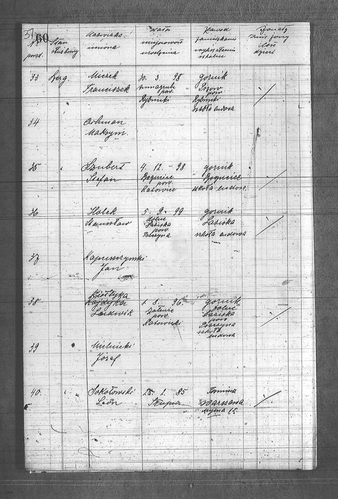 Bednarek, Paweł; Bochynek, Walenty; Brzozowski, Józef; Buła, Aloizy; Dobrowolski, Antoni; Godłowski, Stefan; Grainek, Maksymilian; Holek, Stanisław; Jaszczyk, Ludwik; Kapuszczynski, Jan; Kentnowski, Emil; Kiełtyka, Ludwik; Kondrotek, Aloizy; Korczyk, Józef; Kowolik, Antoni; Kruczeński, Tadeusz; Lewandowski, Franciszek; Lewicki, Szymon; Małachowski, Józef; Michnicki, Józef; Miczek, Franciszek; Mikulczyk, Alfred; Motyka, Bronisław; Ochman, Maksymilian; Oczypka, Jan; Osoliński, Wiktor; Przybylski, Franciszek; Reguła, Jan; Sikora, Jan; Skopek, Karol; Skowron, Wojciech; Słota, Jan; Sługa, Jan; Sokołowski, Leon; Stania, Karol; Szmeiduch, Franciszek; Szubert, Stefan; Urbańczyk, Wiktor; Widak, Franciszek; Wolnik, Ewa; Wolny, Ignacy; Wyczyk, Ryszard; Wyra, Józef; Zapp, Robert; Żagliński, Zygmund; |