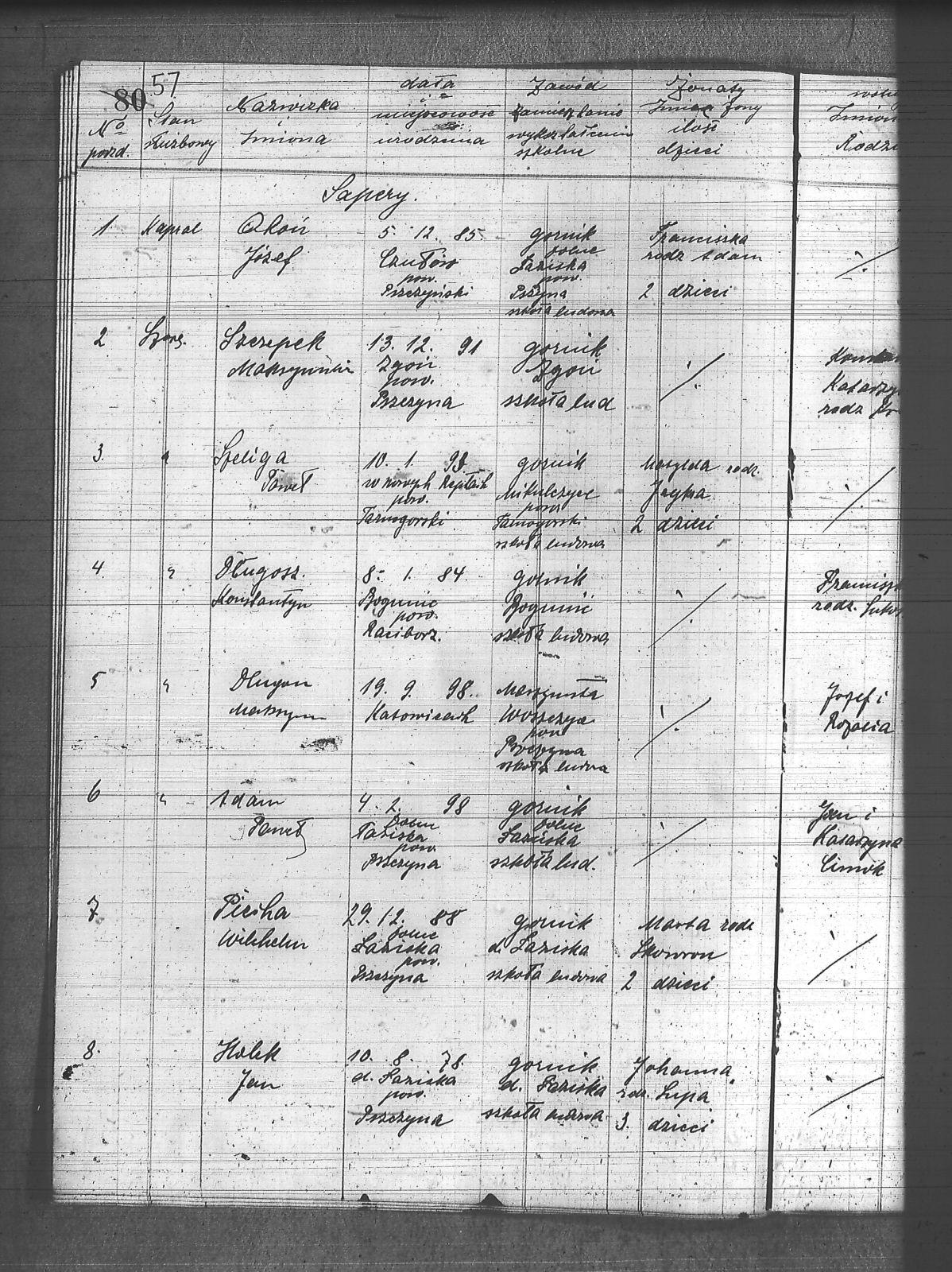 | Osoby | Adam, Paweł; Długosz, Konstanty; Długosz, Maksymilian; Hampel, Izydor; Holek, Franciszek; Holek, Jan; Okoń, Józef; Piecha, Wilhelm; Szczepek, Maksymilian; Szeliga, Paweł; |