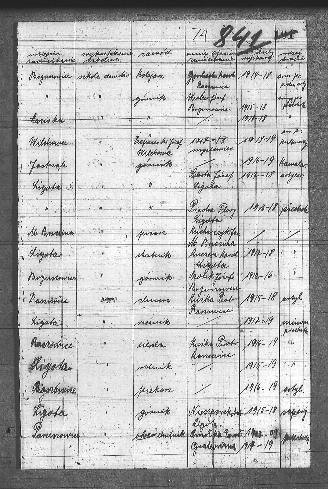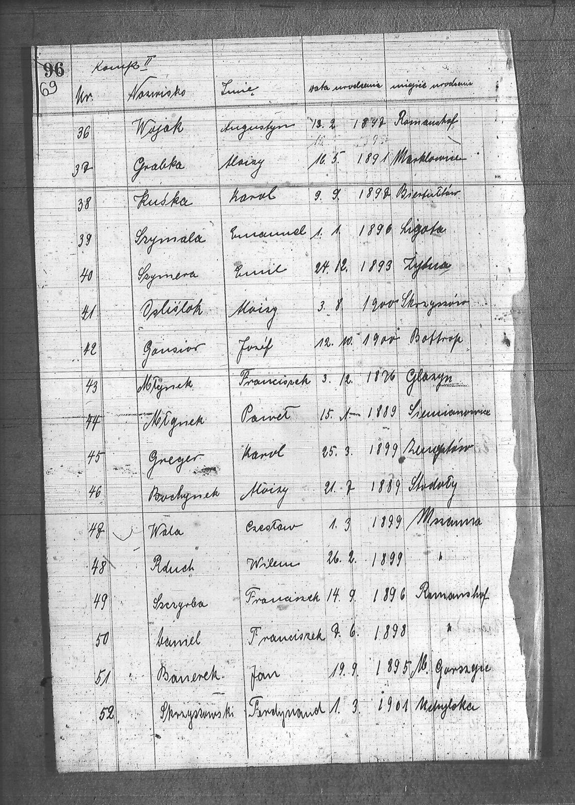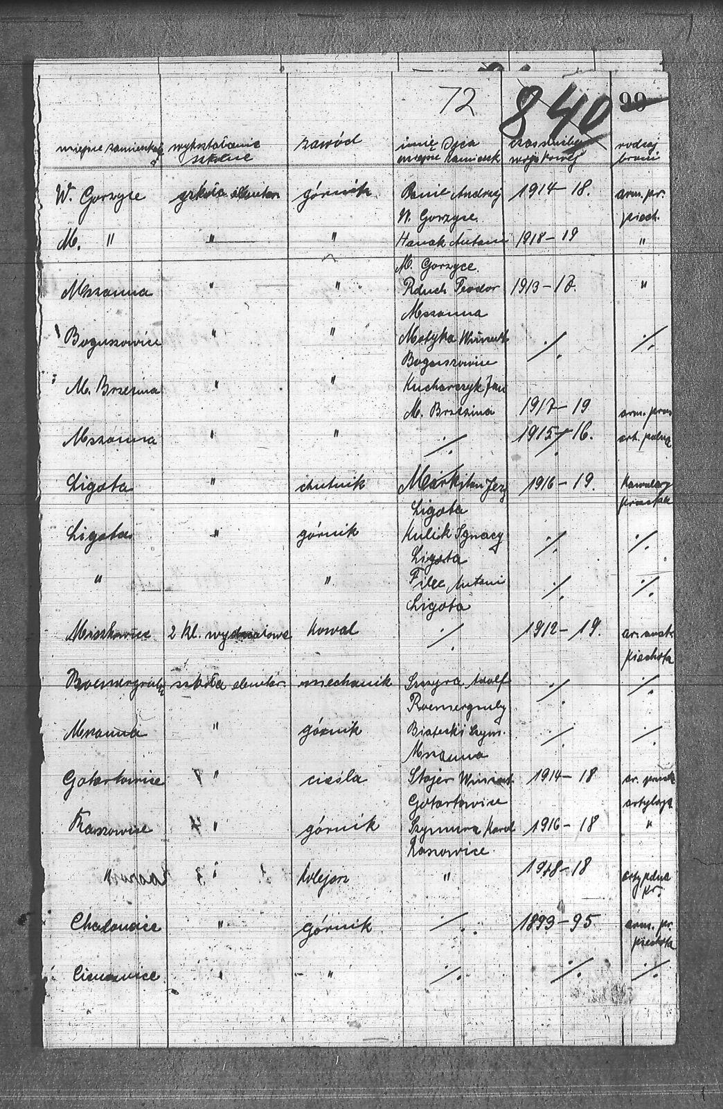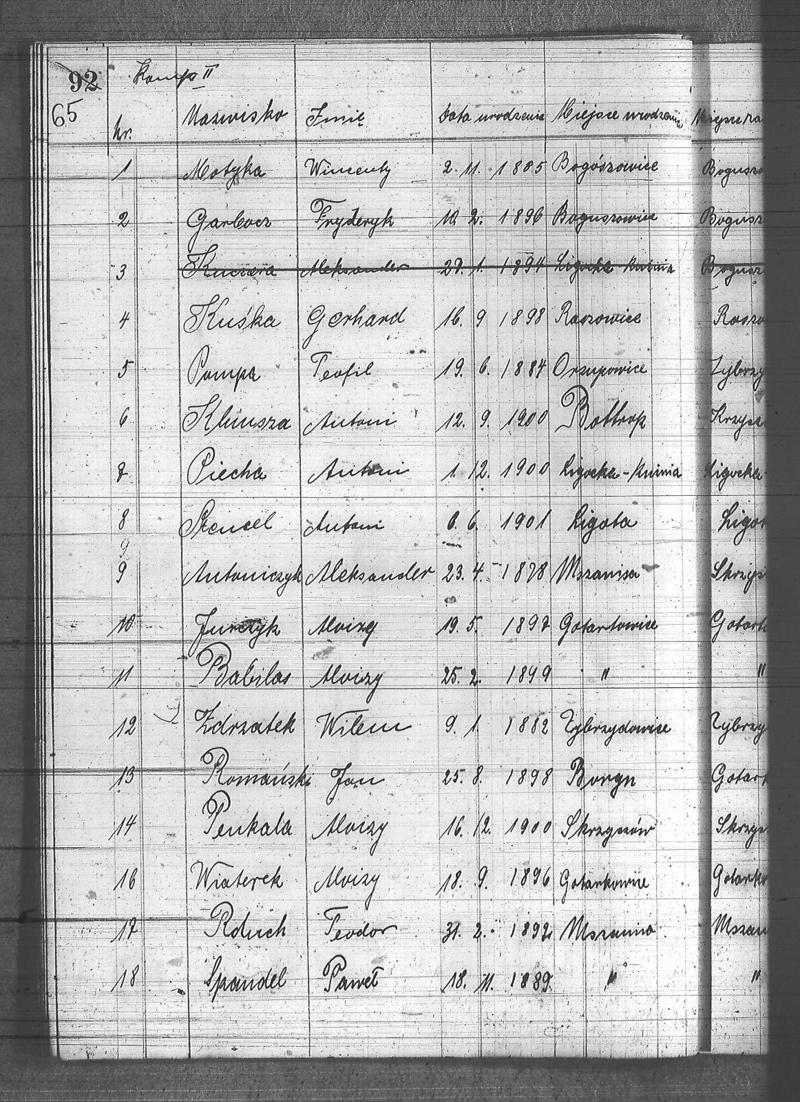 Antoniczyk, Aleksander; Babilas, Aloizy; Bajec, Józef; Banerek, Jan; Barteld, Karol; Biatecki, Józef; Bochynek, Aloizy; Brudny, Franciszek; Bytomski, Paweł; Ciemięga, Sylwester; Czarniecki, Wincenty; Czech, Jan; Daniel, Franciszek; Dziuba, Franciszek; Filec, Ryszard; Garbacz, Fryderyk; Garbocz, Franciszek; Garbocz, Jan; Garbocz, Wilem; Gonsior, Józef; Grabka, Aloizy; Greger, Karol; Gruszka, Henryk; Hanok, Ignacy; Jurczyk, Aloizy; Kaczmarek, Emil; Klimsza, Antoni; Konsek, Jan; Król, Bolesław; Kucharczyk, Aloizy; Kucharczyk, Ludwig; Kuczera, Franciszek; Kulik, Wiktor; Kuśka, Gerhard; Kuśka, Karol; Kuśka, Robert; Kuśka, Wincenty; Marek, Aloizy; Markieton, Jerzy; Matera, Ludwig; Matuszczyk, Maksymilian; Młynek, Franciszek; Młynek, Paweł; Motyka, Wilem; Motyka, Wincenty; Mrozek, Ludwig; Mura, Wilem; Nieszporek, Franciszek; Ochojski, Paweł; Oślislok, Aloizy; Panic, Antoni; Penkala, Aloizy; Piecha, Antoni; Piecha, Florian; Piecha, Ignacy; Pierkała, Augustyn; Pompa, Teofil; Pyszny, Paweł; Rduch, Franciszek; Rduch, Teodor; Rduch, Wilem; Romański, Jan; Rozga, Jan; Różański, Dominik; Skrzyszowski, Ferdynand; Smołka, Józef; Smuda, Klemens; Sobota, Aloizy; Spandel, Paweł; Stancel, Antoni; Stojer, Teodor; Strzelec, Paweł; Swoboda, Ludwig; Swoboda, Teodor; Szczepański, Florian; Szczyra, Adolf; Szczyrba, Franciszek; Szlachta, Józef; Szlachta, Wilem; Szlachter, Ludwig; Szotek, Wincenty; Szwejda, Józef; Szymala, Emanuel; Szymera, Emil; Szymura, Adolf; Szymura, Józef; Szymura, Paweł; Werber, Augustyn; Wiaterek, Aloizy; Wieczorek, Augustyn; Wieczorek, Konrad; Wodecki, Jan; Wodecki, Konstantyn; Wojak, Augustyn; Wola, Czesław; Wola, Stanisław; Zdrzatek, Wilhelm; |