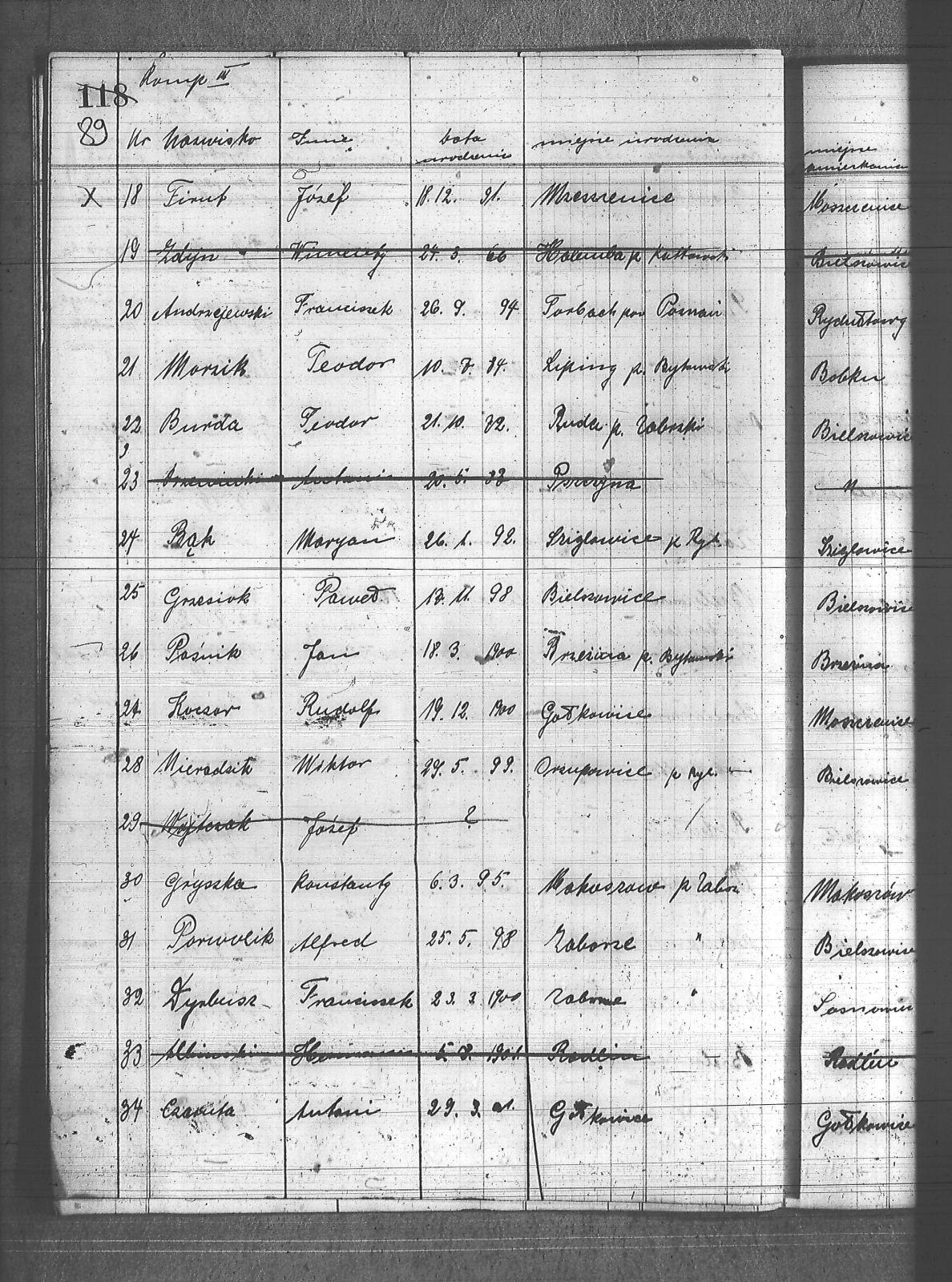 Adam, Jan; Andrzejewski, Franciszek; Bartoszek, Teofil; Bąk, Maryan; Burda, Teodor; Bynisz, Jan; Coppiot, Hubert; Czaruta, Antoni; Czech, Wilem; Czysz, Wiktor; Dyrkusz, Franciszek; Fellman, Stefan; Firut, Józef; Foit, Wincenty; Franecki, Jan; Gawliczek, Franciszek; Głambicz, Aloizy; Gryszka, Konstanty; Grzesiok, Paweł; Grzesiok, Ryszard; Hola, Franciszek; Jarczyk, Franciszek; Juraszczyk, Ernest; Jurecko, Karol; Jylyń, Jan; Kafka, Maks; Kapuściak, Józef; Kielecki, Jan; Klik, Alfred; Koczor, Rudolf; Kondziełko, Jan; Kubiciel, Józef; Kusia, Aloizy; Kuszka, Edmund; Kuś, Rudolf; Marcol, Jan; Marczok, Paweł; Morzik, Teodor; Napolski, Roman; Nawrot, Józef; Nieradzik, Wiktor; Panic, Aloizy; Paśnik, Jan; Poloczek, Augustyn; Porwolik, Alfred; Rduch, Franciszek; Smyla, Wilem; Sobczyk, Wilem; Sobik, Nikodymus; Stasz, Paweł; Szulik, Wilem; Szymura, Konstanty; Wieczorek, Aloizy; Wilczek I, Paweł; Wilczek II, Paweł; Winkler, Ernest; Wojcik, Jakub; Wycisk, Karol; |