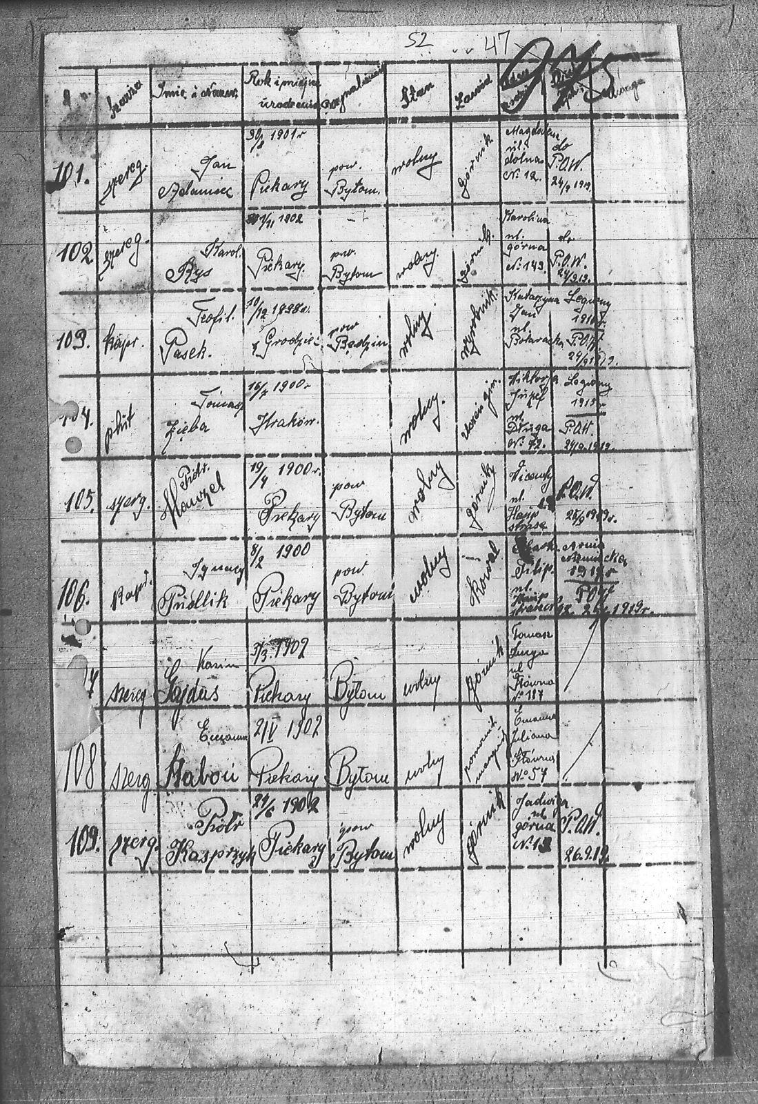 Osoby Adamiec, Jan; Gajdas, Kazimierz; Kasprzyk, Piotr; Manzel, Piotr; Pasek, Teofil; Pridlik, Ignacy; Rys, Karol; Staboń, Emanuel; Zięba, Tomasz;