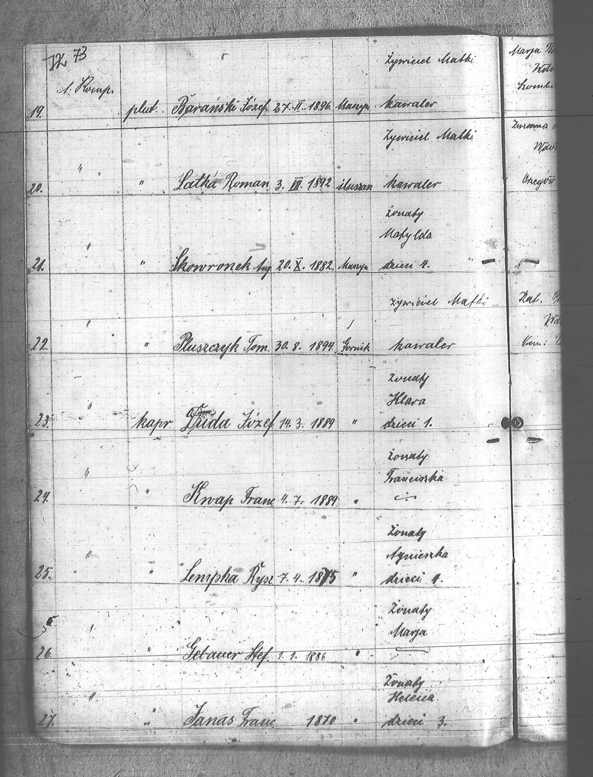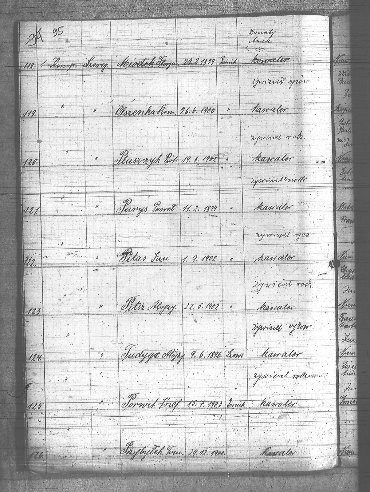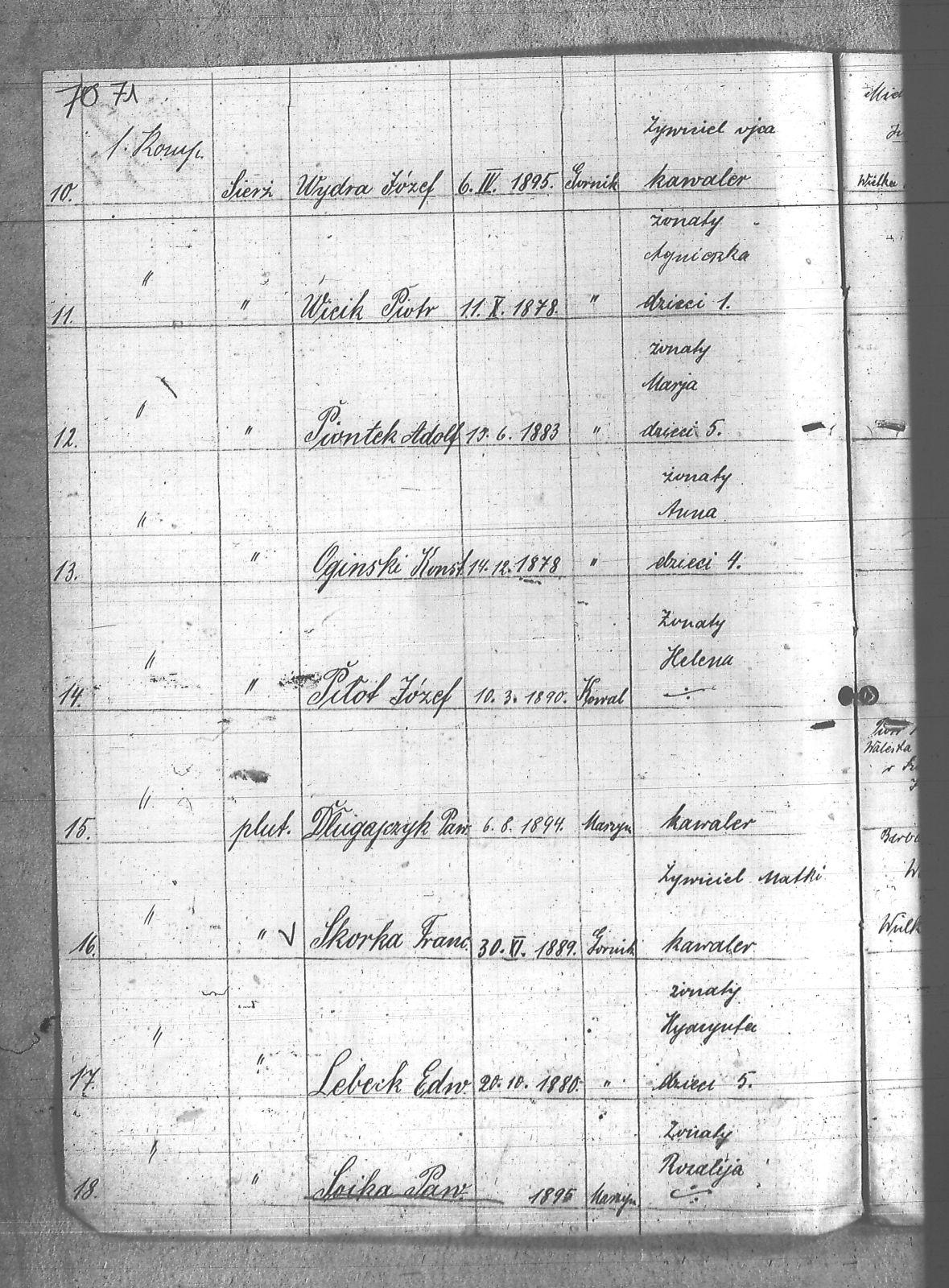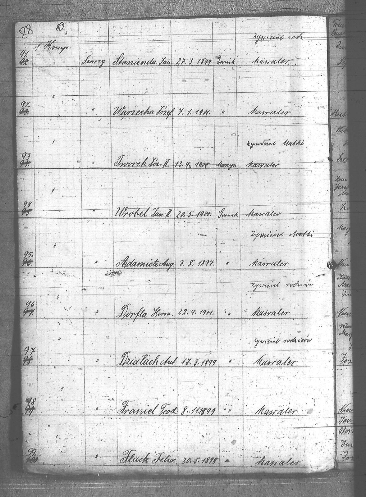 Adamiec, Jan; Adamietz, August; Barański, Józef; Barczyk, Antoni; Baron, Emil; Bekus, Aleksy; Białas, Antoni; Bijok, Grzegorz; Binek, Ignacy; Buchcik, Franciszek; Bujar, Czesław; Byczek, Bernard; Chwolka, Jan; Ciasto, Antoni; Danecki, Wojciech; Długajczyk, Paweł; Dorfla, Herman; Dragon, Jan; Dragon, Paweł; Drzemota, Franciszek; Duda, Józef; Dycka, Antoni; Działach, Antoni; Fanfara, Jan; Flack, Feliks; Flack, Paweł; Flack, Piotr; Franiel, Franciszek; Franiel, Teodor; Gałbas, Raimund; Gamba, Franciszek; Gawęda, Bernard; Gelauer, Stefan; Giza, Jan; Gross, Klemens; Grybsz, Stefan; Gulba, Józef; Hampel, Józef; Hanke, Karol; Hofman, Karol; Janas, Franciszek; Januszewski, Franciszek; Jurczyński, Piotr; Kaizer, August; Kania, Alojzy; Karmański, Jan; Karmański, Piotr; Koc, Piotr; Koprek, Stefan; Korfanty, Józef; Kowalik, Staś; Koziołek, Paweł; Krajuszek, Roman; Kran, Franciszek; Kuna, Piotr; Kwap, Franciszek; Lasok, Piotr; Laszczyk, Franciszek; Latka, Roman; Lebcik, Edward; Lempka, Ryszard; Lisoń, Karol; Ludyga, Andrzej; Ludyga, Antoni; Ludyga, Jan; Ludyga, Józef; Ludyga, Stefan; Ludyga, Tomasz; Malina, Józef; Małota, Jan; Matura, Robert; Mazur, Alojzy; Mazur, Paweł; Miodek, Florian; Muszała, Konrad; Nowak, Jan; Nowakowski, Wilhelm; Ochmańczyk, Wojciech; Ogiński, Konstanty; Olszenka, Roman; Opiełka, Herman; Otawa, Franciszek; Parys, Pawel; Pawełczyk, Ignacy; Pawlikowski, Jan; Październiok, Feliks; Piłot, Józef; Piontek, Adolf; Pitas, Jan; Pitsz, Alojzy; Pluszczyk, Piotr; Pluszczyk, Tomasz; Pluta, Karol; Płaczek, Józef; Porwit, Józef; Przybyłek, Tomasz; Przybyłka, Franciszek; Pudlik, Franciszek; Purchałka, Adam; Pyrek, Jan; Rabus, Marcin; Rokosza, Robert; Rozkosz, Robert; Rożek, Andrzej; Rożek, Emanuel; Siwek, Józef; Sklorz, August; Skorka, Franciszek; Skowronek, Augustyn; Słaboń, Emanuel; Słaboń, Franciszek; Stalmach, Reinhold; Stanienda, Jan; Suchanek, Maksymilian; Sucharowski, Józef; Szatek, Emanuel; Szmaga, Tomasz; Szołtysik, Wilhelm; Świtula, Hubert; Tomala, Franciszek; Tudyga, Alojzy; Tworek, Józef I; Tworek, Józef II; Waleńczyk, Karol; Warzecha, Józef; Weyrauch, Artur; Wicik, Piotr; Wilk, Franciszek; Wojcik, Stefan; Wróbel, Jan II; Wydra, Józef; Zajonc, Piotr; |