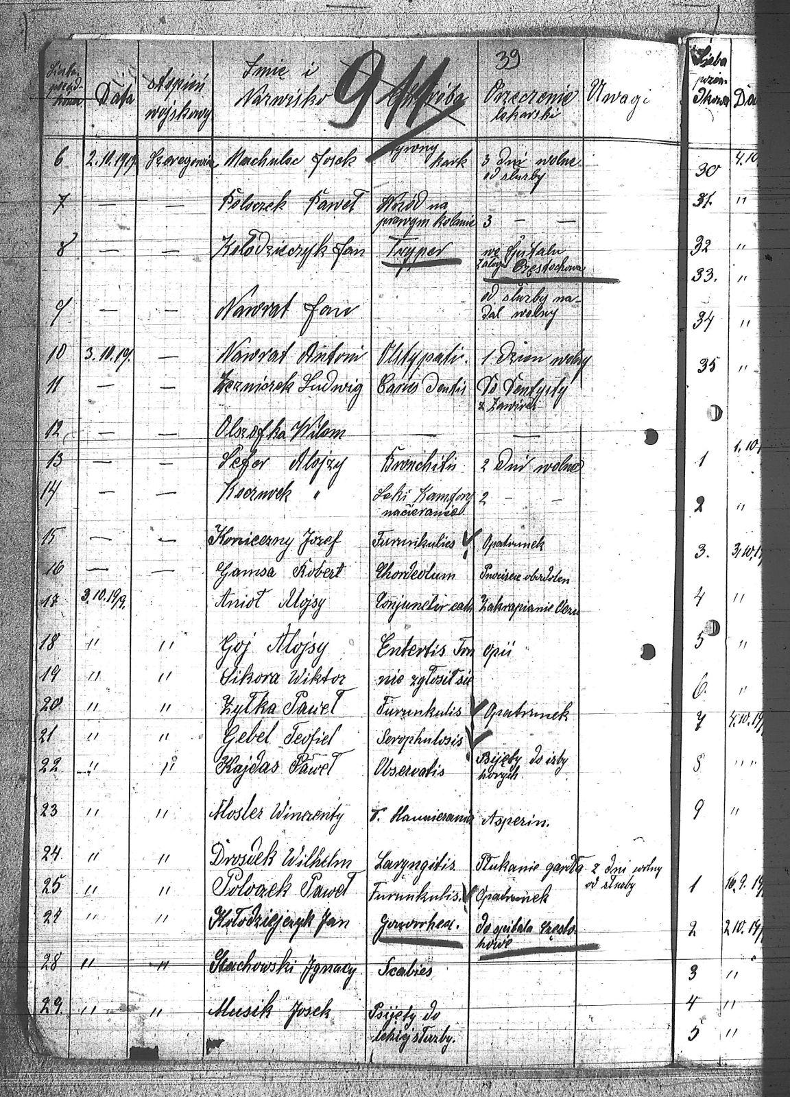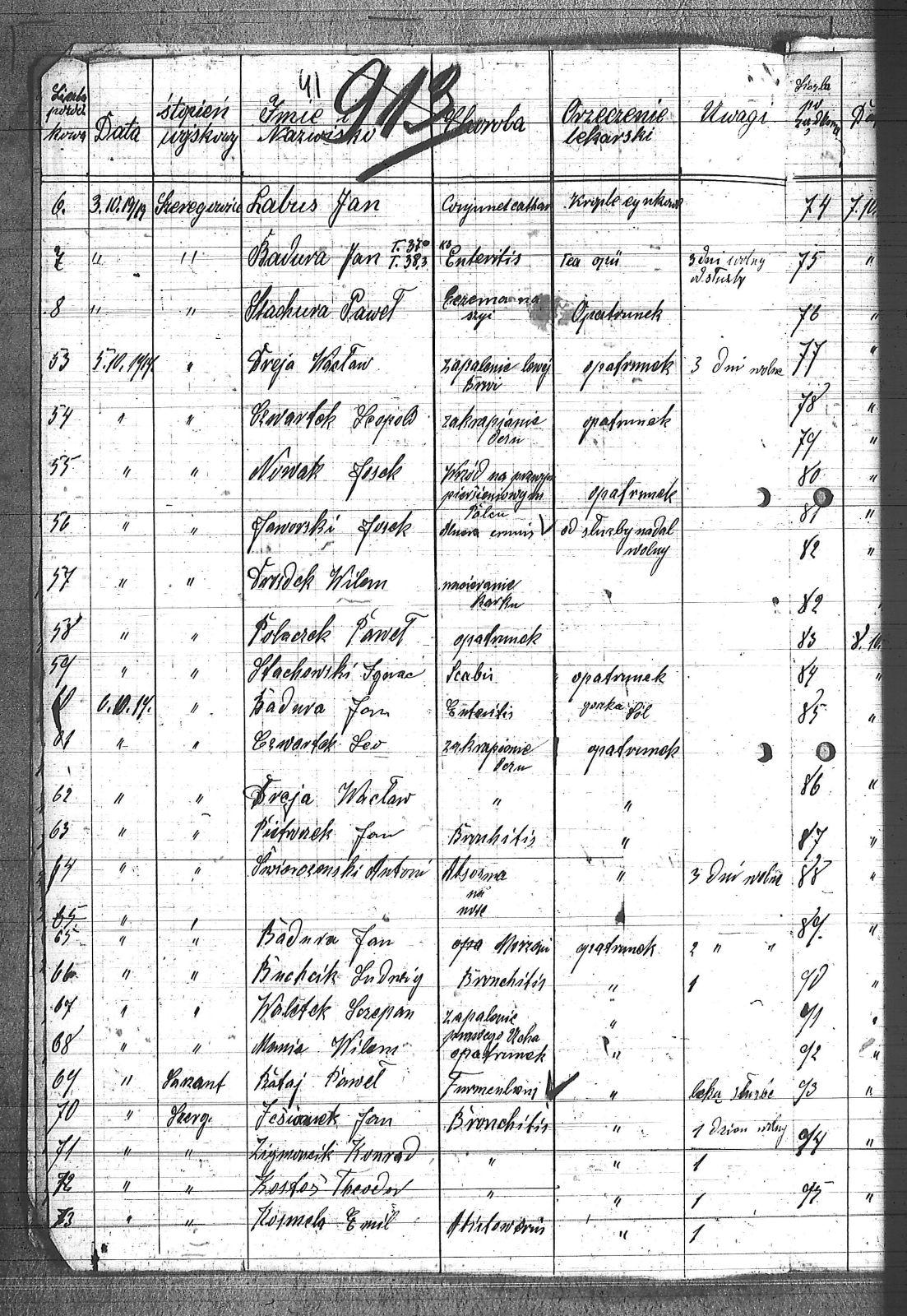 Adamiec, Franciszek; Anioł, Alojzy; Badura, Jan; Badura, Karol; Banert, Paweł; Baron, Paweł; Bełkowski, Karol; Bełkowski, Wilem; Bielik, Paweł; Bilchalski, Wilem; Bogacki, Feliks; Bonk, Henryk; Borsowski, ; Broda, Ignacy; Buchcik, Ludwig; Ciszek, Stanisław; Czwartek, Leopold; Dejga, ; Dembski, Stefan; Dembski, Szczepan; Domogała, Wilem; Dreja, Wacław; Drozdek, Wilem; Drozdek, Wilhelm; Drozdek, Wilhem; Drzyzga, Leopold; Fila, Jan; Friedrich, Piotr; Frisoz, Alojzy; Frycz, Alojzy; Furgol, Franciszek; Furgol, Józef; Furtok, Mikołaj; Galea, Piotr; Gamsa, Robert; Gebel, Teofil; Gelża, Robert; Gerz, Franciszek; Gilza, Robert; Gnida, Teodor; Goj, Alojzy; Golik ; Góralczyk, Piotr; Gruszka, Antoni; Grzegorowski, Józef; Gwiszcz, ; Gwiszcz, Robert; Hadamik, Jan; Janyga, Emanuel; Jarek, Paweł; Jasiek, Paweł; Jaszy, Paweł; Jaworski, Józef; Jesioczek, Jan; Jesionek, Franciszek; Kajdas, Paweł; Kajzer; Kajzer, Bolesław; Kapica, Herman; Kapuszeński, Emil; Kiera, Sylwester; Kiera, Tadeusz; Kiera, Teodor; Koczuba, Florian; Koczubik, August; Koczubik, Augustyn; Koczubik, Roman; Koczurek, Alojzy; Kołodziejczyk, Jan; Kondziołka, Rudolf; Konieczny, Józef; Kosmela, Emil; Kostos, Teodor; Kozubik; Krenzel; Krenzel, Walenty; Kruczek; Kruczek, Franciszek; Krzuska, Michał; Krzyż, Michał; Kuflicki, Kazimierz; Kulawik, Marian; Kwiatkowski, Kazimierz; Labus, Jan; Lakowski, Władysław; Latusek; Latusek, August; Lis, Antoni; Machulec, Józef; Majowski, Bernard; Mania, Wilem; Mansfeld, Wiktor; Mańka, Ignacy; Matyjasik; Mądry, Jerzy; Mierzwa; Mierzwa, Józef; Molik; Molik, Józef; Morok, Paweł; Moron, Wiktor; Mosler, Wincenty; Musik, Józef; Musioł, Jan; Mysior, Wincenty; Myszor; Myszor, Wincenty; Nawrat, Antoni; Nawrat, Jan; Nielaba; Nielaba, Robert; Nowak, Alojzy; Nowak, Józef; Nowak, Stanisław; Nowak, Teodor; Nowicki, Bernard; Olszówka, Ryszard; Olszówka, Wilem; Orzeł, Henryk; Pandzik, Józef; Parkoła, Alojzy; Piekałka, Józef; Pietrecki, Jan; Pietroszek, Jan; Plaza, Józef; Płotnik, Józef; Polednik, Robert; Poloczek, Paweł; Rataj, Paweł; Reiman, Franciszek; Rzychoń; Salamon, Jan; Sefor, Alojzy; Sękowski, Jan; Sieron, Edward; Sigesmund; Sikora, Wiktor; Sitek, Franciszek; Smolarczyk, Hubert; Smolarek; Solicki, Stanisław; Solnicki, Stanisław; Spyra, Stanisław; Stachowski, Ignacy; Stachura, Paweł; Stalmach; Stalmach, Stanisław; Stalmach, Szczepan; Staroń, Teofil; Stawowy, Franciszek; Stawowy, Jan; Stener, August; Stolarczyk; Stolarczyk, Artur; Stolaryk, Artur; Stolorz, Jan; Streibel, Paweł; Strożik; Sułkowski, Wacław; Swiecz, Alojzy; Szarf, Dominik; Szczepan, Paweł; Szefor, Alojzy; Szeliga, ; Szepan, Paweł; Szołtysik, Ludwig; Szołtysik, Ludwik; Szuwald, Makareusz; Szuwald, Maks; Szuwald, Roman; Szydrysko, Franciszek; Szydrysko, Józef; Ścijszek, Emil; Śliwiok; Śliwiok, Leon; Śliwiok, Leopold; Świerczeński; Świerczeński, Antoni; Świerczeński, Walenty; Świerczewski, Kazimierz; Świerczyński; Świerczyński, Antoni; Tuszereński, Bruno; Urbański, Wilem; Urbański, Wilhelm; Waletek; Waletek, Szczepan; Wawrzynek, ; Widera; Widera, Stanisław; Wieczorek, Józef; Wiencek, Emil; Witkowski, Michał; Wojtala, Antoni; Wojton, Antoni; Wosz; Woźnicka, Ludwig; Wróbel, Jan; Wróbel, Karol; Wypukoł, Konstantyn; Zdebel, Jan; Zgryzek, Stefan; Zielosko, Wilem; Zontag; Zontag, Emanuel; Zychoń, Józef; Zygmuncik, Konrad; Żeźniczek, Ludwig; Żyłka, Paweł; |