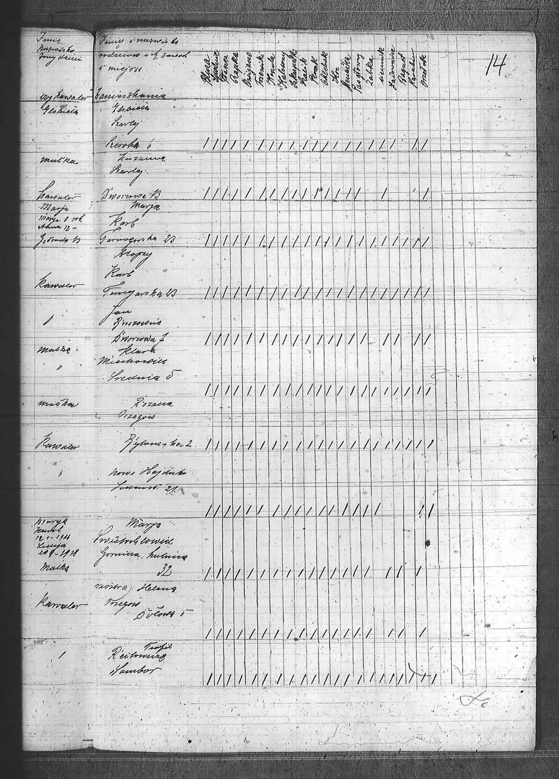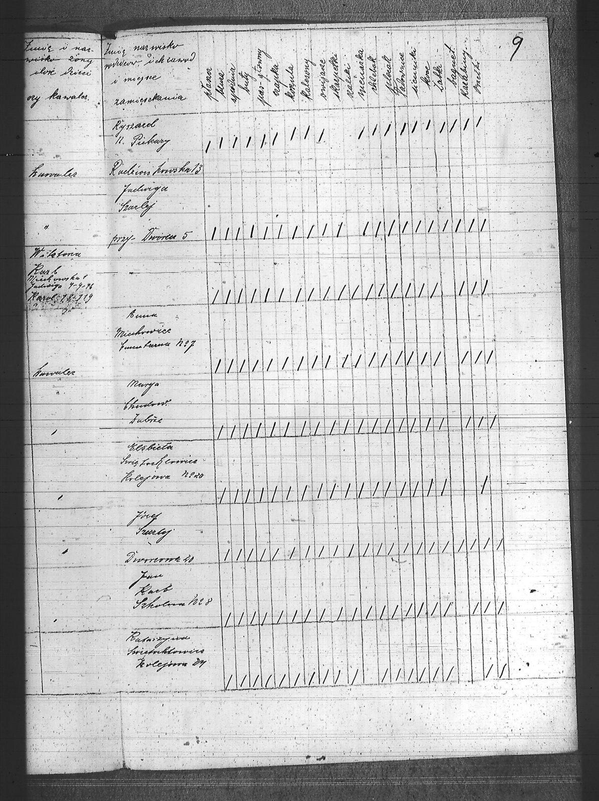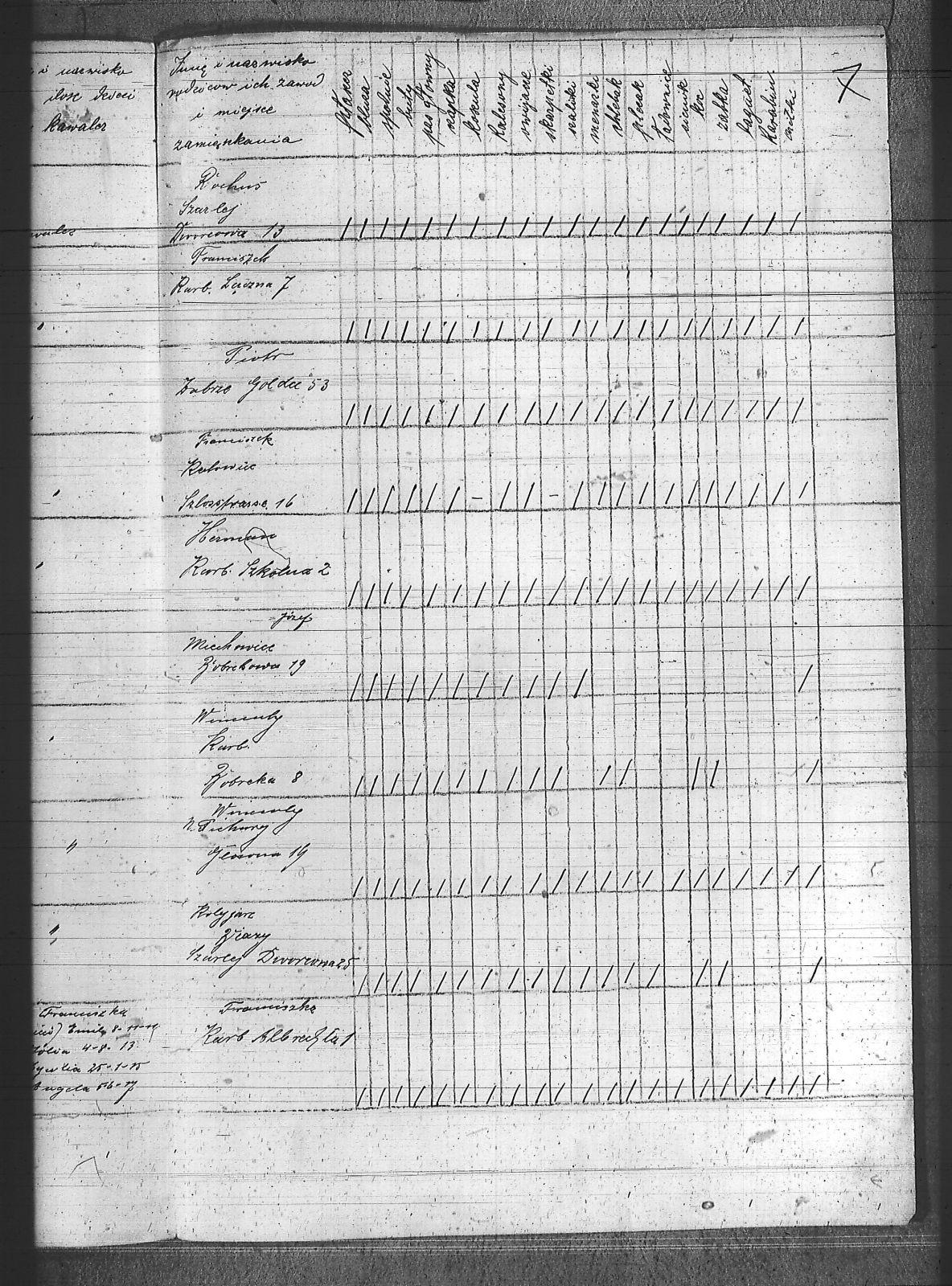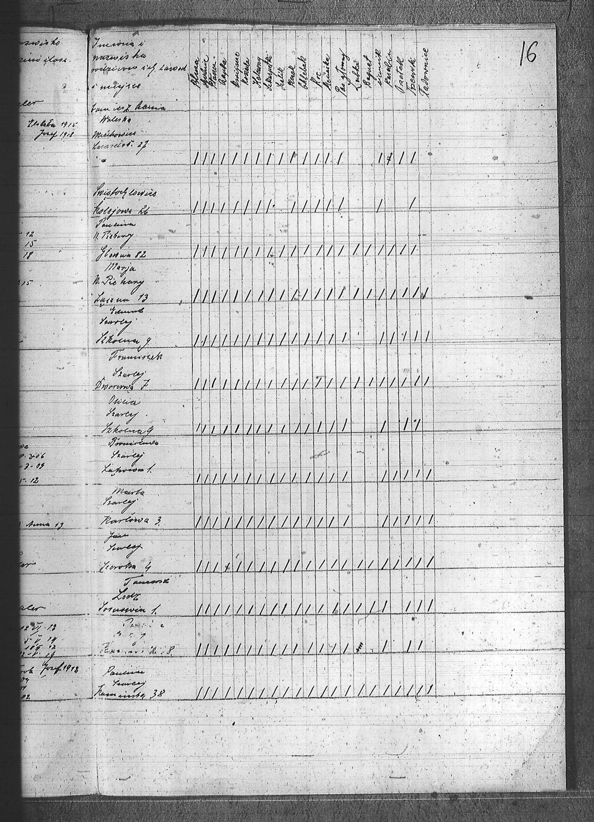 [nieczytelne], Jerzy; Aleksa, Piotr; Bąk, Wiktor; Błach, Franciszek; Błach, Wincenty; Bogacki, ; Bombelka, Ryszard; Borszcek, Paweł; Buczek, Wincenty; Burczyk, Jan; Ciasto, Stanisław; Cielątko, Ludwig; Cigler, Ignacy; Cympiel, Alojzy; Deptala, Alojzy; Dillman, Paweł; Drzezga, Michał; Dwornik, Emanuel; Dwornik, Franciszek; Franiel, Jan; Fruczyk, Franciszek; Gabryś, Franciszek; Ganczarek, Stanisław; Gazimierz, Roman; Głodzik, Teofil; Gruca, Augustyn; Guzik, Jerzy; Gwóźdź, Paweł; Gzell, Szczepan; Hadyk, Paweł; Hajduk, Józef; Hansel, Piotr; Hojczyk, Józef; Hok, Wiktor; Izański, Zygmunt; Jesierowski, Jan; Kałuża, August; Kamiński, Alojzy; Kempa, Jan; Kisel, Szczepan; Klapuczyk, Teodor; Knopp, Wincenty; Koczwara, Marcin; Kołodziej, Franciszek; Kołodziejczyk, Filip; Kołodziejczyk, Piotr; Kołodziejczyk, Teodor; Kot, Reinard; Kubior, Teofil; Kulibuta, Wilhelm; Kwiol, Jan; Laszczyk, Ignacy; Leszek, Robert; Lis, Robert; Lizurek, Józef; Maruszczyk, Mateusz; Micka, Józef; Moczygęba, Jan; Morawiec, Ignacy; Mrowiec, Emil; Mrowiec, Paweł; Mularczyk, Józef; Mzyk, Szczepan; Ochota, Wiktor; Opuchlik, Jakub; Pasternok, Józef; Pasterski, Henryk; Pfeifer, Władysław; Pluszczyk, Filip; Popęda, Jan; Proncik, Leon; Przybyłek, Aleksy; Rożek, Bogumił; Różanka, Jan; Różanka, Tomasz; Siwy, Wincenty; Skorupa, Tomasz; Słoń, Aleksander; Sowa, Jan; Swoboda, Antoni; Szurek, Augustyn; Świerzy, Jan; Trzcianek, Emanuel; Wicik, Franciszek; Widera, Konstanty; Wiechoczek, Walenty; Wojcik, Alojzy; Wrzaskała, Jan; |