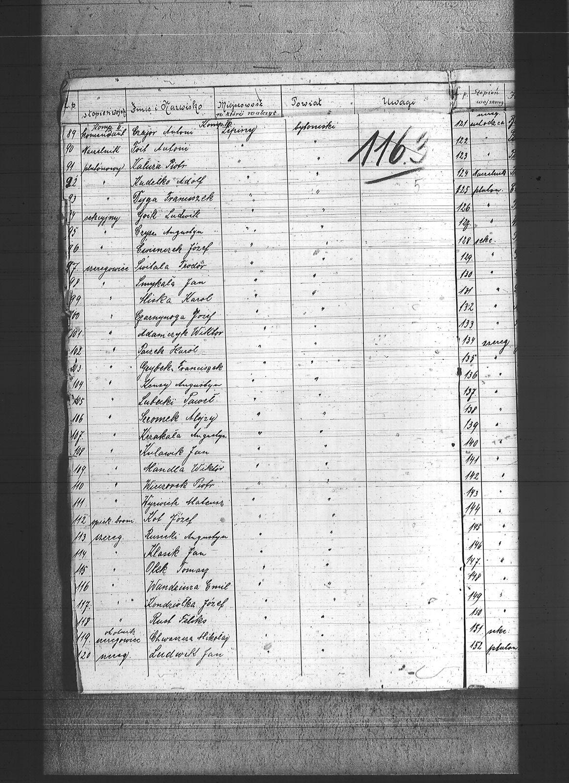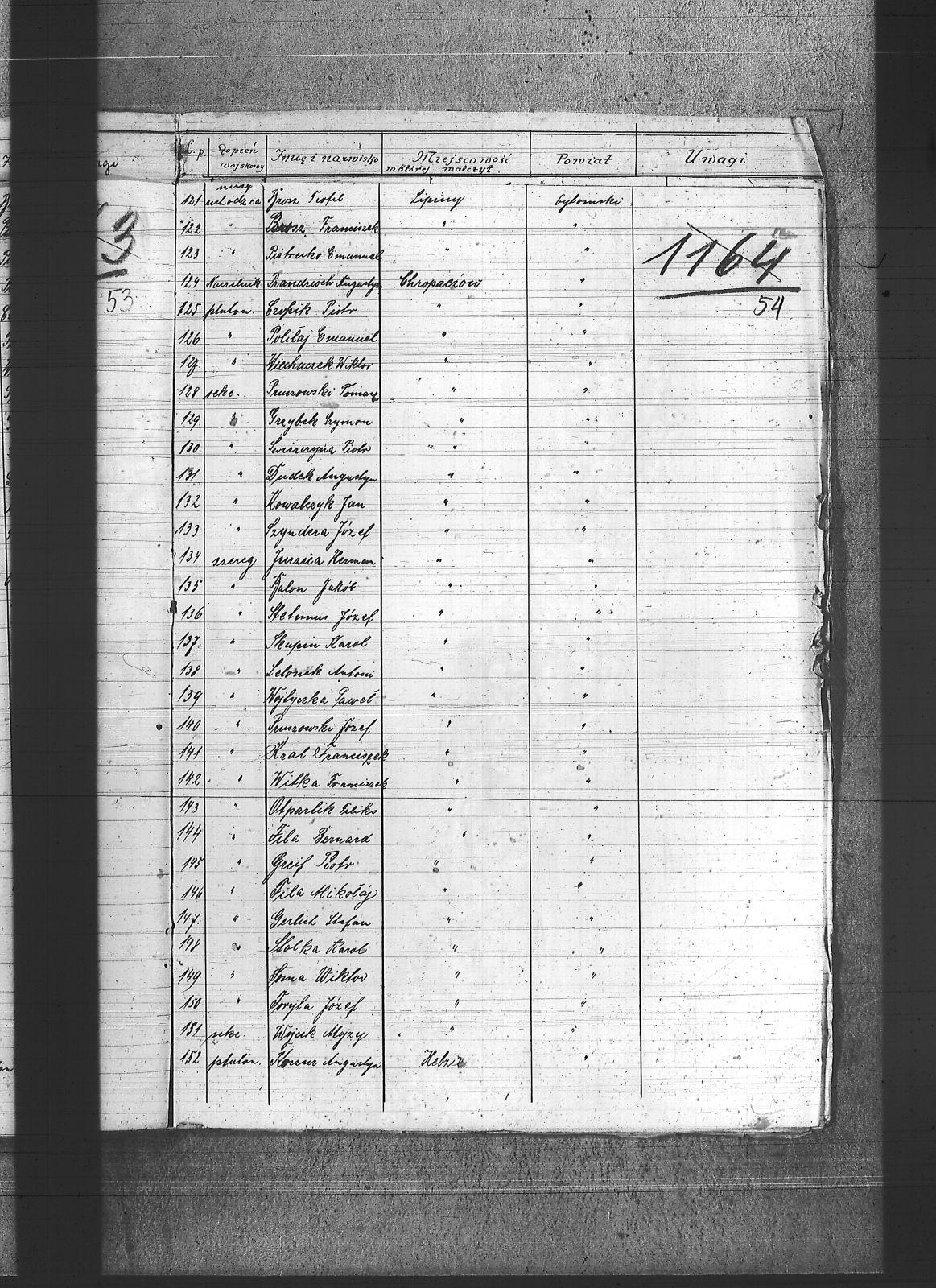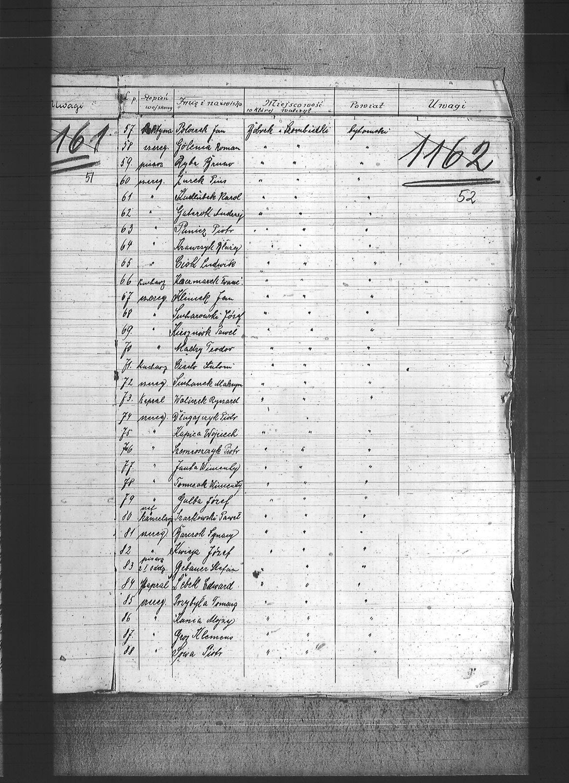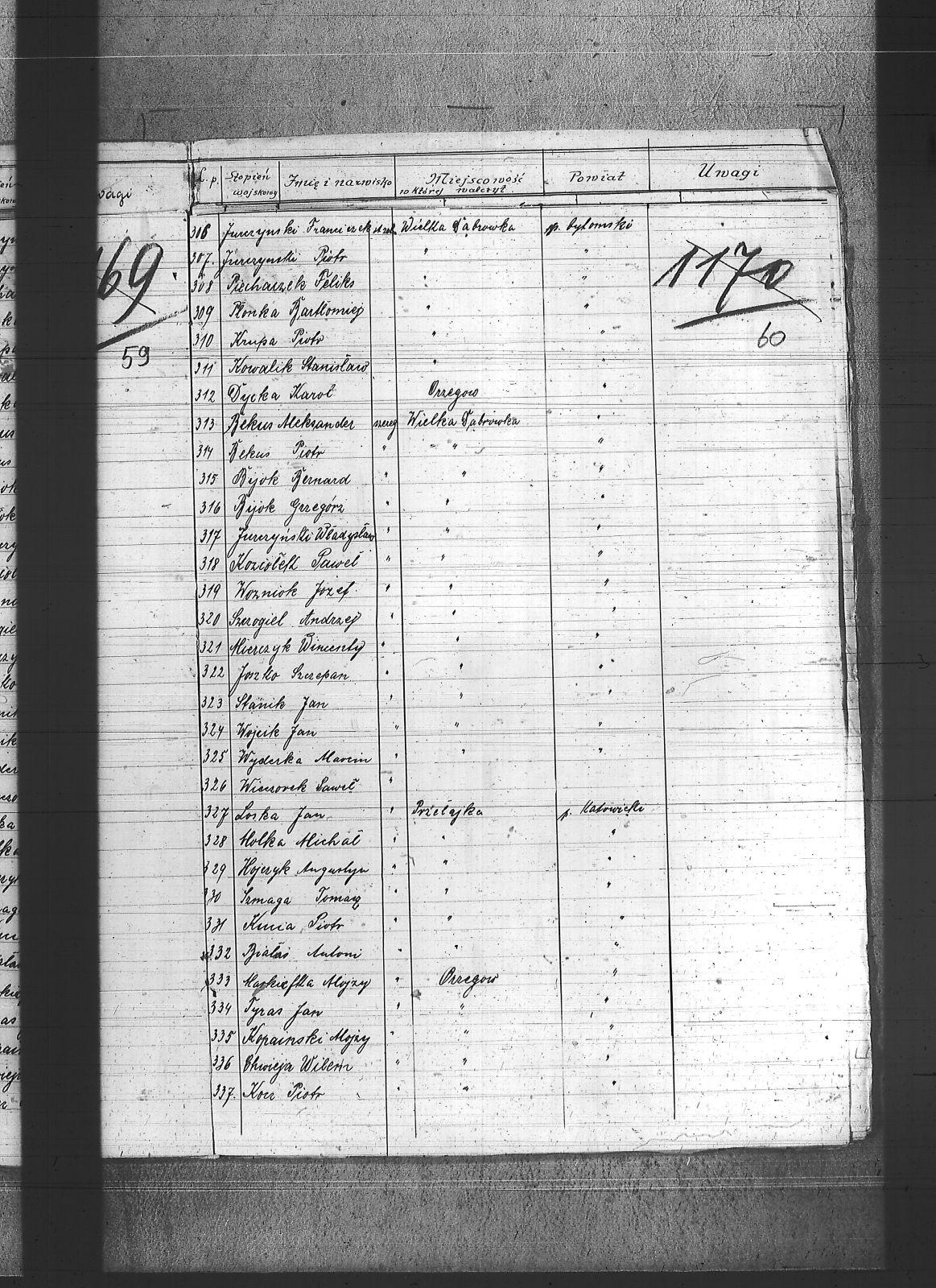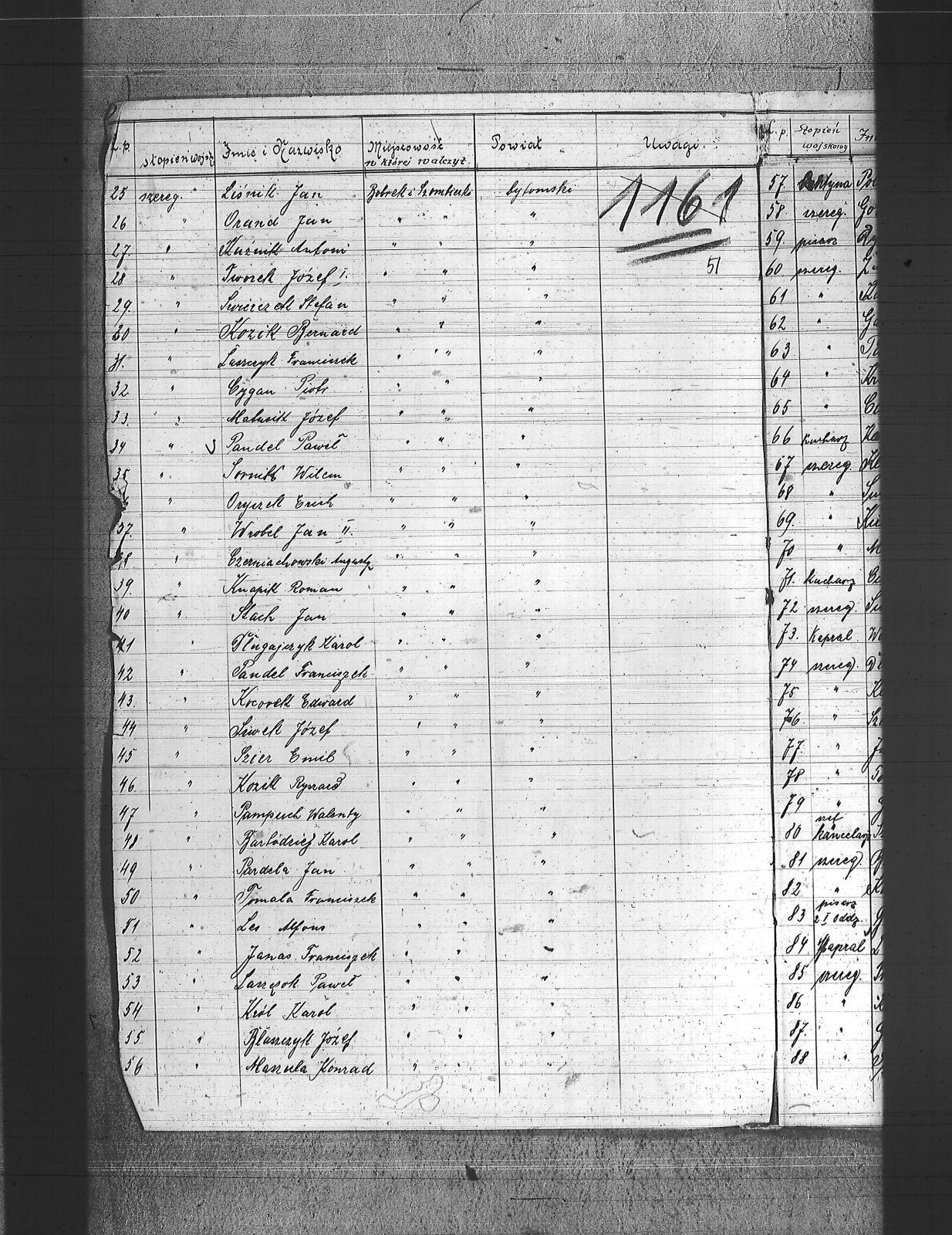 Adam, Franciszek; Adamczyk, Wiktor; Adamiec, Augustyn; Adamiec, Jan; Balon, Jakub; Baran, Jan; Barczok, Ignacy; Baron, Emil; Bartodziej, Karol; Bąk, Augustyn; Bąk, Wincenty; Bednarski, Walenty; Bekus, Aleksander; Bekus, Piotr; Białas, Antoni; Bienek, Ignacy; Bijok, Bernard; Bijok, Grzegorz; Błaszczyk, Józef; Bochenek, Teodor; Bombis, Teodor; Brosz, Franciszek; Brosz, Teofil; Brzezina, Szymon; Buchcik, Franciszek; Buchcik, Ignacy; Burczyk, Jan; Choroba, Juliusz; Chwaszcza, Mikołaj; Chwieja, Wilem; Ciasto, Antoni; Cieśla, Wawrzyniec; Ciok, Ludwik; Cofała, Jakub; Cwienczek, Józef; Cygan, Piotr; Czajor, Antoni; Czapek, Urban; Czapik, Piotr; Czarnynoga, Józef; Czerniachowski, Augustyn; Czysz, Augustyn; Ćmiel, Edward; Daniecki, Wojciech; Deptala, Józef; Długajczyk, Karol; Długajczyk, Paweł; Długajczyk, Piotr; Dragon, Jan; Dragon, Paweł; Duchniowski, Piotr; Duda, Augustyn; Duda, Józef; Dudek, Augustyn; Dudlik, Józef; Dycka, Karol; Dyga, Franciszek; Działach, Józef; Ficek, Paweł; Fila, Bernard; Fila, Mikołaj; Flak, Feliks; Flak, Franciszek; Flak, Paweł; Flak, Piotr; Flaszyński, Maksym; Foit, Antoni; Fonfara, Jan; Frainel, Jan; Franiel, Jan; Franiel, Teodor; Gabór, Józef; Gabryś, Paweł; Gabryś, Robert; Galczok, Andrzej; Gałbas, Rajmund; Gaweł, Augustyn; Gawlik, Franciszek; Gebauer, Stefan; Gerlich, Stefan; Giza, Jan; Goik, Ludwik; Golema, Roman; Grabiński, Jan; Grala, Konrad; Greif, Piotr; Greinerl, Ludwik; Gros, Klemens; Grzanta, Wojciech; Grzybek, Franciszek; Grzybek, Szymon; Gulba, Józef; Gwizdoł, Teodor; Hadzik, Jan; Handla, Wiktor; Hartman, Wilem; Hiska, Karol; Hofman, Karol; Hojczyk, Augustyn; Hojka, Franciszek; Hok, Alfons; Husioł, Antoni; Janas, Franciszek; Janta, Wincenty; Januszowski, Franciszek; Janysek, Wilem; Joszko, Szczepan; Jurczyński, Franciszek; Jurczyński, Piotr; Jurczyński, Władysław; Jurosz, Paweł; Jurzyca, Herman; Kaczmarek, Franciszek; Kadłubek, Karol; Kadzioch, Paweł; Kaizer, Augustyn; Kaliwoda, Teodor; Kalyta, Ignacy; Kałuża, Piotr; Kampel, Józef; Kania, Alojzy; Kania, Paweł; Kapica, Wojciech; Karmański, Piotr; Kaszuba, Wojciech; Kempa, Antoni; Kensy, Augustyn; Kirszniok, Paweł; Klanza, Szymon; Klasik, Jan; Klimek, Jan; Klocz, Tomasz; Knapik, Roman; Kobierski, Paweł; Kocurek, Edward; Kocz, Piotr; Koczur, Augustyn; Koczur, Jan; Koczur, Maksymilian; Kondziołka, Józef; Kopański, Alojzy; Korfanty, Józef; Kot, Jan; Kot, Józef; Kotas, Tomasz; Kowalczyk, Jan; Kowalik, Stanisław; Kozik, Bernard; Kozik, Ryszard; Koziołek, Paweł; Kozłowski, Paweł; Krajuszek, Roman; Kral, Franciszek; Kran, Franciszek; Krawczyk, Błażej; Król, Karol; Króliczek, Józef; Krupa, Jan; Krupa, Piotr; Krzakała, Augustyn; Krzuk, Karol; Kuc, Aleksander; Kucia, Piotr; Kudełko, Adolf; Kulawik, Jan; Kupiec, Jan; Kupka, Paweł; Kupny, Józef; Kuźnik, Antoni; Kwapuliński, Franciszek; Kwas, Franciszek; Kwieja, Józef; Kwiska, Franciszek; Lapok, Emil; Lasok, Piotr; Laszczok, Paweł; Laszczok, Wincenty; Lelonek, Antoni; Lempka, Ryszard; Les, Alfons; Liśnik, Jan; Los, Paweł; Loska, Jan; Lubecki, Paweł; Ludwik, Jan; Ludyga, Andrzej; Ludyga, Antoni; Ludyga, Jan; Ludyga, Józef; Ludyga, Konstanty; Ludyga, Piotr; Ludyga, Teofil; Ludyga, Tomasz; Łaszczyk, Franciszek; Łatka, Rajmund; Łatka, Roman; Łebek, Edward; Malina, Józef; Markiefka, Alojzy; Maszula, Konrad; Matura, Robert; Matusik, Józef; Matyska, Teodor; Mazur, Paweł; Mądry, Teodor; Mendecki, Józef; Mierczyk, Wincenty; Mirdek, Florian; Mizdzioł, Jan; Molka, Michał; Nierobisz, Teodor; Niewiadomski, Alojzy; Niewiadomski, Marcel; Nowak, Herman; Nowak, Jan; Nowakowski, Tomasz; Ochmańczyk, Franciszek; Oginski, Konstanty; Olejnik, Bernard; Olek, Tomasz; Opiełka, Teodor; Orand, Jan; Oryczek, Erich; Otparlik, Feliks; Otrząska, Leon; Paczek, Karol; Pająk, Alfons; Paliga, Augustyn; Pampuch, Walenty; Pandel, Franciszek; Pandel, Paweł; Panicz, Piotr; Pańta, Piotr; Pardela, Jan; Paruzel, Karol; Pawełczyk, Ignacy; Pawełczyk, Jan; Pawlikowski, Jan; Piątek, Adolf; Piątek, Franciszek; Piątek, Ludwik; Piechaczek, Feliks; Pietrecki, Emanuel; Pietrek, Paweł; Pilot, Józef; Pluszczyk, Piotr; Pluszczyk, Roman; Pluta, Karol; Płonka, Bartłomiej; Politaj, Emanuel; Poloczek, Jan; Polok, Kasper; Prandzioch, Augustyn; Pruczowski, Tomasz; Prudło, Jan; Pruszowski, Józef; Przemota, Franciszek; Przybyła, Tomasz; Przybyłek, Tomasz; Pudlik, Franciszek; Pyrek, Jan; Rabuś, Marcin; Racki, Paweł; Rożek, Andrzej; Rubin, Wilhelm; Rus, Franciszek; Rusecki, Augustyn; Rust, Feliks; Ryba, Bruno; Sapa, Ryszard; Siegel, Józef; Siwek, Franciszek; Siwek, Józef; Siwy, Jan; Skowronek, Augustyn; Skórka, Franciszek; Skrzypiec, Franciszek; Skupień, Karol; Slany, Franciszek; Słota, Karol; Smela, Karol; Smykała, Jan; Sobek, Juliusz; Sojka, Paweł; Sornik, Wilem; Sosna, Wiktor; Sowa, Piotr; Stach, Jan; Stanienda, Jan; Stanienda, Walenty; Stanienda, Wilhelm; Stanik, Jan; Stetinus, Józef; Stolka, Karol; Strozik, Marcin; Suchanek, Maksym; Sucharowski, Emanuel; Sucharowski, Józef; Suchaszczyk, Piotr; Szarkowski, Paweł; Szatek, Emanuel; Szatek, Paweł; Szczogieł, Andrzej; Szeja, Franciszek; Szemroszczyk, Piotr; Szier, Emil; Szmaga, Tomasz; Sznober, Józef; Szpeil, Józef; Szromek, Alojzy; Szweda, Teodor; Szymanek, Piotr; Szyndera, Józef; Świder, Franciszek; Świerczek, Stefan; Świerczyna, Piotr; Świtała, Teodor; Tandura, Tomasz; Tomala, Franciszek; Tomczak, Wincenty; Toryfa, Józef; Tost, Paweł; Tudyga, Alojzy; Tusze, Oskar; Tworek, Józef I; Tyras, Jan; Wagner, Karol; Waliczek, Ryszard; Wandziura, Emil; Wicik, Piotr; Wiechaczek, Wiktor; Wieczorek, Jan; Wieczorek, Paweł; Wieczorek, Piotr; Wieczorek, Tomasz; Wieszołek, Rafał; Wilim, Edmund; Witka, Franciszek; Wochnik, Piotr; Wojcik, Jan; Wojtyczka, Paweł; Wolny, Ludwig; Wozniok, Józef; Wójcik, Alojzy; Wójcik, Szczepan; Wróbel, Jan II; Wyderka, Marcin; Wydra, Jan; Wydra, Józef; Wylynzek, Karol; Wyrwich, Mateusz; Wyrwoł, Ryszard; Zając, Franciszek; Zosz