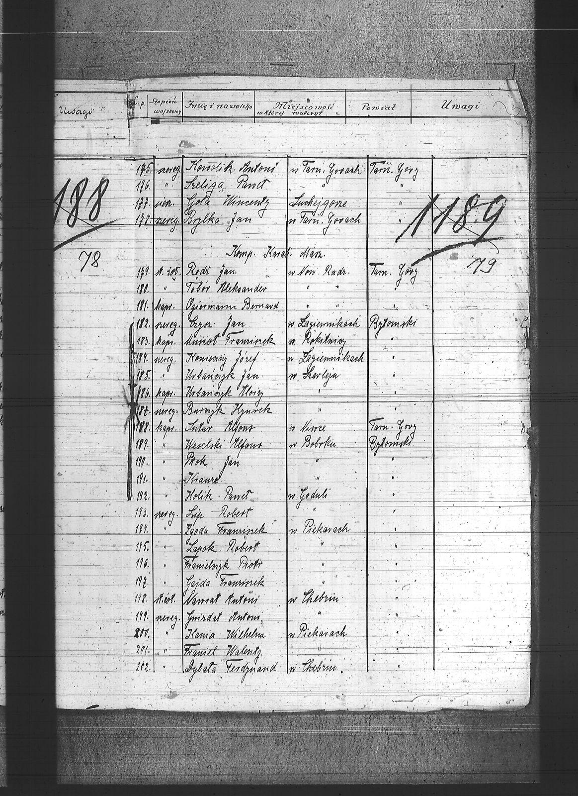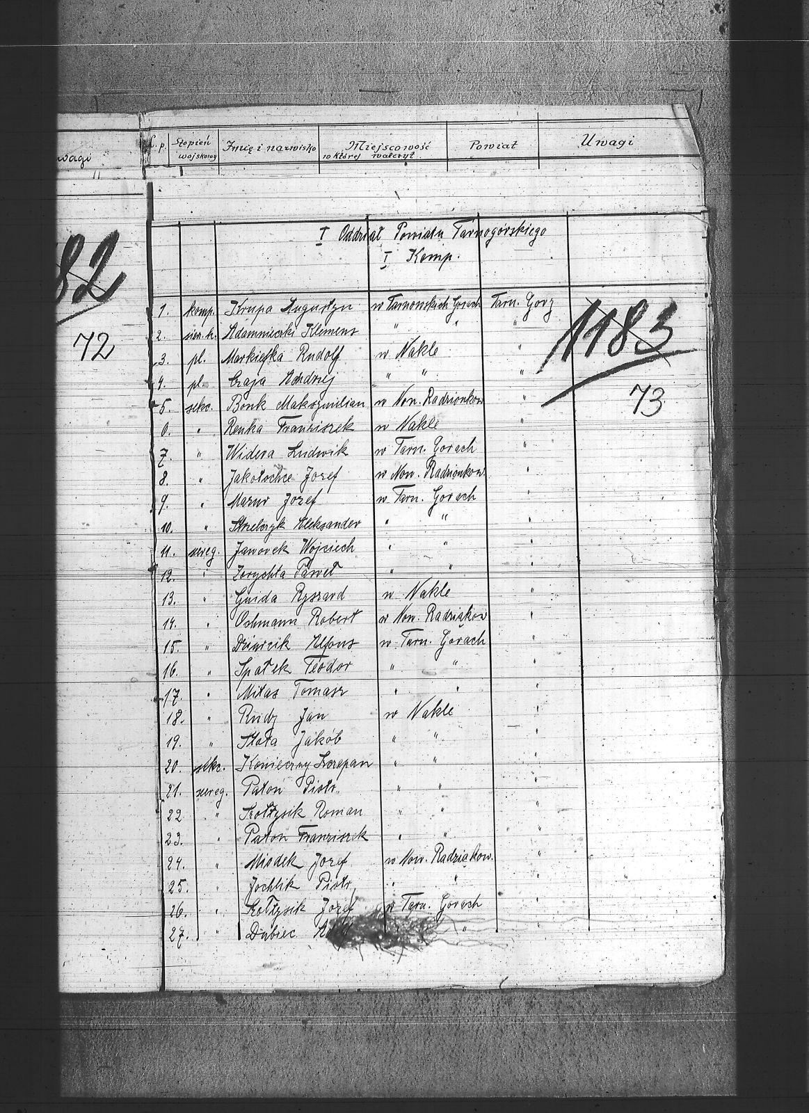 Adamiec, Ludwik; Adamnieczki, Klemens; Andraczek, Paweł; Bacik, Paweł; Bacik, Piotr; Badura, Jan; Banas, Franciszek; Banaś, Paweł; Bąk, Emanuel; Bednarczyk, Paweł; Bendkowski, Piotr; Bohm, Feliks; Bonk, Maksymilian; Bonk, Teodor; Brol, Jan; Broll, Paweł; Brylka, Adolf; Brylka, Jan; Bryłka, Paweł; Buchacz, Jan; Budny, Teofil; Bula, Tomasz; Burczyk, Henryk; Cichy, Robert; Cichy, Walenty; Czaja, Andrzej; Czysz, Jan; Doner, Karol; Dubiec, Adolf; Dybała, Ferdynand; Dymarczyk, Paweł; Dziońsko, Piotr; Dziurcik, Alfons; Flak, Bernard; Flak, Jerzy; Flak, Paweł; Flak, Wilhelm; Franiel, Walenty; Franielczyk, Piotr; Froncik, Wilhelm; Gaidas, Emanuel; Gajda, Franciszek; Gala, Paweł; Galbas, Emanuel; Galbas, Wiktor; Gałensiak, Jan; Gaweł, Jan; Gaweł, Ludwik; Gawlewski, Wilhelm; Gnida, Ryszard; Gola, Wincenty; Grzyb, Jan; Gwizdat, Antoni; Hampel, Jakub; Hampf, Bolesław; Hauzel, Ignacy; Hendel, Józef; Hoinca, Paweł; Holik, Paweł; Horzela, Józef; Jachlik, Piotr; Jakotochce, Józef; Jakotochce, Tomasz; Jany, Augustyn; Jany, Robert; Jańczyk, Jakub; Jasiok, Wincenty; Jaworek, Wojciech; Judas, Augustyn; Kaczmarczyk, Józef; Kaczmarek, Jan; Kania, Wilhelm; Kapuściowski, Bolesław; Kawka, Hieronim; Keil, Emanuel; Kempka, Melchior; Kieras, Piotr; Knop, Piotr; Koczurowski, Alojzy; Konieczny, Józef; Konieczny, Szczepan; Kowalski, Józef; Kowolik, Antoni; Krauze; Krupa, Augustyn; Kubik, Jan; Kucia, Wiktor; Kuraj, Bernardyn; Kurczyk, Wojciech; Kwaśniok, Piotr; Labus, Antoni; Labus, Ryszard; Lapok, Robert; Larysz, Walter; Ledwochowski, Andrzej; Ledwoń, Ignacy; Lip, Robert; Lipa, Emil; Lis, Emanuel; Lukoszek, Szymon; Lurczyk, Augustyn; Luszczyk, Teodor; Machura, Andrzej; Makowski, Emanuel; Mańka, Jan; Markiefka, Rudolf; Matejczyk, Jan; Matejczyk, Paweł; Matejczyk, Wilhelm; Mazur, Józef; Miglus, Jan; Miodek, Józef; Mis, Augustyn; Miś, Robert; Mitas, Tomasz; Mitręga, Józef; Mrozek, Józef; Mrozek, Stanisław; Musialik, Józef; Musioł, Franciszek; Nalewajka, Teofil; Nawrat, Antoni; Niechoj, Bernard; Nowak, Augustyn; Nowak, Grzegorz; Nowak, Ignacy; Nowak, Jan I; Nowak, Jan III; Nowak, Piotr; Nowak, Robert; Nowak, Wojciech; Ochmann, Robert; Ogiermann, Bernard; Opiełka, Stanisław; Paliga, Franciszek; Paton, Franciszek; Paton, Piotr; Patoń, Ryszard; Piekarczyk, Piotr; Pietryga, Franciszek; Pietryga, Ludwik; Pietryga, Paweł; Pietrzyk, Józef; Pluta, Wilhelm; Podora, Franciszek; Polok, Paweł; Ptok, Jan; Reichel, Jan; Reinsz, Piotr; Renka, Franciszek; Rędź, Jan; Rudy, Jan; Sapa, Antoni; Sikora, Franciszek; Skutnik, Józef; Słota, Teofil; Smyta, Ignacy; Sowa, Aleksander; Sowa, Jan; Sowa, Roman; Spałek, Teodor; Stata, Jakub; Stempel, Fryderyk; Stranch, Józef; Strencel, Wincenty; Strzelczyk, Aleksander; Strzelczyk, Teodor; Strzelecki, Jan; Susek, Tomasz; Sutor, Szczepan; Sutur, Alfons; Szeliga, Paweł; Szeliga, Piotr; Szewczyk, Józef; Szlega, Aleksander; Szołtysik, Józef; Szołtysik, Konrad; Szołtysik, Roman; Szubert, Szczepan; Szulc, Piotr; Szyler, Józef; Tabor, Józef; Tabor, Tomasz II; Tobór, Aleksander; Tobór, Ludwik; Tobór, Tomasz; Tomys, Walenty; Toreiter, Robert; Tyczka, Jan; Urbańczyk, Alojzy; Urbańczyk, Jan; Urbańczyk, Paweł; Urbańczyk, Piotr; Wadowski, Walenty; Weselski, Alfons; Widera, Ludwik; Wieczer, Rudolf; Wieczorek, Dionizy; Wojcik, Paweł; Wolski, Szymon; Wostal, Paweł; Wrodarczyk, Teodor; Wróbel, Sylwester; Wrześniowski, Jan; Wyrwoł, Józef; Zachor, Jan; Zając, Augustyn; Zając, Wojciech; Zejer, Jan; Zerychta, Paweł; Zgoda, Franciszek; Żydek, Paweł; |