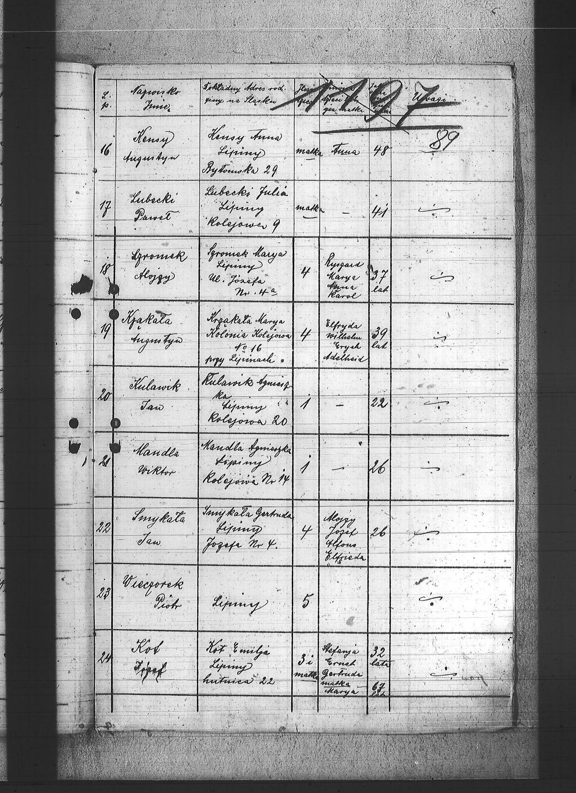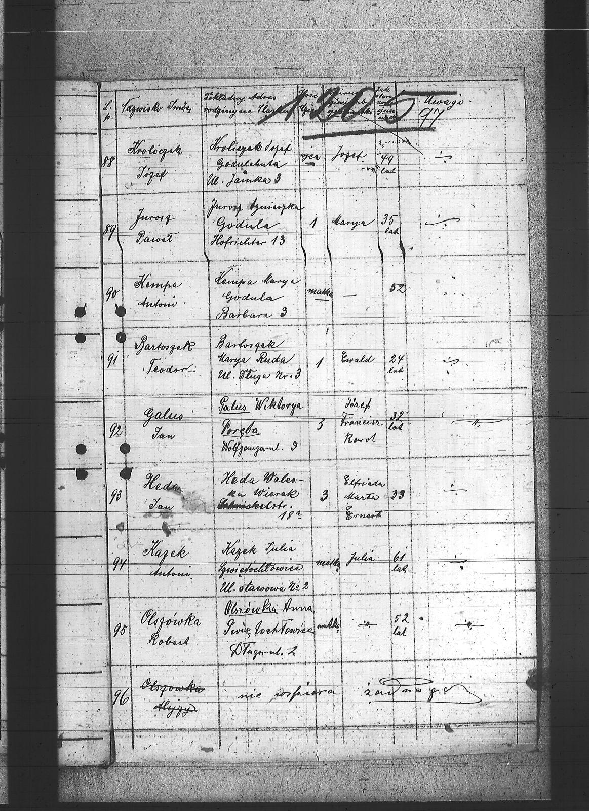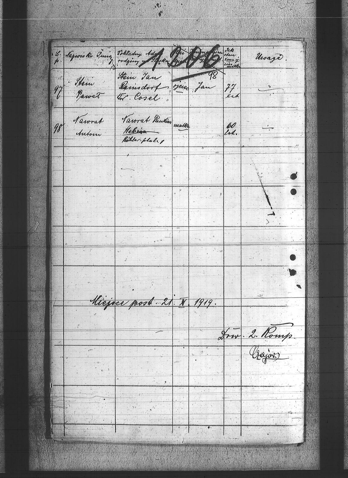 Adam, Franciszek; Baloń, Jakub; Bartoszek, Teodor; Becker, Paweł; Brosz, Franciszek; Broś, Teofil; Choroba, Juliusz; Chwaszcza, Mikołaj; Cudaj, Leon; Cwienczek, Józef; Czajor, Antoni; Czarnynoga, Józef; Czopik, Piotr; Czysz, Augustyn; Ćmiel, Edward; Dragon, Jan; Dyga, Franciszek; Ficek, Herman; Fila, Bernard; Flaszyński, Maksymilian; Foit, Antoni; Gabryś, Robert; Galus, Jan; Gawlik, Franciszek; Grzybek, Franciszek; Grzybek, Szymon; Hartman, Wilhelm; Heda, Jan; Holewik, Paweł; Januszowski, Franciszek; Jasik, Jan; Jurosz, Paweł; Kaliwoda, Teodor; Kałuża, Piotr; Kazek, Antoni; Kempa, Antoni; Kensy, Augustyn; Klasik, Jan; Koczur, Augustyn; Koczur, Herman; Koczur, Jan; Kondziołka, Józef; Kot, Józef; Kotas, Tomasz; Kowalczyk, Jan; Krakała, Augustyn; Kral, Franciszek; Króliczek, Józef; Krzuk, Karol; Kulawik, Jan; Kwasny, Bernard; Lesnik, Karol; Letonek, Antoni; Lubecki, Paweł; Mandla, Wiktor; Miska, Karol; Nawrat, Antoni; Nowak, Maciej; Nowakowski, Tomasz; Olejnik, Bernard; Olek, Tomasz; Olszówka, Robert; Paszek, Karol; Pietrecko, Emanuel; Pietrek, Paweł; Piontek, Franciszek; Politaj, Emanuel; Pruszowski, Tomasz; Reichert, Maksymilian; Rubin, Wilhelm; Rusecki, Augustyn; Rut, Feliks; Siegel, Józef; Skupin, Karol; Smela, Karol; Smykała, Jan; Sobek, Juliusz; Stein, Paweł; Sucharowski, Emanuel; Szablicki, Wilhelm; Szewerda, Teodor; Szromek, Alojzy; Szwitała, Teodor; Szyndera, Józef; Świerczyna, Piotr; Tkocz, Tomasz; Tusze, Oskar; Wagner, Karol; Wandziura, Emil; Wiechaczek, Wiktor; Wieczorek, Piotr; Wieczorek, Tomasz; Witke, Franciszek; Wochnik, Piotr; Wojcik, Alojzy; Wojtyczka, Paweł; Wojtyczka, Robert; |