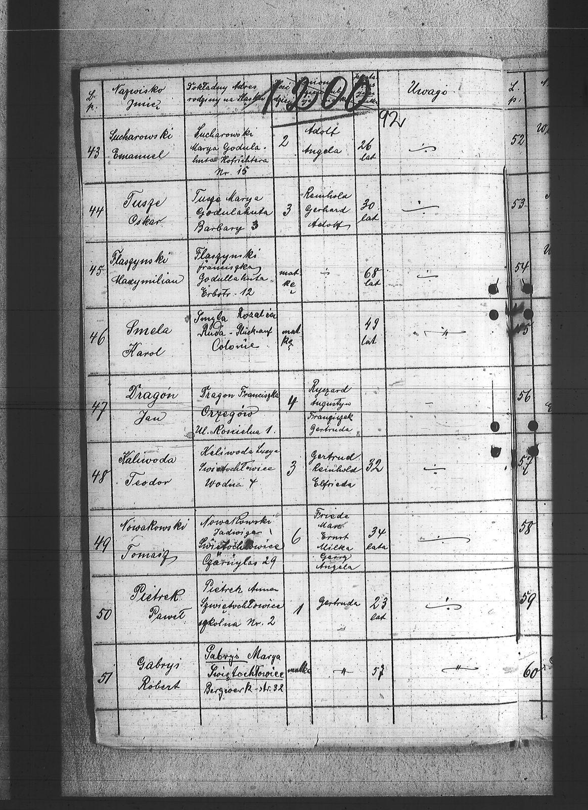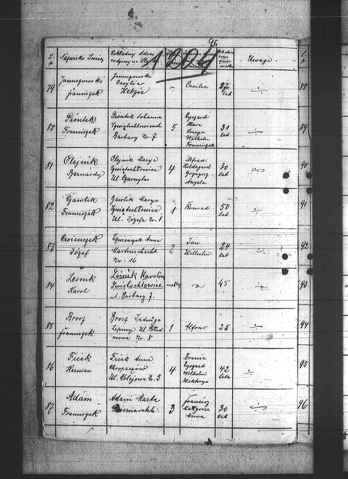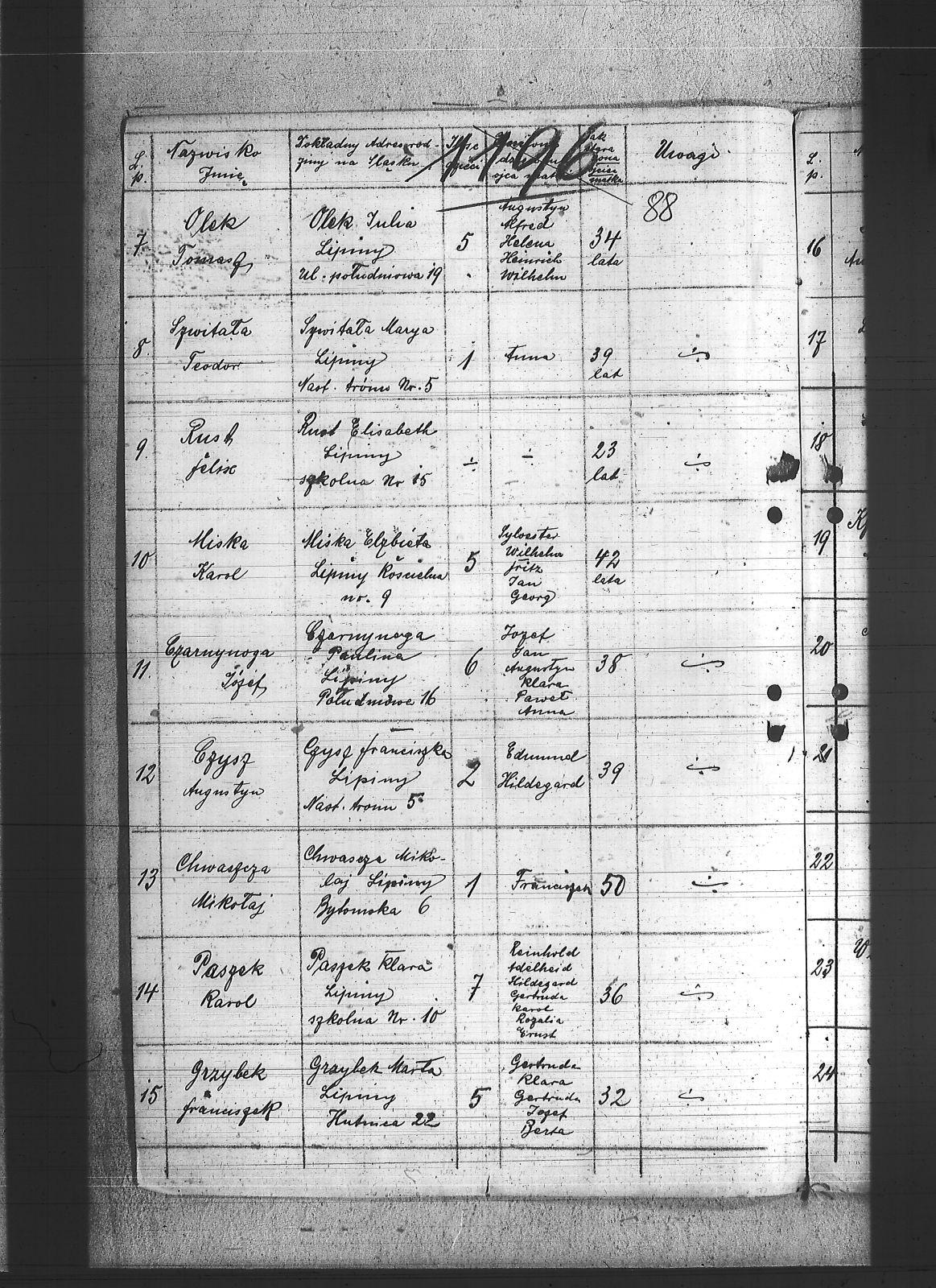 Adam, Franciszek; Baloń, Jakub; Bartoszek, Teodor; Becker, Paweł; Brosz, Franciszek; Broś, Teofil; Choroba, Juliusz; Chwaszcza, Mikołaj; Cudaj, Leon; Cwienczek, Józef; Czajor, Antoni; Czarnynoga, Józef; Czopik, Piotr; Czysz, Augustyn; Ćmiel, Edward; Dragon, Jan; Dyga, Franciszek; Ficek, Herman; Fila, Bernard; Flaszyński, Maksymilian; Foit, Antoni; Gabryś, Robert; Galus, Jan; Gawlik, Franciszek; Grzybek, Franciszek; Grzybek, Szymon; Hartman, Wilhelm; Heda, Jan; Holewik, Paweł; Januszowski, Franciszek; Jasik, Jan; Jurosz, Paweł; Kaliwoda, Teodor; Kałuża, Piotr; Kazek, Antoni; Kempa, Antoni; Kensy, Augustyn; Klasik, Jan; Koczur, Augustyn; Koczur, Herman; Koczur, Jan; Kondziołka, Józef; Kot, Józef; Kotas, Tomasz; Kowalczyk, Jan; Krakała, Augustyn; Kral, Franciszek; Króliczek, Józef; Krzuk, Karol; Kulawik, Jan; Kwasny, Bernard; Lesnik, Karol; Letonek, Antoni; Lubecki, Paweł; Mandla, Wiktor; Miska, Karol; Nawrat, Antoni; Nowak, Maciej; Nowakowski, Tomasz; Olejnik, Bernard; Olek, Tomasz; Olszówka, Robert; Paszek, Karol; Pietrecko, Emanuel; Pietrek, Paweł; Piontek, Franciszek; Politaj, Emanuel; Pruszowski, Tomasz; Reichert, Maksymilian; Rubin, Wilhelm; Rusecki, Augustyn; Rut, Feliks; Siegel, Józef; Skupin, Karol; Smela, Karol; Smykała, Jan; Sobek, Juliusz; Stein, Paweł; Sucharowski, Emanuel; Szablicki, Wilhelm; Szewerda, Teodor; Szromek, Alojzy; Szwitała, Teodor; Szyndera, Józef; Świerczyna, Piotr; Tkocz, Tomasz; Tusze, Oskar; Wagner, Karol; Wandziura, Emil; Wiechaczek, Wiktor; Wieczorek, Piotr; Wieczorek, Tomasz; Witke, Franciszek; Wochnik, Piotr; Wojcik, Alojzy; Wojtyczka, Paweł; Wojtyczka, Robert; |