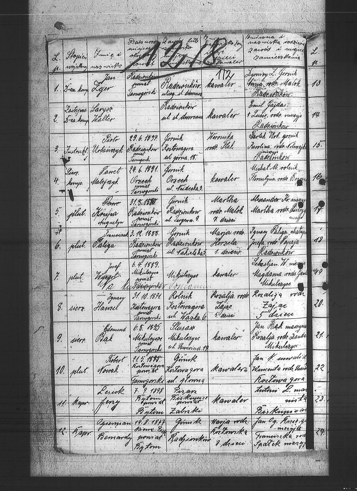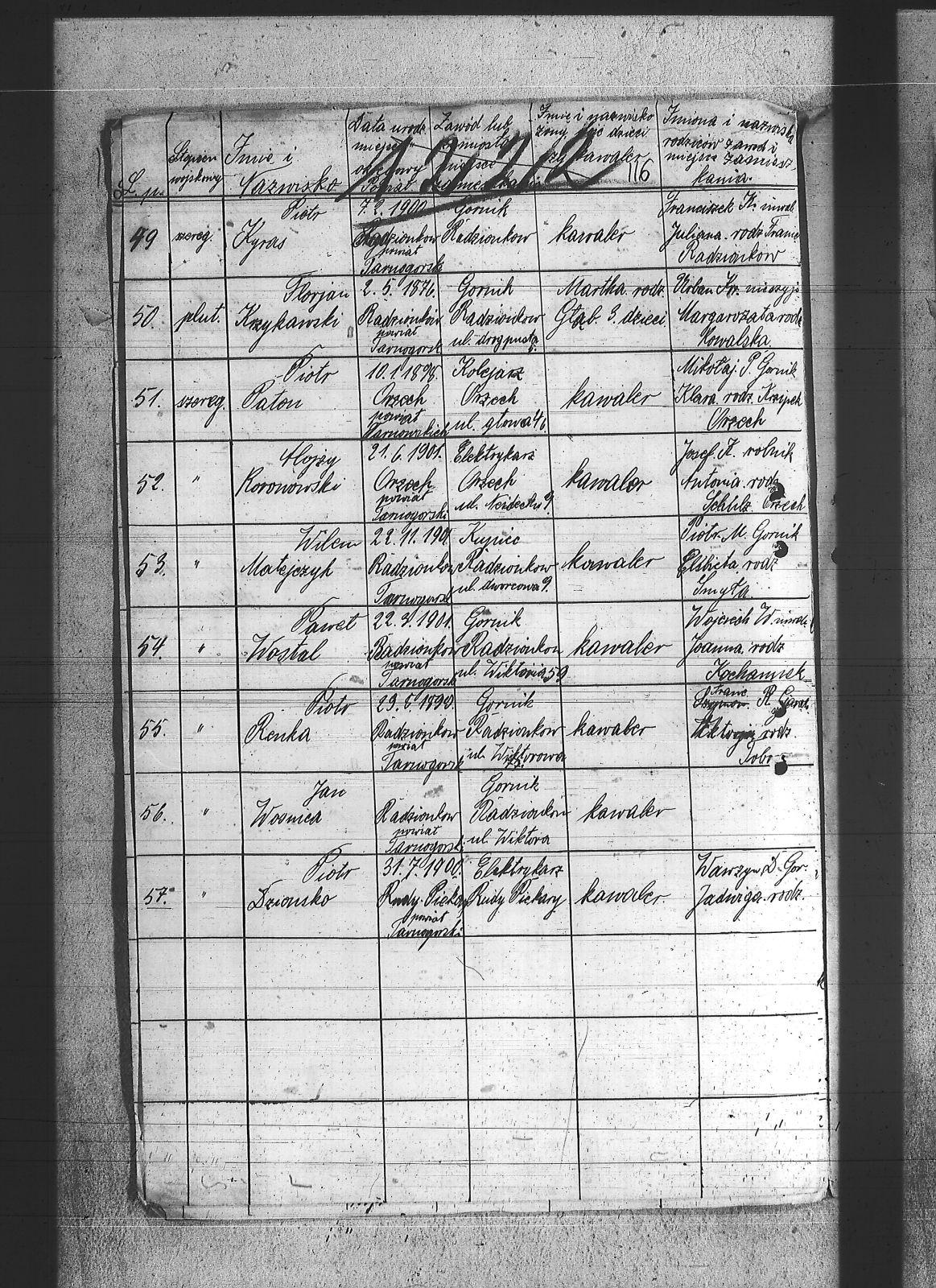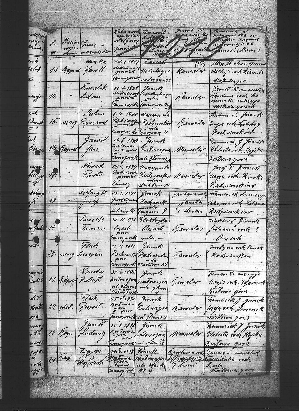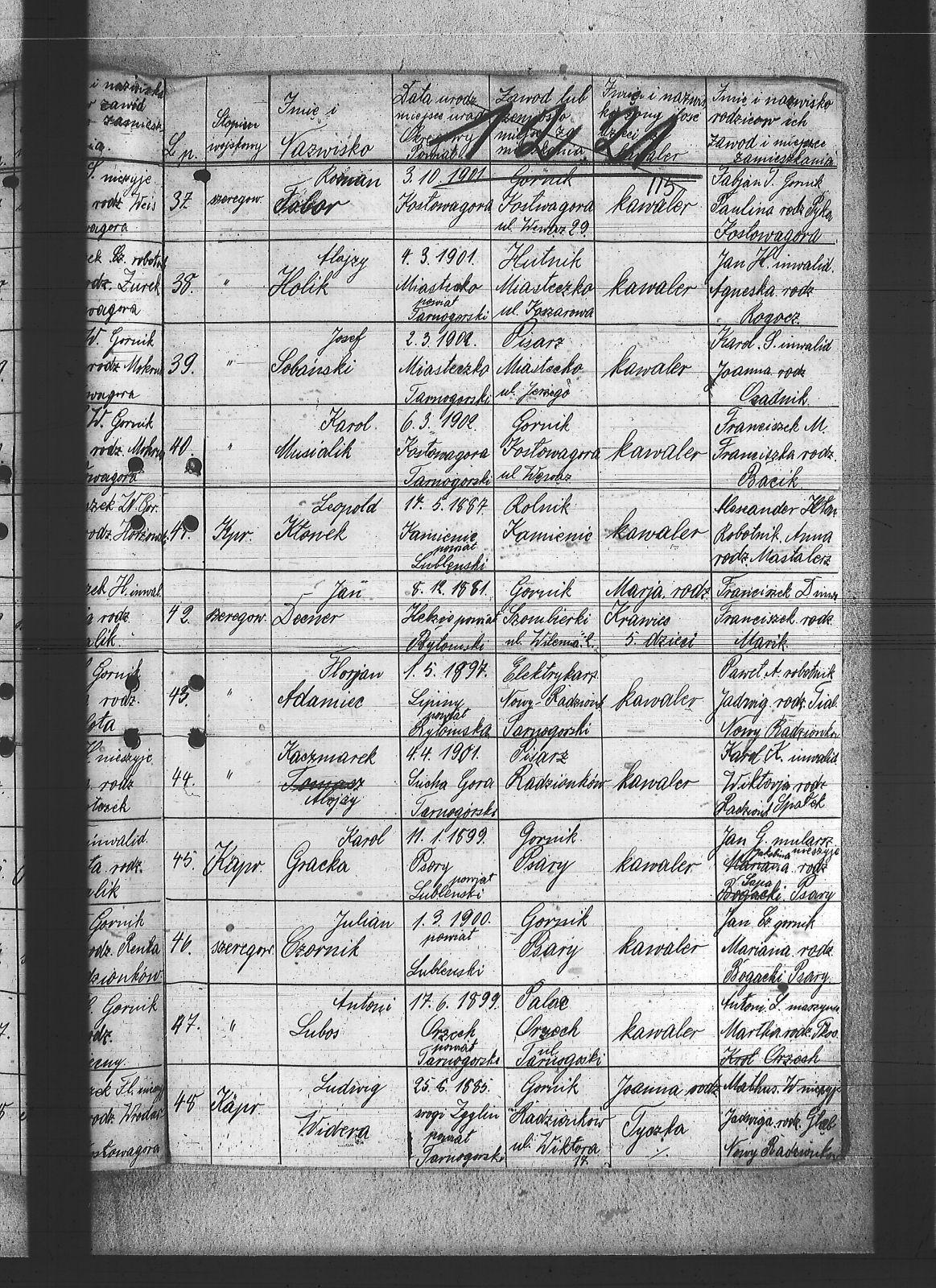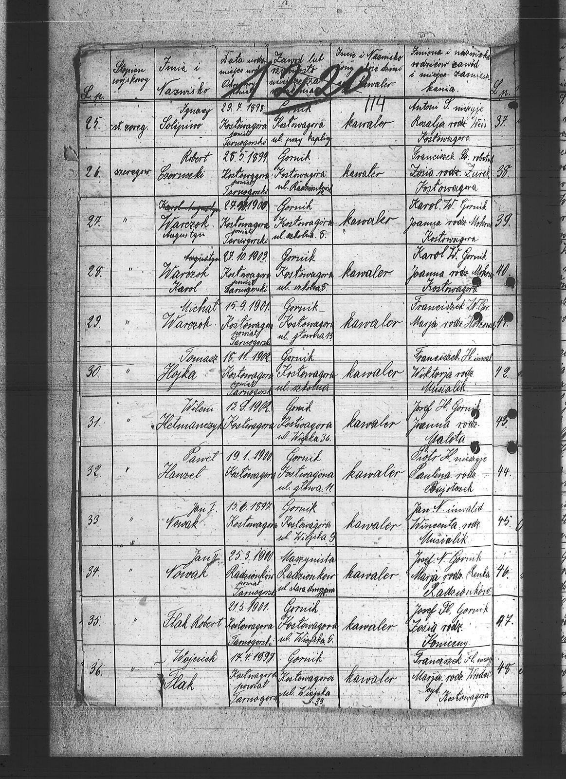 Adamiec, Florian; Bąk, Edmund; Cichy, Robert; Czornecki, Robert; Decner, Jan; Dzionsko, Jan; Flak, Paweł; Flak, Robert; Flak, Szczepan; Flak, Wojciech; Gaweł, Jan; Gaweł, Ludwig; Gracka, Karol; Gzornik, Julian; Hanzel, Ignacy; Hanzel, Paweł; Hetmańczyk, Wilem; Hojka, Tomasz; Holik, Alojzy; Kaczmarek, Alojzy; Kłonek, Leopold; Koronowski, Alojzy; Kowalik, Antoni; Krupa, Augustyn; Krzykowski, Florian; Kyras, Piotr; Labus, Ryszard; Larysz, Walter; Lesiok, Jerzy; Lubos, Antoni; Matejczyk, Paweł; Matejczyk, Wilem; Miczka, Paweł; Musialik, Karol; Nowak, Jan I; Nowak, Jan II; Nowak, Piotr; Nowak, Robert; Ogierman, Bernard; Paliga, Franciszek; Paton, Piotr; Renka, Piotr; Sobański, Józef; Solipiwo, Igancy; Suszek, Tomasz; Szewczyk, Józef; Tabor, Roman; Urbańczyk, Piotr; Warczok, Augustyn; Warczok, Karol; Warczok, Michał; Widera, Ludwig; Wosnica, Jan; Wostal, Paweł; Wyzgot, Józef; Zając, Wojciech; Zejer, Jan; |