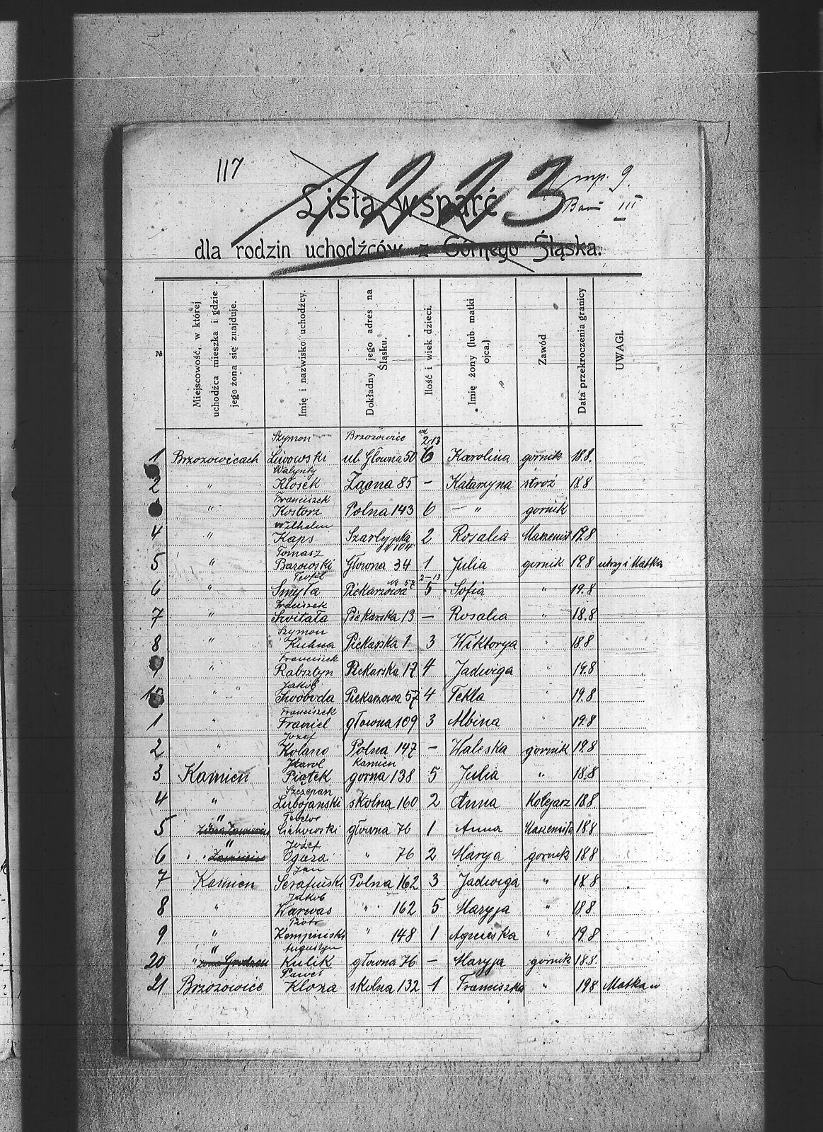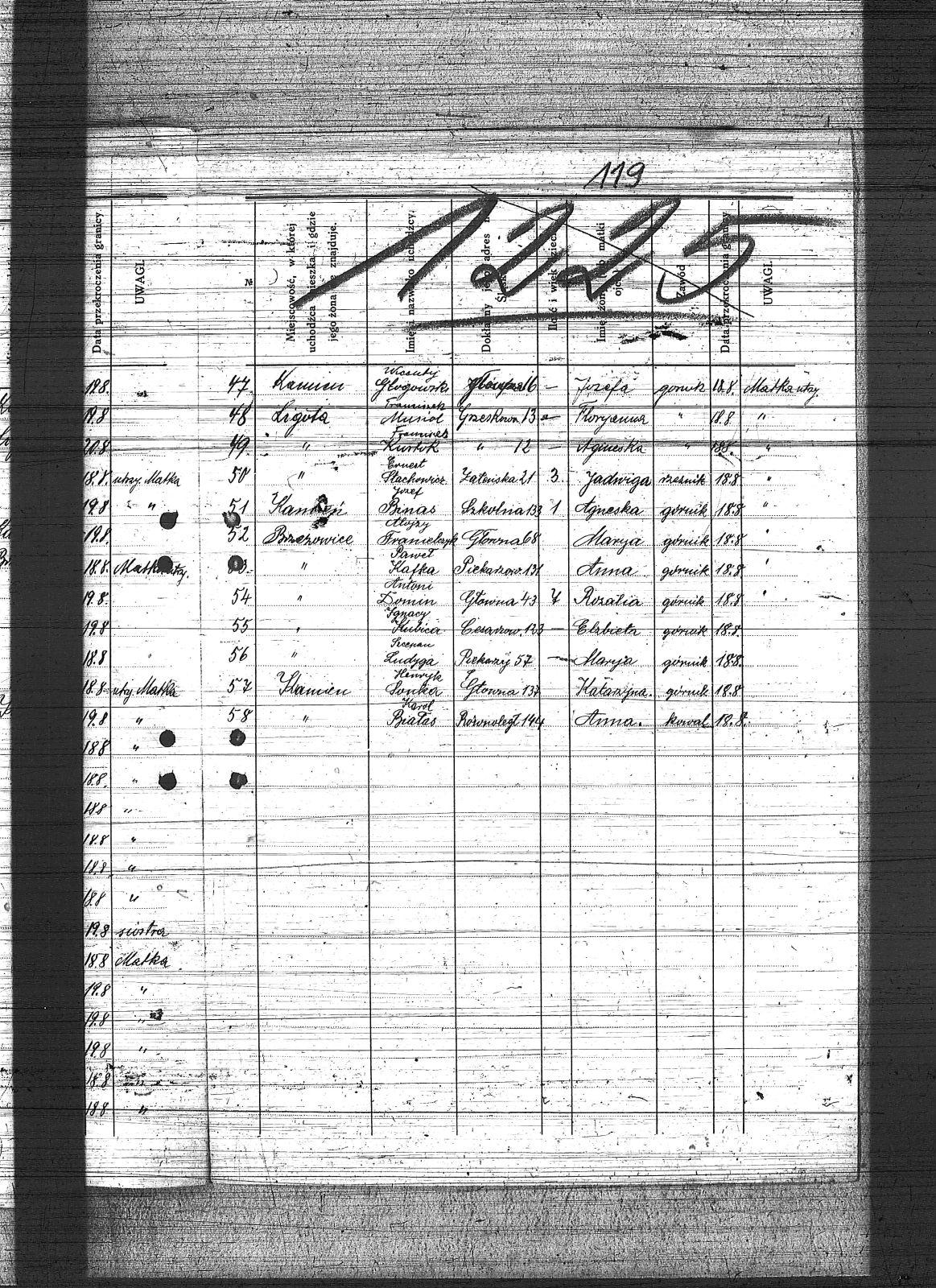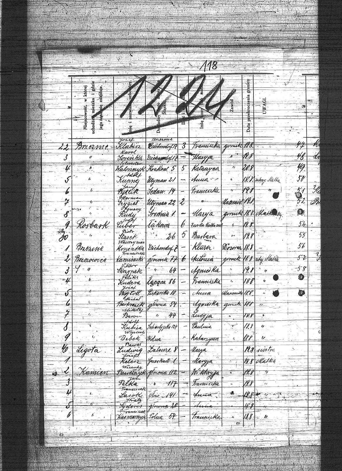 Baron, Mikołaj; Bartorozik, Michał; Bazowski, Tomasz; Bebek, Wojciech; Białas, Karol; Binas, Józef; Cichowski, Teodor; Cuber, Józef; Domin, Antoni; Franiel, Franciszek; Franielczyk, Alojzy; Glogowski, Wincenty; Kaczmarczyk, Franciszek; Kafka, Paweł; Kaps, Wilem; Karmienski, Franciszek; Kelesz, Józef; Klabisz, Józef; Kloza, Paweł; Kłosek, Walenty; Kolano, Józef; Kompiński, Piotr; Kostorz, Franciszek; Koszentka, Wawrzyniec; Kubica, Adolf; Kubica, Ignacy; Kudera, Feliks; Kuhna, Szymon; Kulik, Augustyn; Kupnej, Adolf; Kurtok, Franciszek; Lasok, Franciszek; Liwowski, Szymon; Lubojański, Szczepan; Ludwig, Paweł; Ludyga, Sczepan; Musiol, Franciszek; Ogaza, Józef; Pawełczyk, Wincenty; Pelka, Jan; Piątek, Karol; Pytlik, Jan; Rabsztyn, Franciszek; Rudy, Ignacy; Scygieł, Herman; Serafiński, Jan; Skrzypek, Wiktor; Smyła, Teofil; Sonka, Henryk; Sosinka, Karol; Stachowicz, Ernest; Stasek, Piotr; Swoboda, Jakub; Syderes, Straty; Świtała, Franciszek; Waloszczyk, Sylwester; Warwas, Jakub; Wójtol, Józef; |