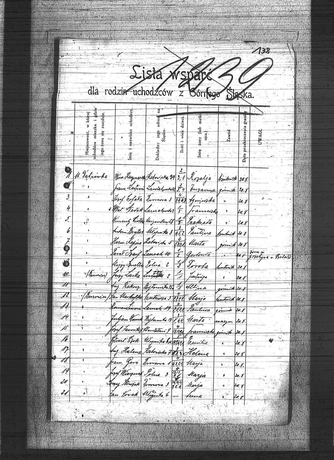 Bąk, Henryk; Brylus, Antoni; Buchcik, Ludwik; Ciołka, Wincenty; Ciszek, Emil; Cofała, Józef; Czok, Gerard; Drobiec, Tomasz; Fiedberg, Hugo; Fosz, Edward; Gerc, Franciszek; Halena, August; Irczek, Ludwik; Jaworski, Józef; Kaczmarek, Wincenty; Kapica, Herman; Kneć, Paweł; Koczuba, Florjan; Kontny, Teofil; Krenzel, Jan; Kudla, Alojzy; Laska, Jerzy; Ledwoń, Franciszek; Lipski, Leopold; Łukaszek, Leopold; Markefka, Jan; Maślorz, Karol; Nowak, Jan; Nowak, Stanisław; Parkieła, Alojzy; Piekarski, Paweł; Rakocz, August; Rembalski, Jan; Rzepus; Sieroń, Edward; Sieroń, Roman; Sładek, Władysław; Strużek, Jerzy; Szarf, Paweł; Szeliga, Kleofas; Szydrzyski; Walytek, Jerzy; Waniec, Franciszek; Wieczorek, Józef; Wilczek, Edward; Wnuk, Julian; |