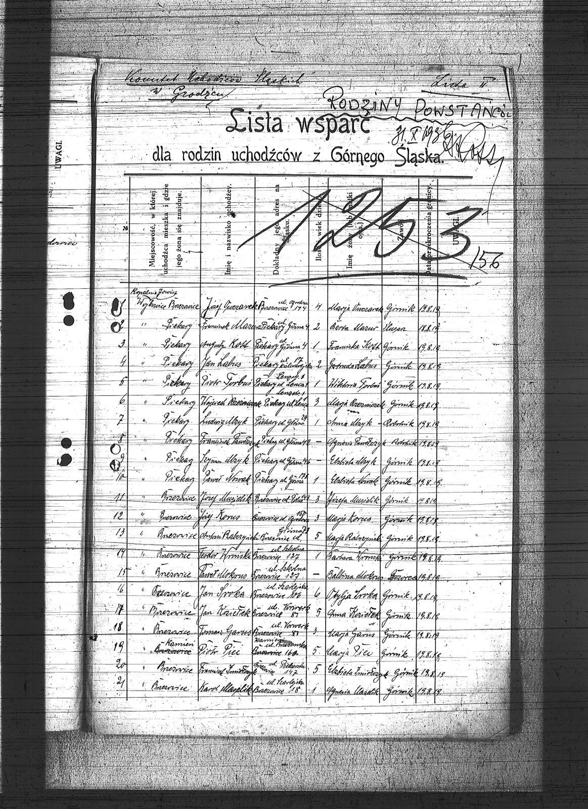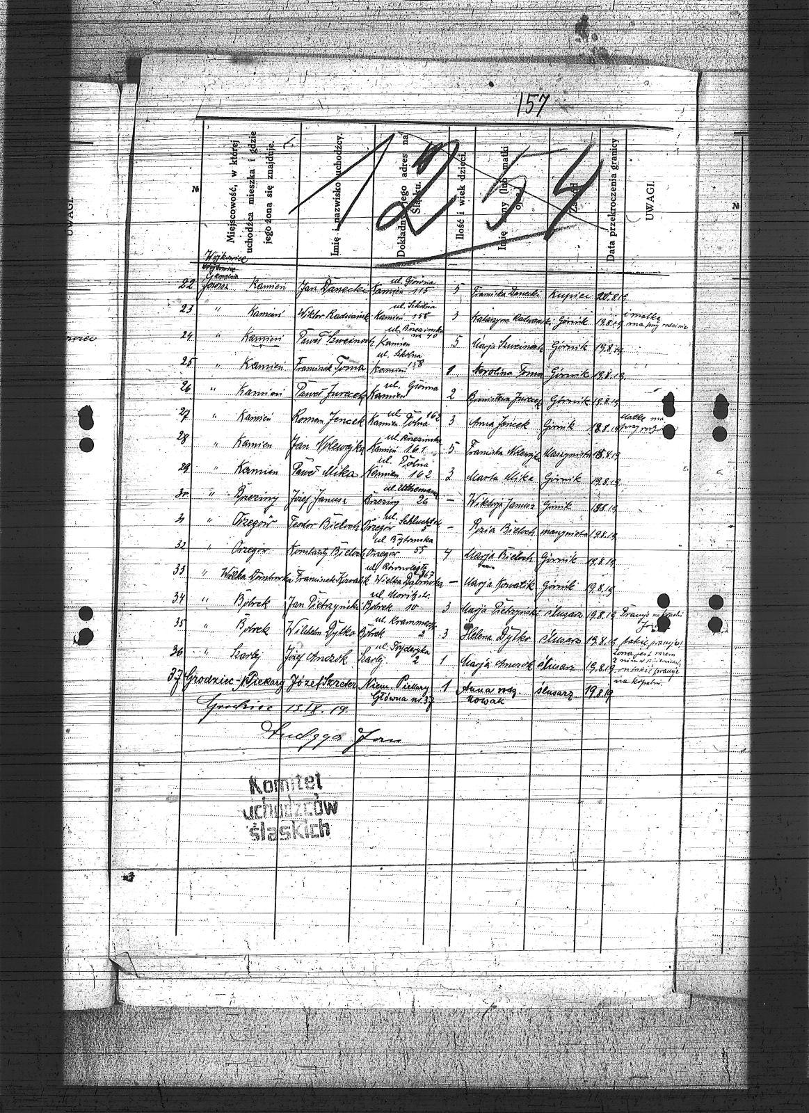 Anczok, Józef; Bieloch, Konstanty; Bieloch, Teodor; Danecki, Jan; Dytko, Wilhelm; Forbuś, Piotr; Garus, Tomasz; Imiołczyk, Franciszek; Janusz, Józef; Jencek, Roman; Jurecek, Paweł; Korus, Józef; Kott, Augustyn; Kowalik, Franciszek; Koziełek, Jan; Labus, Jan; Maselik, Karol; Mazur, Franciszek; Mika, Paweł; Mokrus, Paweł; Musialik, Józef; Mzyk, Szymon; Mżyk, Ludwik; Nolewajka, Jan; Nowak, Paweł; Owczarek, Józef; Pawełczyk, Franciszek; Piec, Piotr; Pietrzyński, Jan; Rabczyński, Antoni; Radwański, Wiktor; Rzeźniczek, Wojciech; Sroka, Jan; Szreter, Józef; Szweinoch, Paweł; Toma, Franciszek; Wroński, Teodor; |