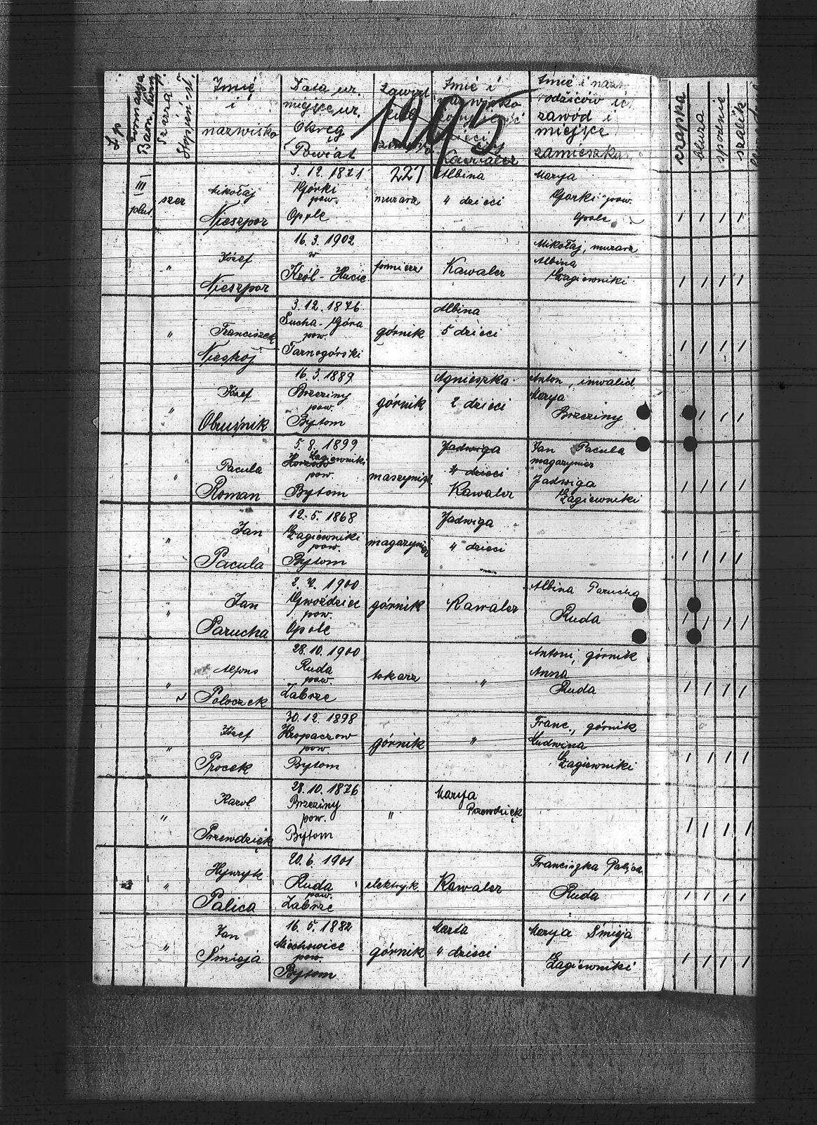 Hajduga, Ludwik; Jędrysek, Adolf; Korus, Jan; Kotyś, August; Krystanek, Ignacy; Langer, Paweł; Langer, Teodor I; Langer, Teodor II; Lepel, Walenty; Maj, Teodor; Matera, Józef; Morawiec, Jan; Moś, Emanuel; Moś, Teofil; Mróz, Józef; Niestroj, Franciszek; Nieszpor, Józef; Nieszpor, Mikołaj; Obruśnik, Józef; Pacula, Jan; Pacula, Roman; Palica, Henryk; Parucha, Jan; Poloczek, Alfons; Procek, Józef; Przewdzięk, Karol; Rak, Teofil; Sopala, Wincenty; Stania, Jósef; Straszydło, Józef; Szędzielorz, Jan; Szkalec, Tomasz; Szweda, Jan; Śmieja, Jan; Świętek, Franciszek; Warzecha, Antoni; Warzecha, Paweł; Wesoły, Antoni; Wojtala, Józef; Wolny, Sylwester; |