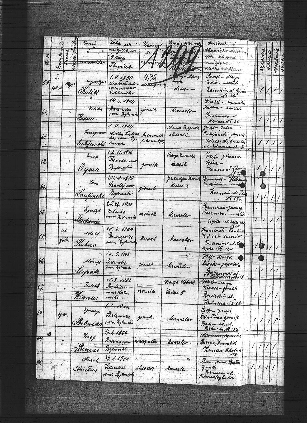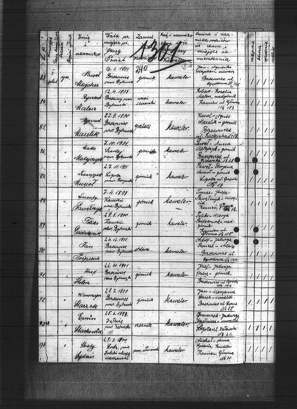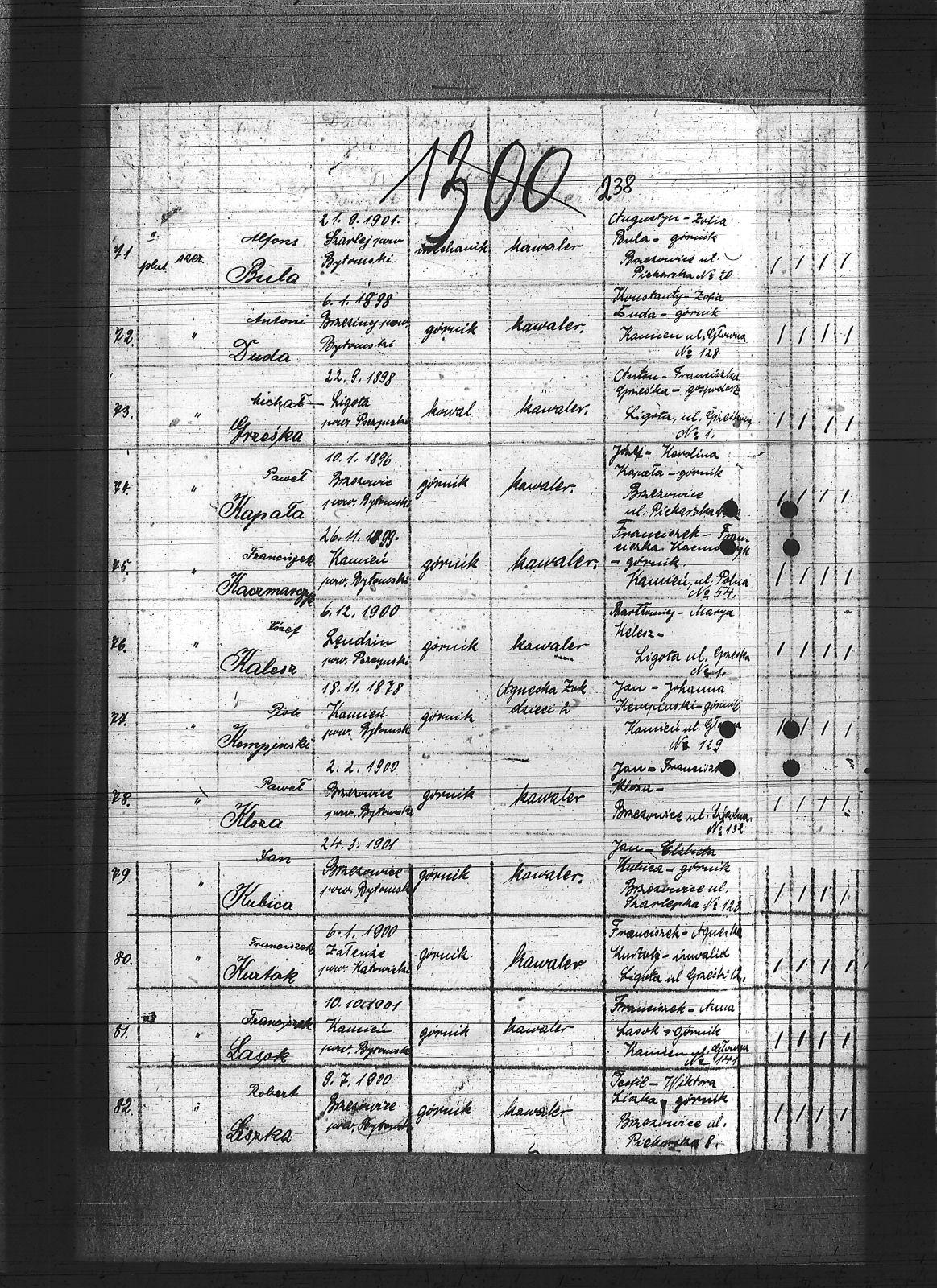 Barowski, Tomasz; Białas, Karol; Binias, Józef; Bobiolka, Ignacy; Bula, Alfons; Cichowski, Teodor; Cichy, Antoni; Duda, Antoni; Głogowski, Wincenty; Grześka, Michał; Kaczmarczyk, Franciszek; Kalesz, Józef; Kapała, Paweł; Kaps, Wilhelm; Kempiński, Piotr; Kloza, Paweł; Kłosek, Walenty; Koczur, Paweł; Kubica, Adolf; Kubica, Jan; Kubica, Roman; Kudera, Feliks; Kulik, Augustyn; Kurtok, Franciszek; Kwieciński, Ludwik; Lapok, Alojzy; Lasok, Franciszek; Liszka, Robert; Liwowski, Szymon; Lubiański, Szczepan; Ludyga, Szczepan; Majcher, Paweł; Malesz, Ryszard; Maselik, Ryszard; Matejczyk, Maksymilian; Musioł, Franciszek; Ogara, Józef; Pawełczyk, Wincenty; Październik, Feliks; Piątek, Karol; Pośpiech, Jan; Serafiński, Jan; Stachowic, Ernest; Stachowicz, Erwin; Starzek, Wawrzyn; Stolorz, Józef; Syderis, Straty; Szwajnoch, Paweł; Szyja, Bernard; Walaszek, Piotr; Waloszczyk, Joachim; Waloszczyk, Stanisław; Warwas, Jakub; Wojcik, Szczepan; Wyleżałek, Józef; |