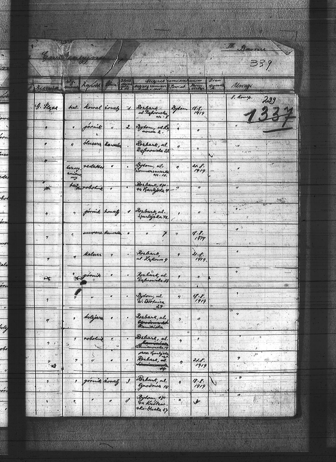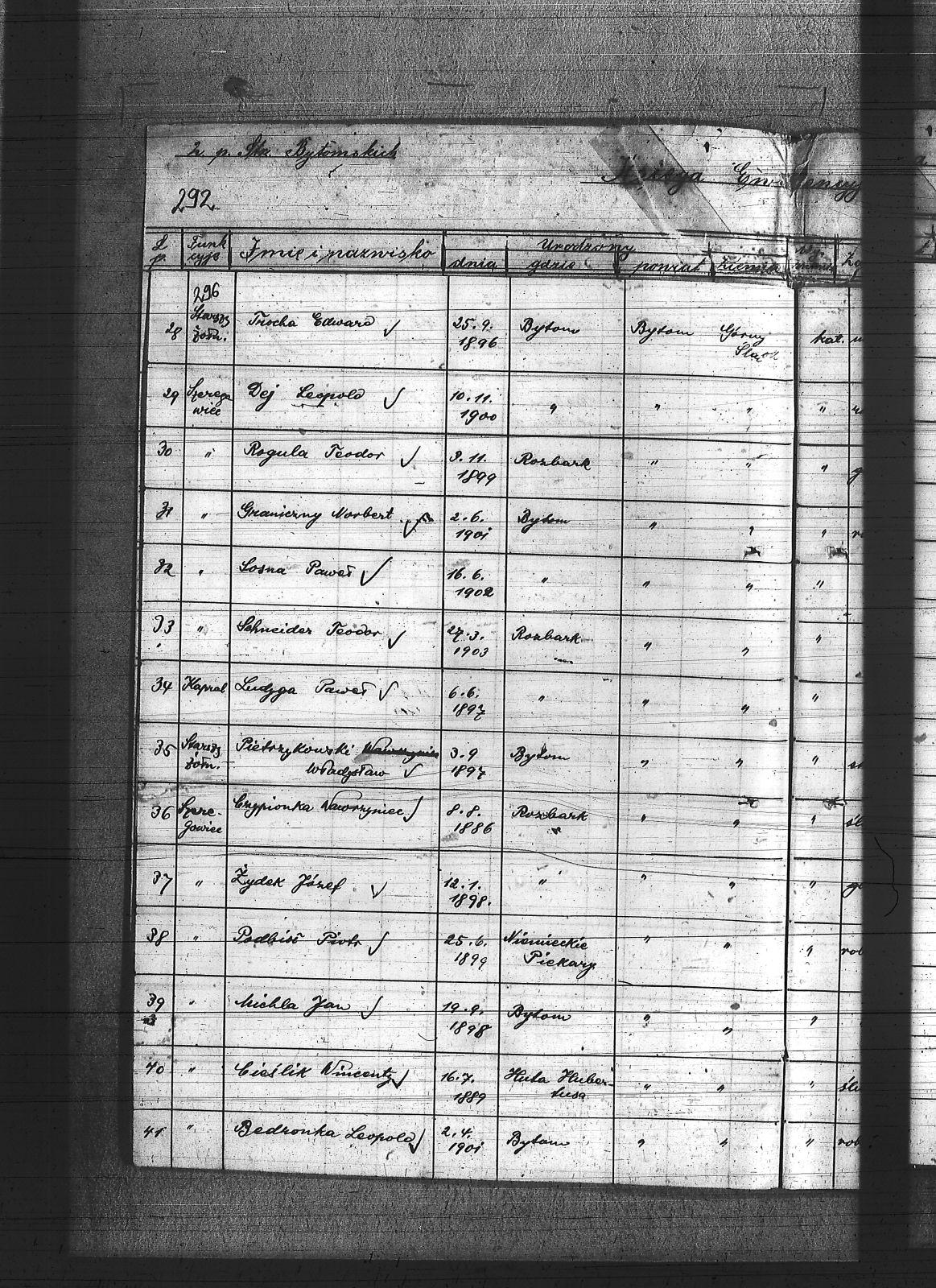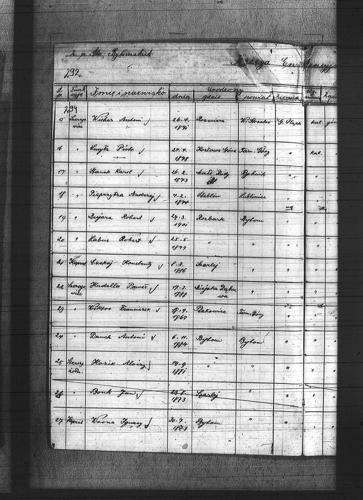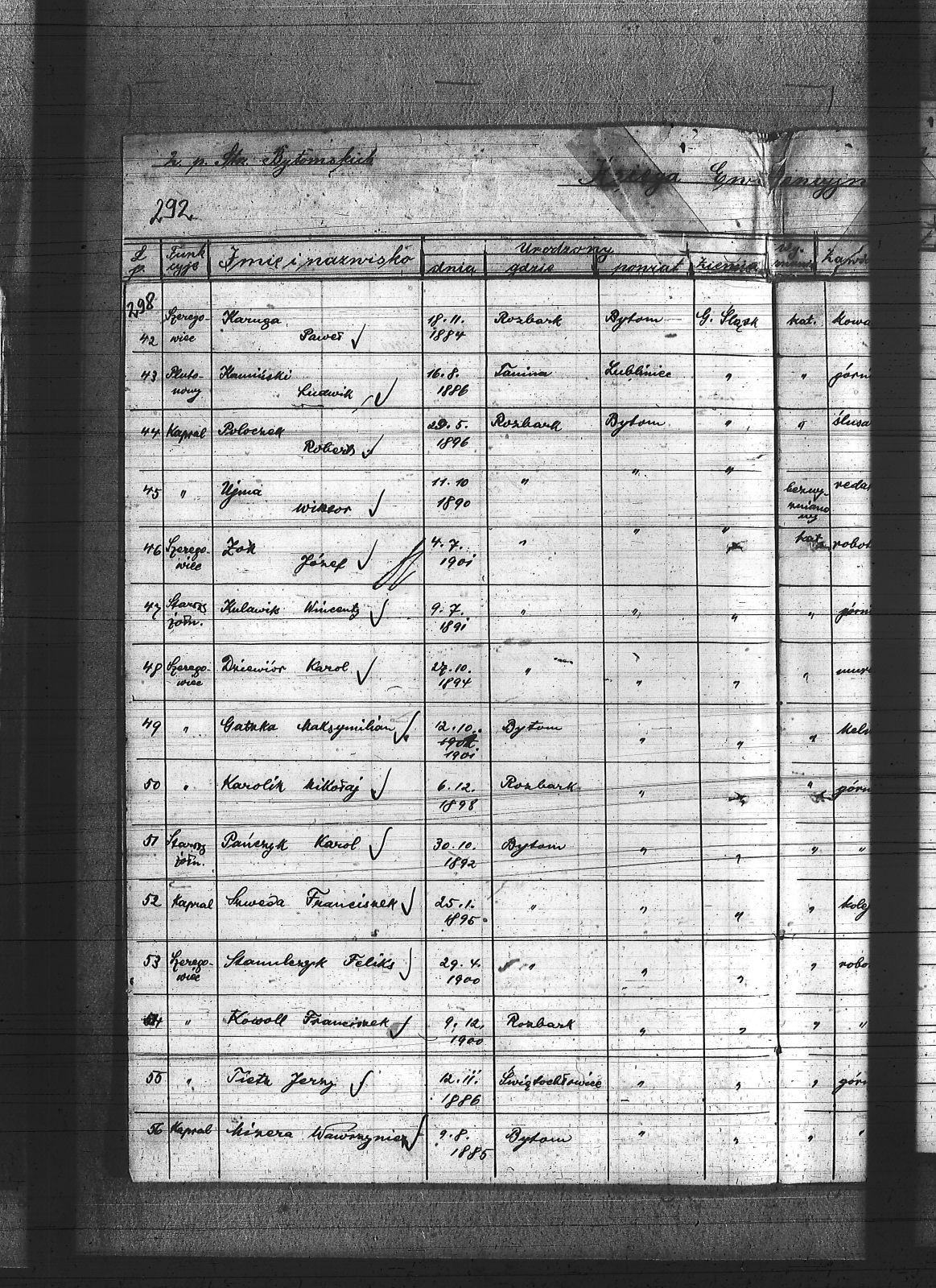 Anioł, Roman; Bedronka, Leopold; Bereska, Jan; Białas, Franciszek; Bonk, Jan; Bonzol, Franciszek; Borniak, Julian; Bujara, Robert; Charzewski, Czesław; Cieślik, Wincenty; Czaja, Wiktor; Czekaj, Konstanty; Czypionka, Wawrzyniec; Dej, Leopold; Drabczyk; Druch, Antoni; Dziewiór, Karol; Fitzek, Karol; Gatzka, Maksymilian; Gawenda, Franciszek; Görlitz, Jakub; Graniczny, Norbert; Grzyb, Franciszek; Gwóźdź, Konrad; Kamiński, Ludwik; Karolik, Mikołaj; Karuga, Franciszek; Karuga, Paweł; Kempa, Antoni; Koczur, Paweł; Kowoll, Franciszek; Koza, Piotr; Kozik, Alojzy; Kozik, Błażej; Krasny, Józef; Kudella, Paweł; Kulawik, Jan I; Kulawik, Jan II; Kulawik, Wincenty; Labus, Robert; Lortz, Jan; Ludyga, Paweł; Lukoszek, Franciszek; Luksa, Jan; Łukaszczyk, Józef; Łukaszczyk, Paweł; Łukawski, Jan; Maksysa, Piotr; Marzec, Franciszek; Marzec, Jan II; Matura, Jan; Michla, Jan; Mizera, Wawrzyniec; Nowara, Wincenty; Pańczyk, Karol; Piekarz, Wojciech; Pieprzytza, Andrzej; Pietrzykowski, Władysław; Pilarski, Ignacy; Pilarski, Juliusz; Podbioł, Piotr; Polla, Franciszek; Poloczek, Robert; Popczyk, Franciszek; Pytloch, Wincent; Rogula, Teodor; Rzeźniczek, Ludwik; Rzeźniczek, Michał; Sadowski, Paweł; Schneider, Teodor; Siwy, Emanuel; Siwy, Jan; Skotarski, Maciej; Skowronek, Emanuel; Smyła, Piotr; Sobota, Franciszek; Sosna, Paweł; Sponda, Augustyn; Stanek, Karol; Stanulczyk, Feliks; Starościk, Alojzy; Strózik, Jan; Strzelczyk, Jan; Strzelecki, Bolesław; Szczygioł, Paweł; Szewczyk, Teodor; Szklanny, Karol; Szweda, Franciszek; Szygulski, Paweł; Tietz, Jerzy; Tomalka, Bernard; Trocha, Edward; Tyraś, Teodor; Ujma, Wiktor; Wacławek, Teofil; Wicher, Antoni; Wicher, Paweł; Widera; Widera, Edmund; Wiktor, Franciszek; Wiza, Wincenty; Wrona, Ignacy; Żok, Józef; Żydek, Józef; |