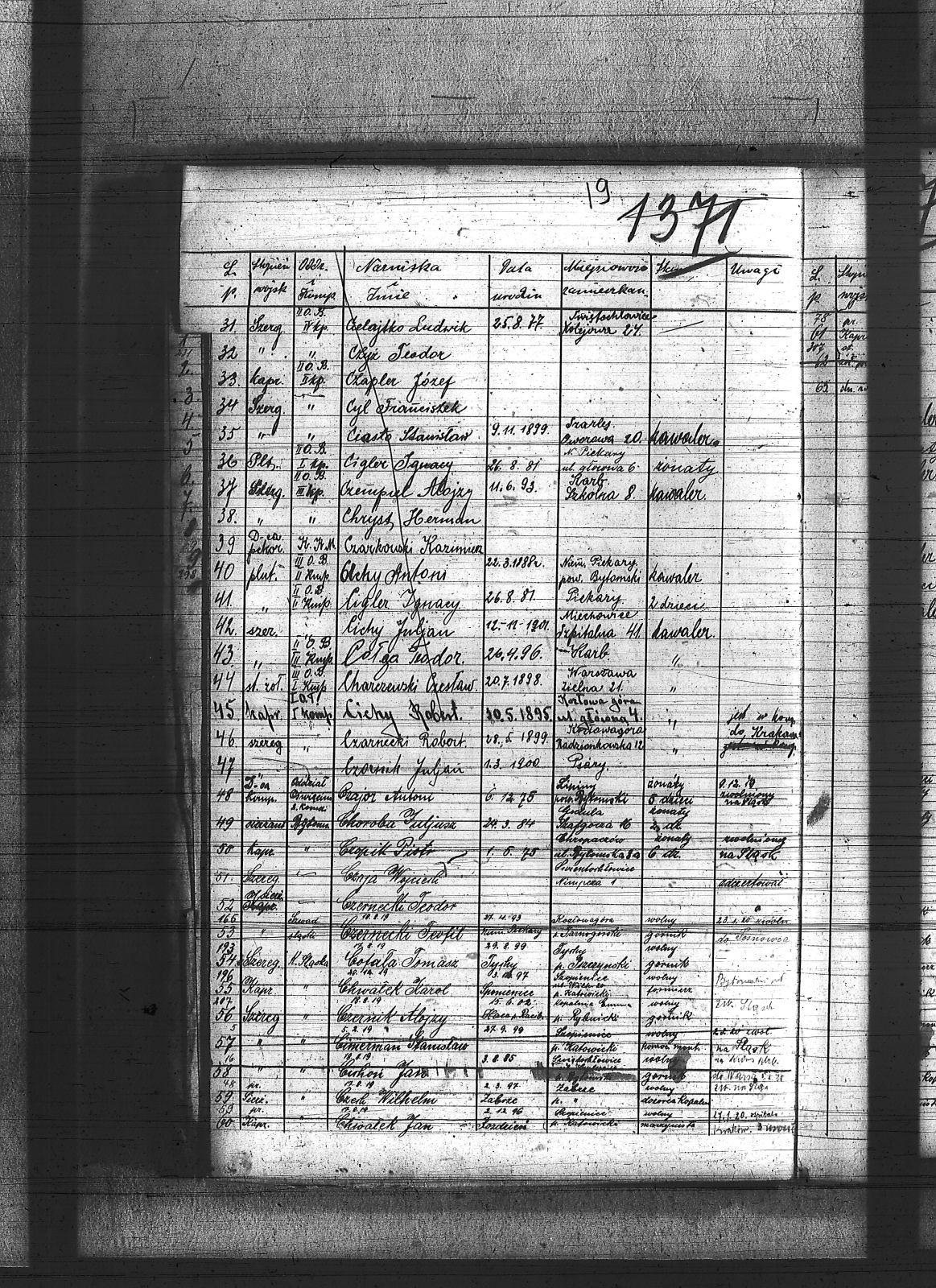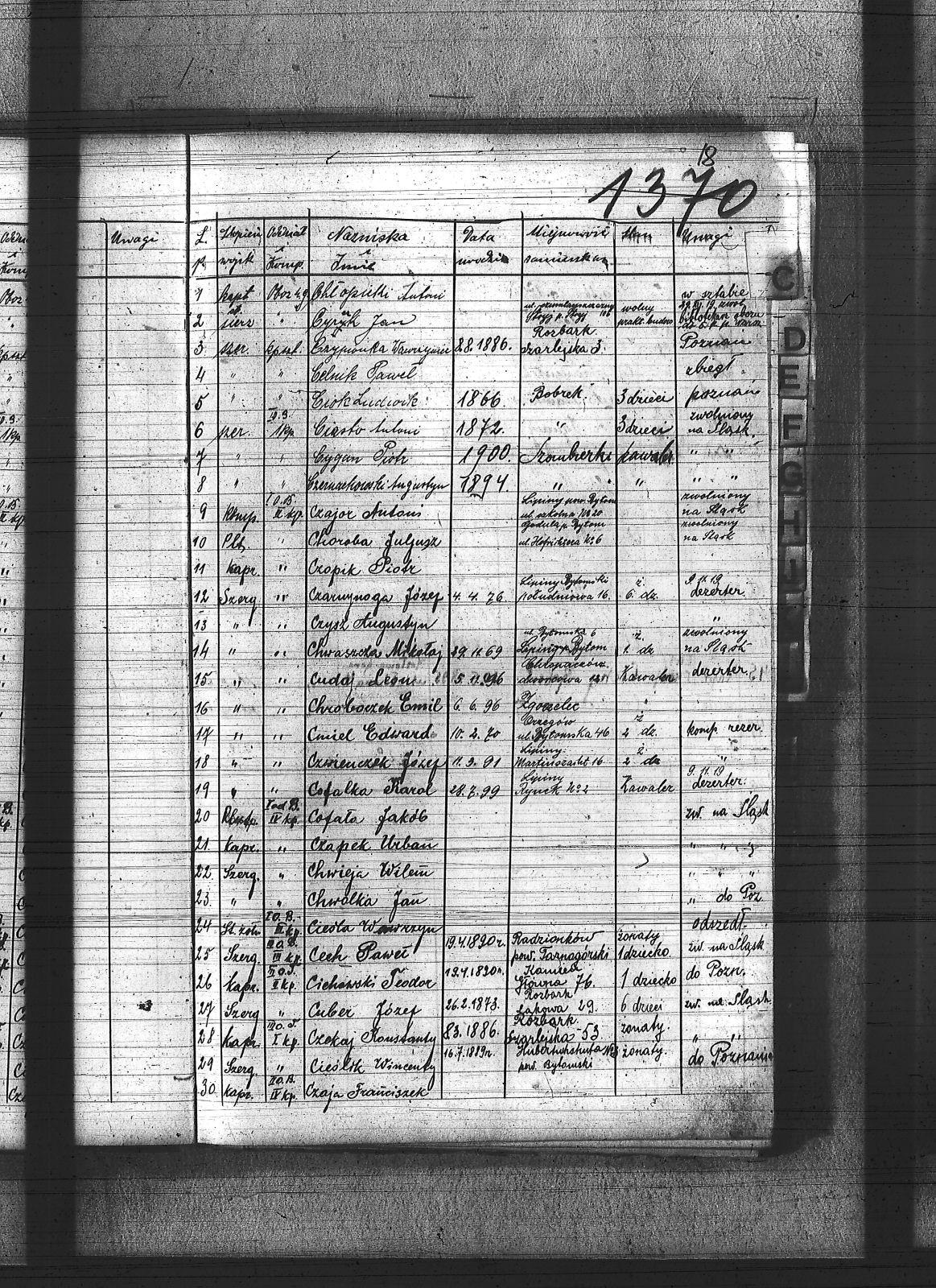 Cech, Paweł; Celnik, Paweł; Chłopicki, Antoni; Choroba, Juliusz; Chroboczek, Emil; Chwałka, Jan; Chwaszcza, Mikołaj; Chwieja, Wilhelm; Ciasto, Antoni; Ciechowski, Teodor; Cieśla, Wawrzyn; Cieślik, Wincenty; Ciok, Ludwik; Cmiel, Edward; Cofalka, Karol; Cofała, Jakub; Cuber, Józef; Cuber, Teodor; Cudaj, Leon; Cygan, Piotr; Czaja, Franciszek; Czajor, Antoni; Czajor, Piotr; Czapek, Urban; Czarnynoga, Józef; Czekaj, Konstanty; Czernochowski, Augustyn; Czopik, Piotr; Czwienczek, Józef; Czypionka, Wawrzyniec; Czysz, Augustyn; Czyżyk, Jan; |
