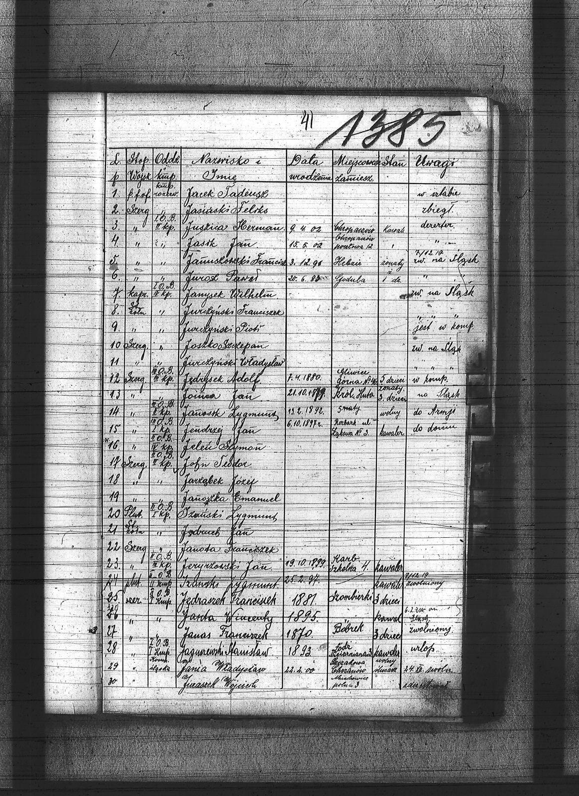 Idec, Józef; Izański, Zygmunt; Jacek, Alojzy; Jacek, Tadeusz; Jaguszewski, Stanisław; Jakubowski, Stefan; Jamroży, Augustyn; Janas, Franciszek; Jania, Franciszek; Jania, Władysław; Janosik, Zygmunt; Janoszka, Emanuel; Janota, Franciszek; Janta, Wincenty; Januszowski, Franciszek; Janysek, Wilhelm; Jańczyk, Paweł; Jarczok, Jan; Jarząbek, Józef; Jarzyna, Otto; Jasik, Jan; Jasiński, Feliks; Jeleń, Szymon; Jendrysik, Franciszek; Jendrzej, Jan; Jeryczowski, Jan; Jędraszek, Franciszek; Jędruch, Jan; Jędrysek, Adolf; John, Teodor; Joinca, Jan; Jordan, Karol; Joszko, Szczepan; Juraszek, Wojciech; Juraszyk, Ernest; Jurczyński, Franciszek; Jurczyński, Piotr; Jurczyński, Władysław; Jurosz, Paweł; Juszica, Herman; |