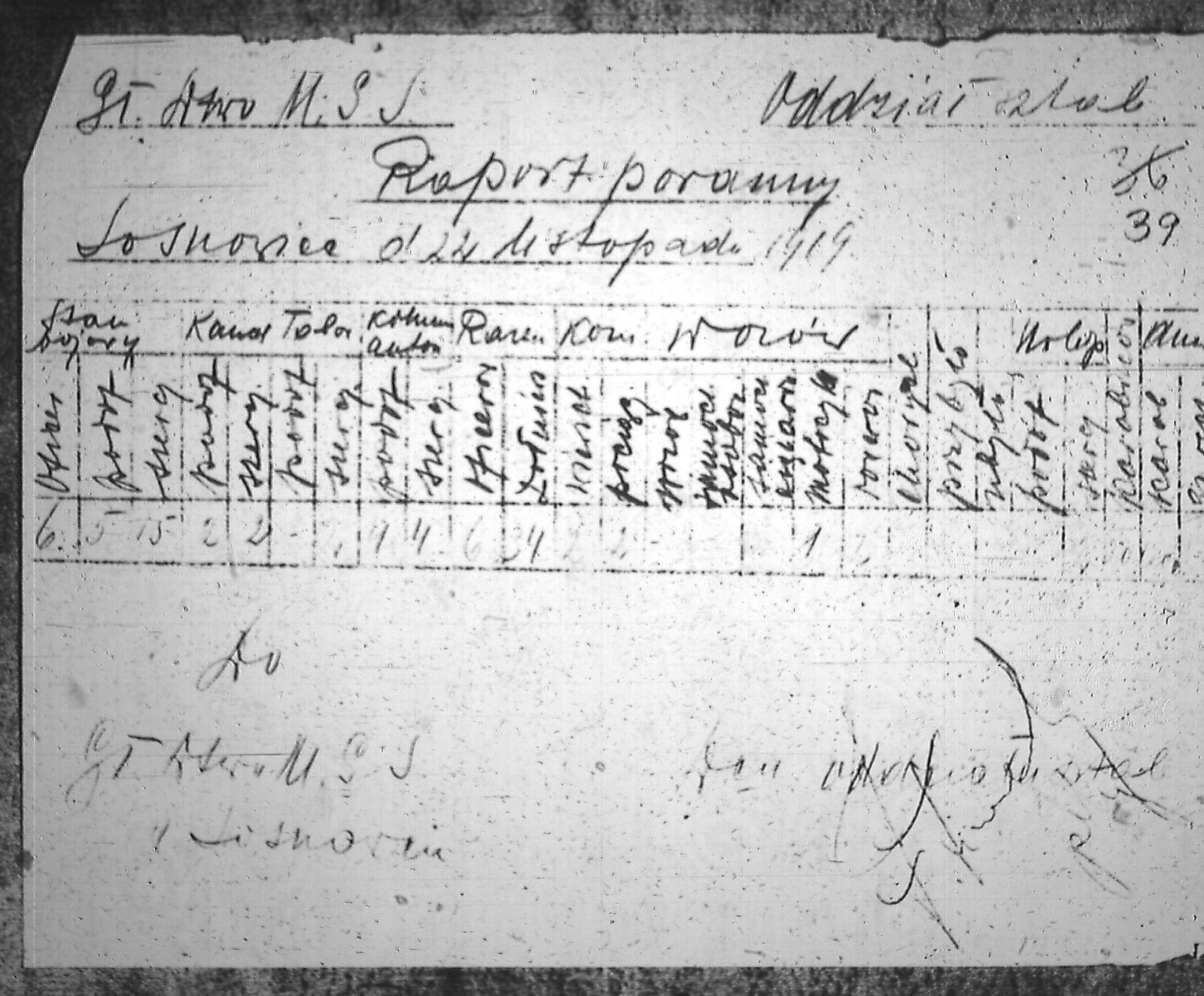 Tytuł Raport poranny dotyczący stanu bojowego, kawalerii, taboru, auto-kolumny, koni, wozów, urlopów