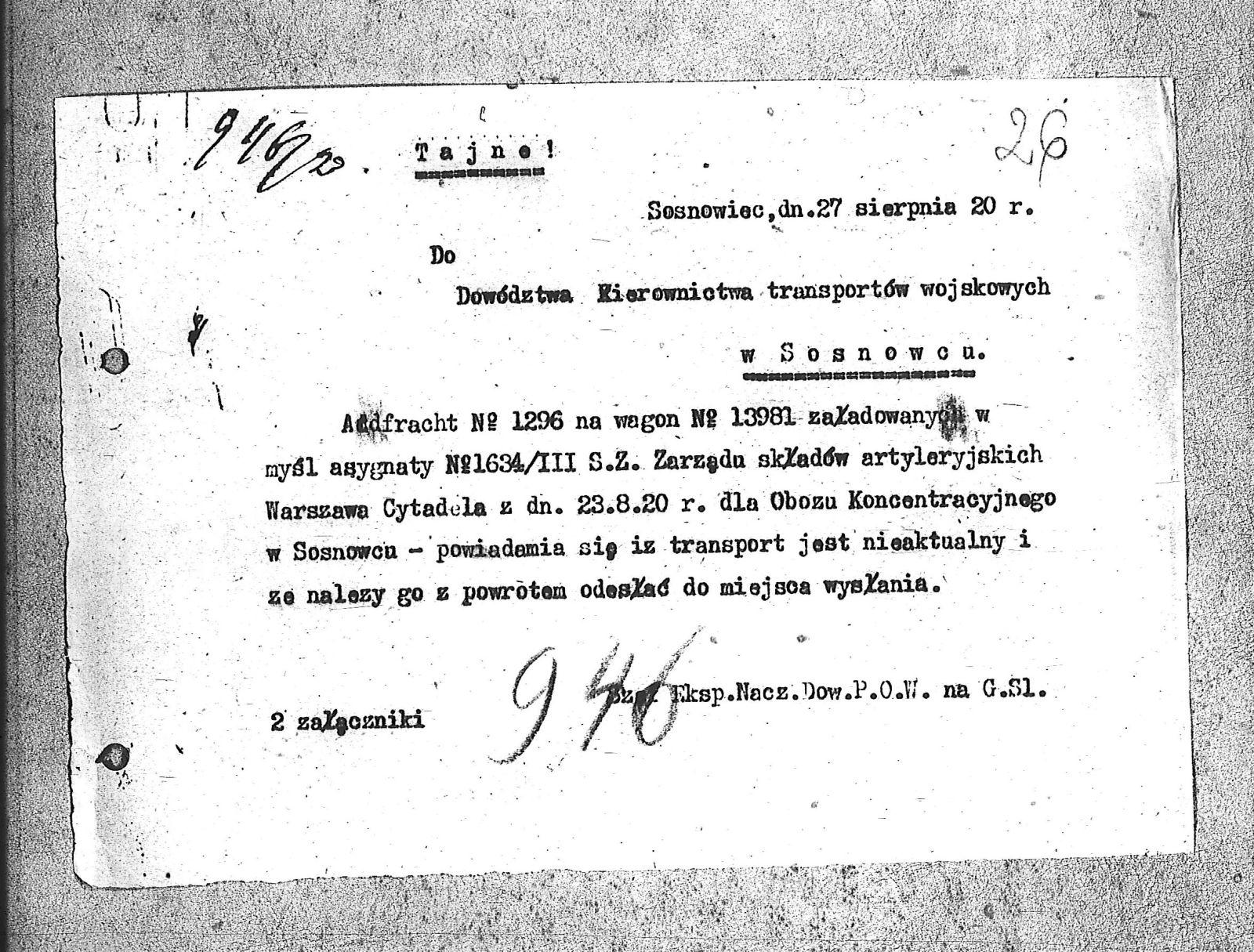 Tytuł Do Dowództwa Kierownictwa Transportów Wojskowych - Tajne.
