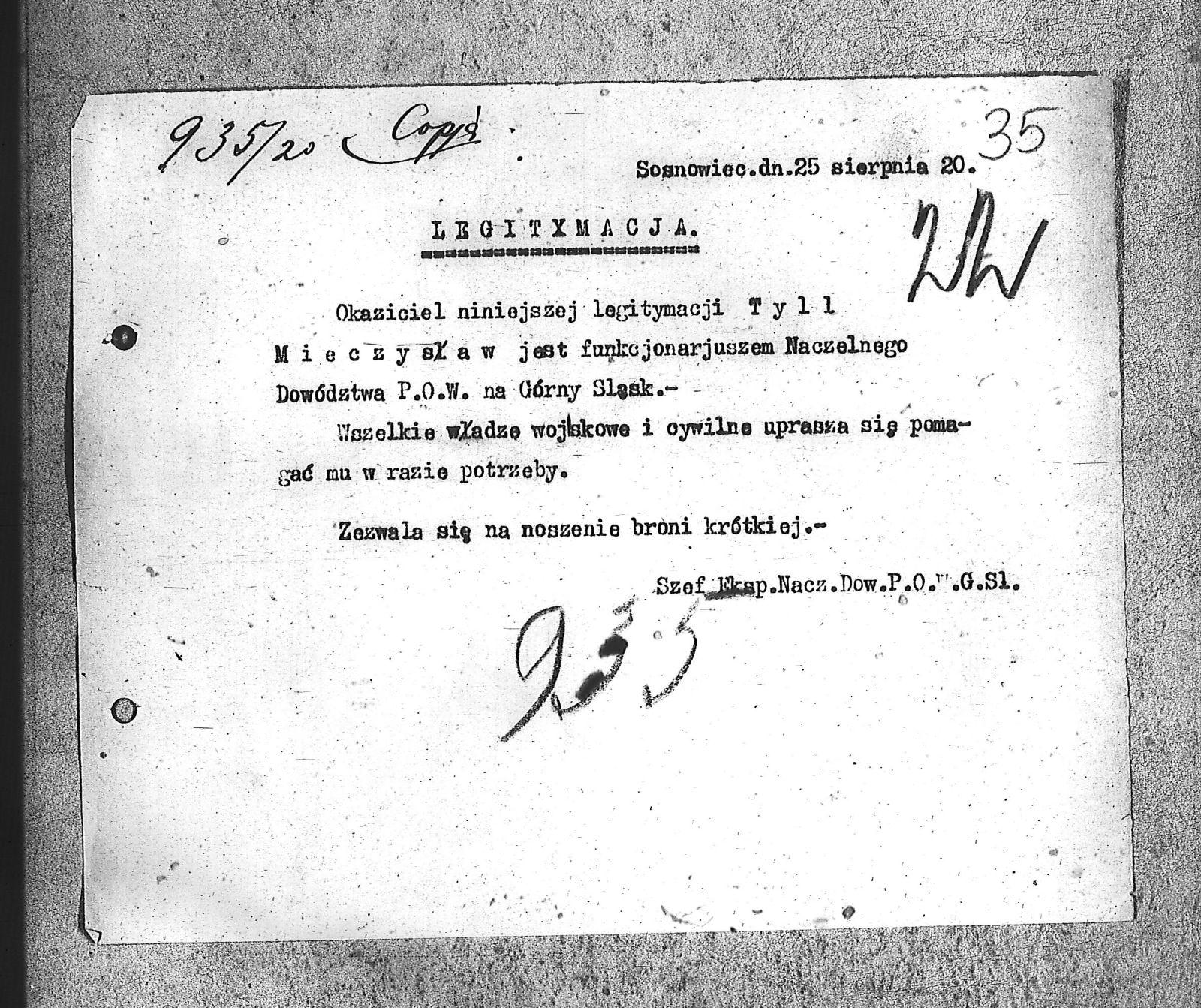 Tytuł teczki[Naczelne Dowództwo POW na Górnym Śląsku - protokoły, korespondencja, legitymacje, przepustki i upoważnienia]