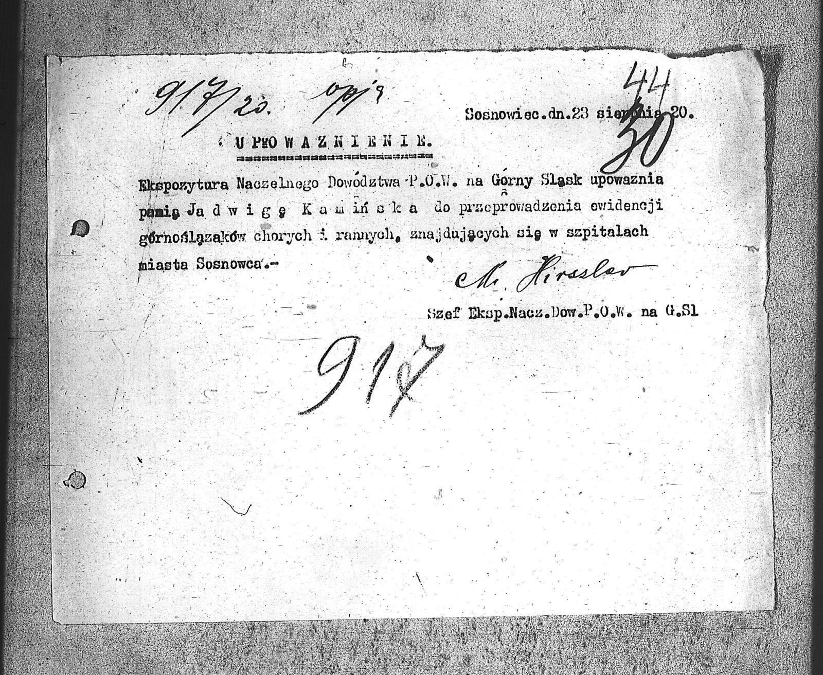 Tytuł teczki[Naczelne Dowództwo POW na Górnym Śląsku - protokoły, korespondencja, legitymacje, przepustki i upoważnienia]