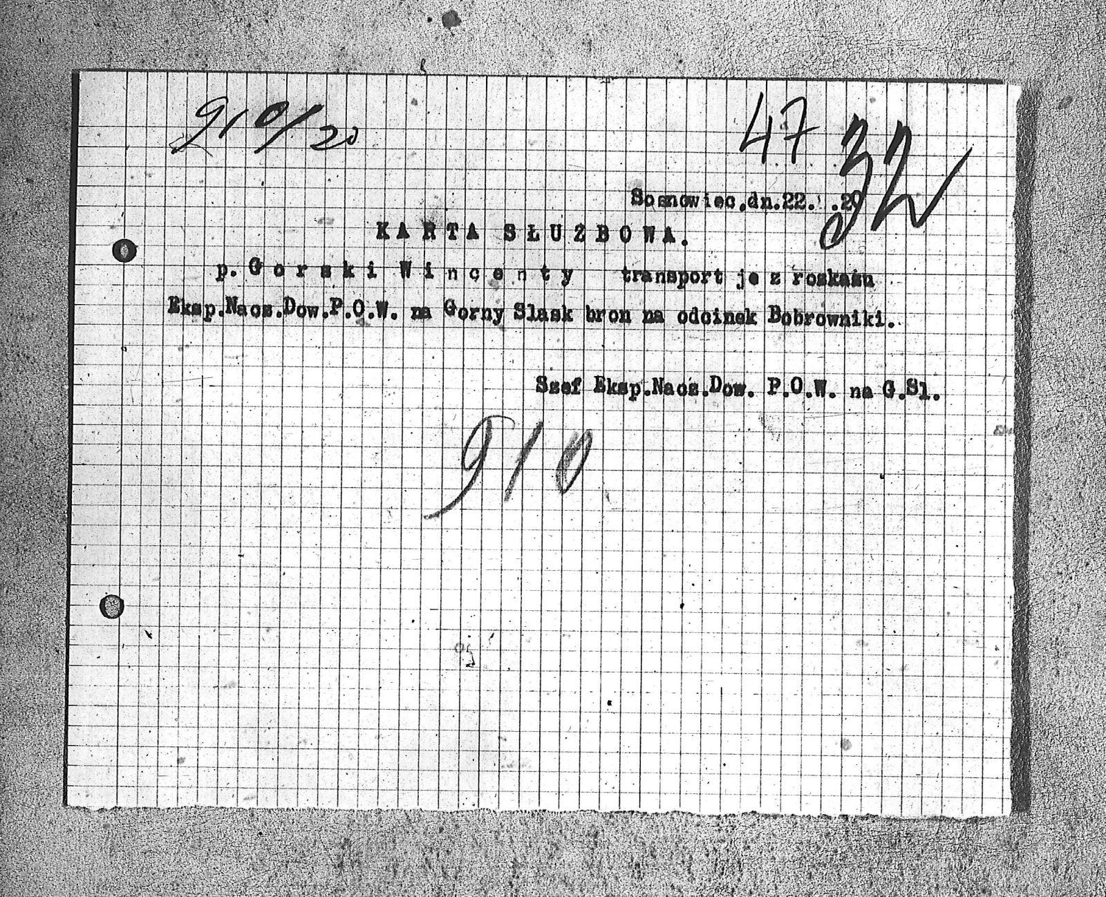 Tytuł teczki[Naczelne Dowództwo POW na Górnym Śląsku - protokoły, korespondencja, legitymacje, przepustki i upoważnienia]
