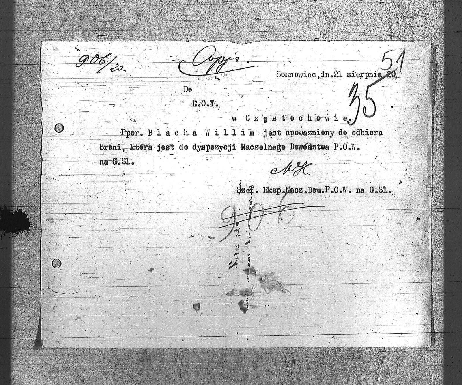 Tytuł teczki[Naczelne Dowództwo POW na Górnym Śląsku - protokoły, korespondencja, legitymacje, przepustki i upoważnienia]