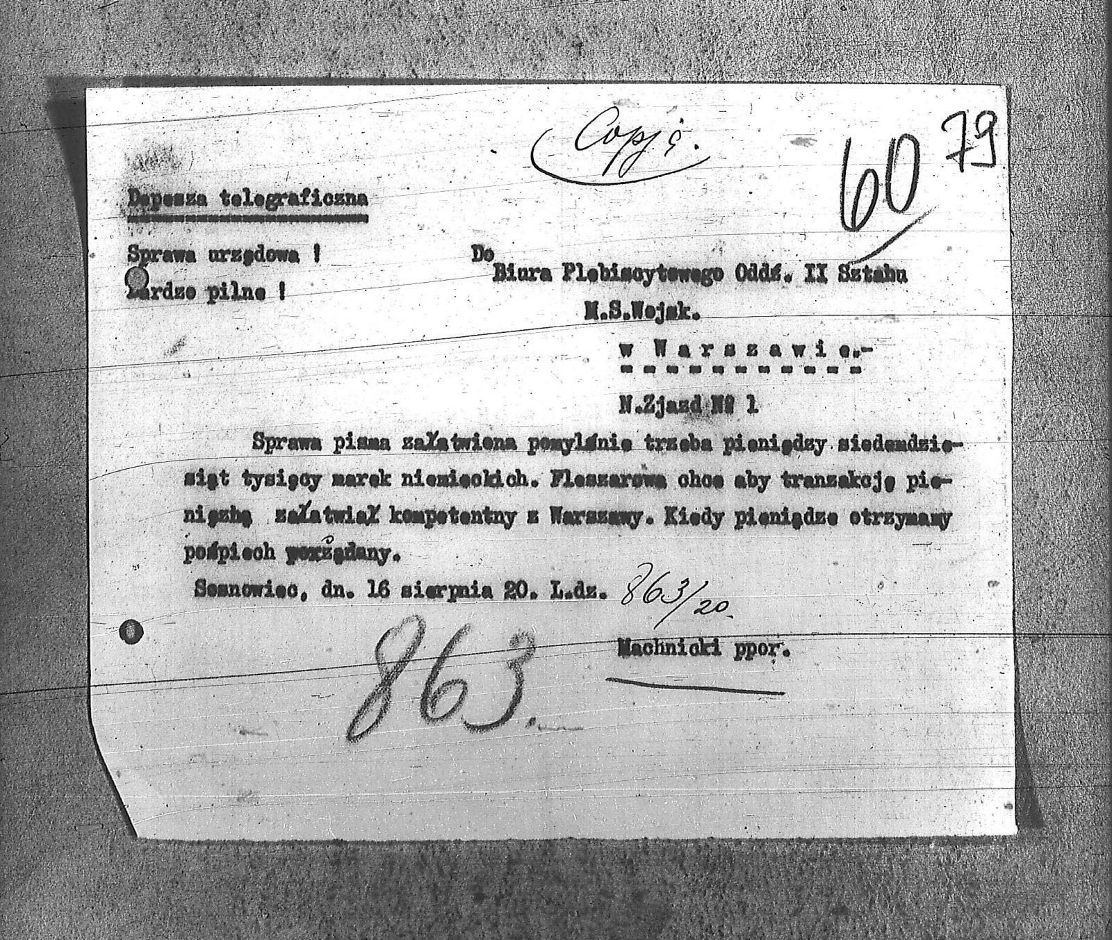 Tytuł Do Biura Plebiscytowego Oddz. II Sztabu Ministerstwa Spraw Wojskowych