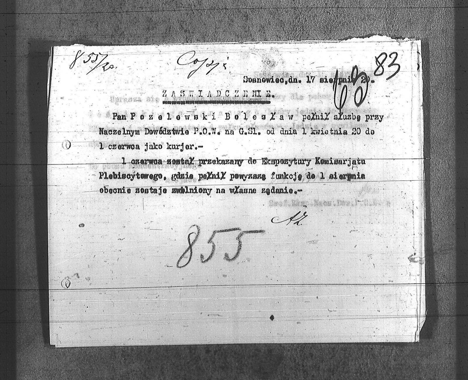 Tytuł teczki[Naczelne Dowództwo POW na Górnym Śląsku - protokoły, korespondencja, legitymacje, przepustki i upoważnienia]