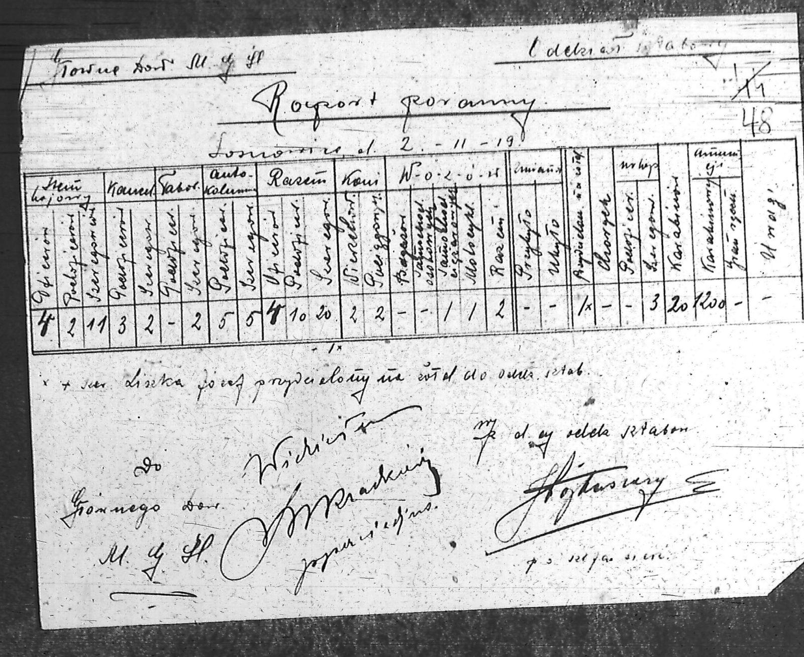 | Tytuł | Raport poranny dotyczący stanu bojowego, kawalerii, taboru, auto-kolumny, koni, wozów, uropów, zmian i amunicji |