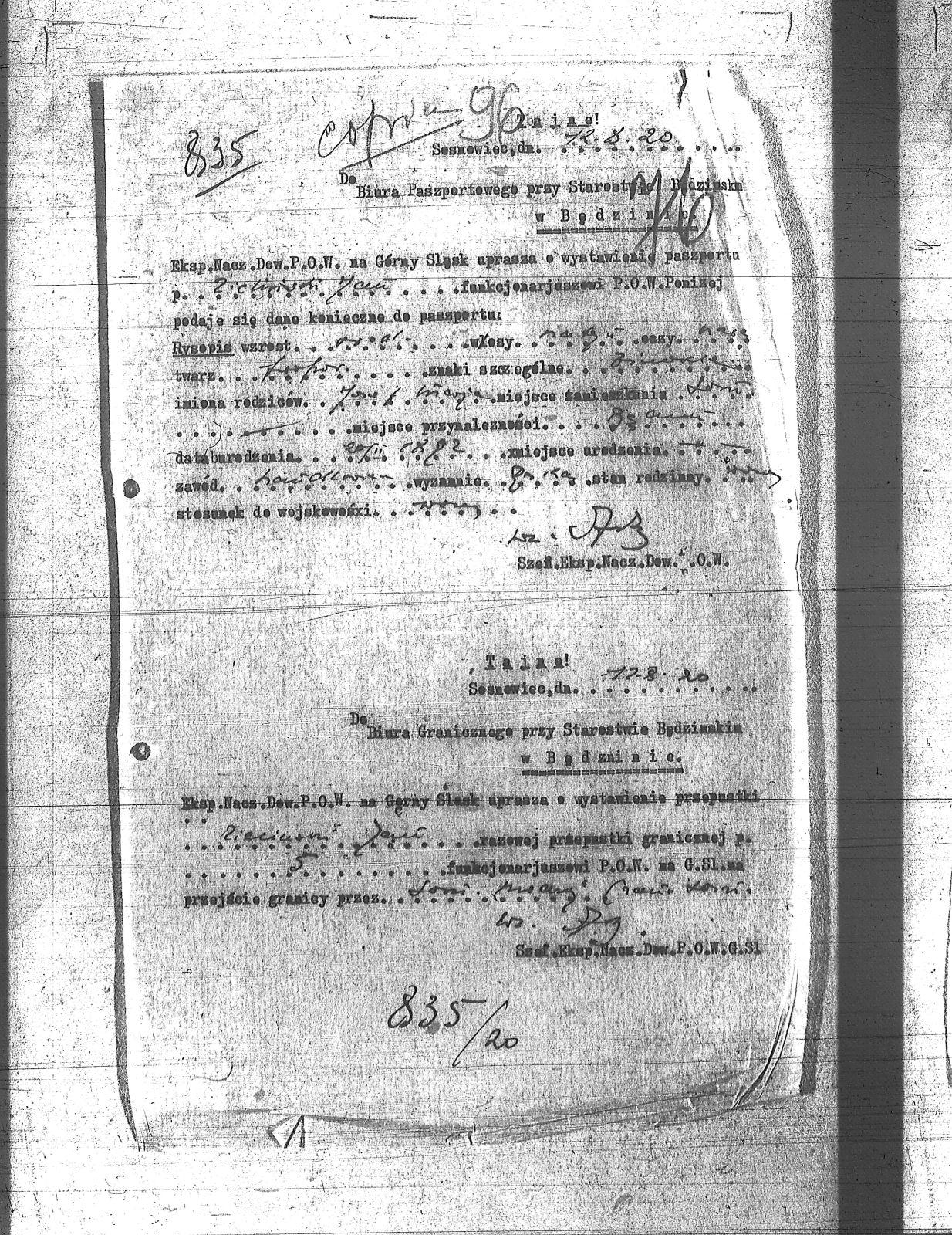 | Tytuł | Do Biura Paszportowego i Granicznego przy Starostwie Będzińskim |