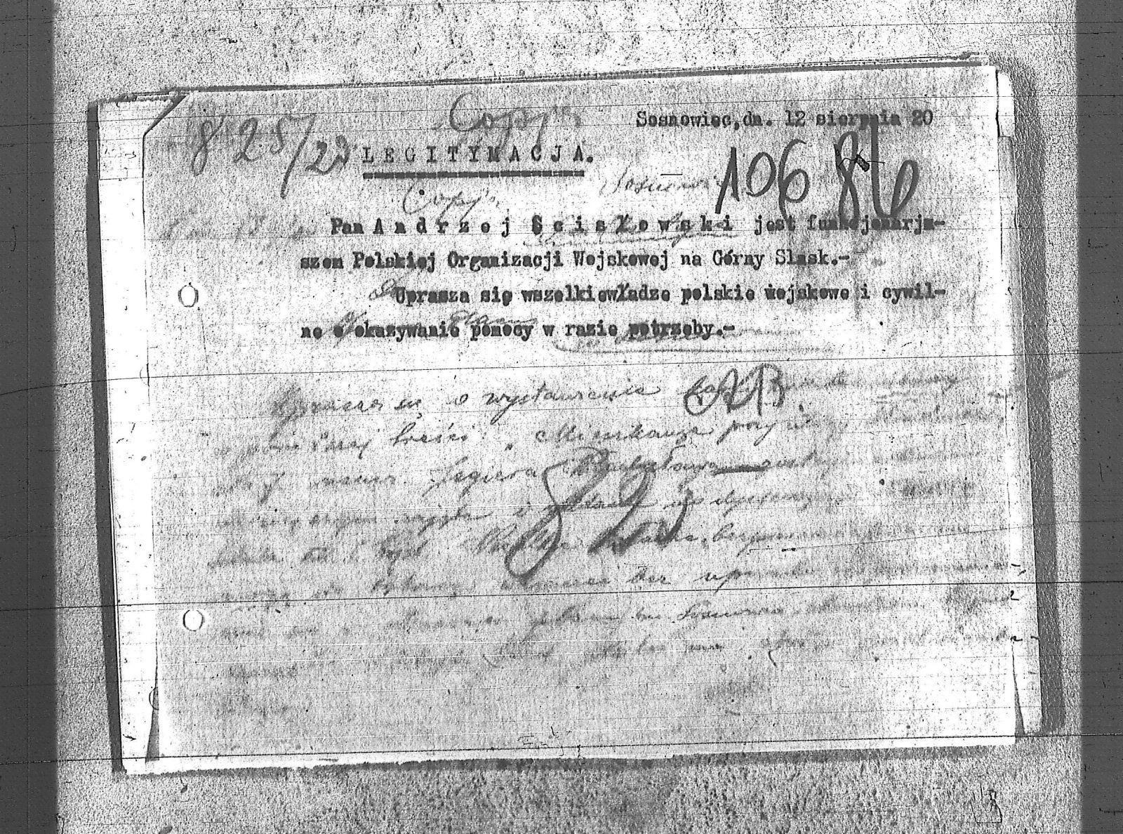 Tytuł teczki[Naczelne Dowództwo POW na Górnym Śląsku - protokoły, korespondencja, legitymacje, przepustki i upoważnienia]