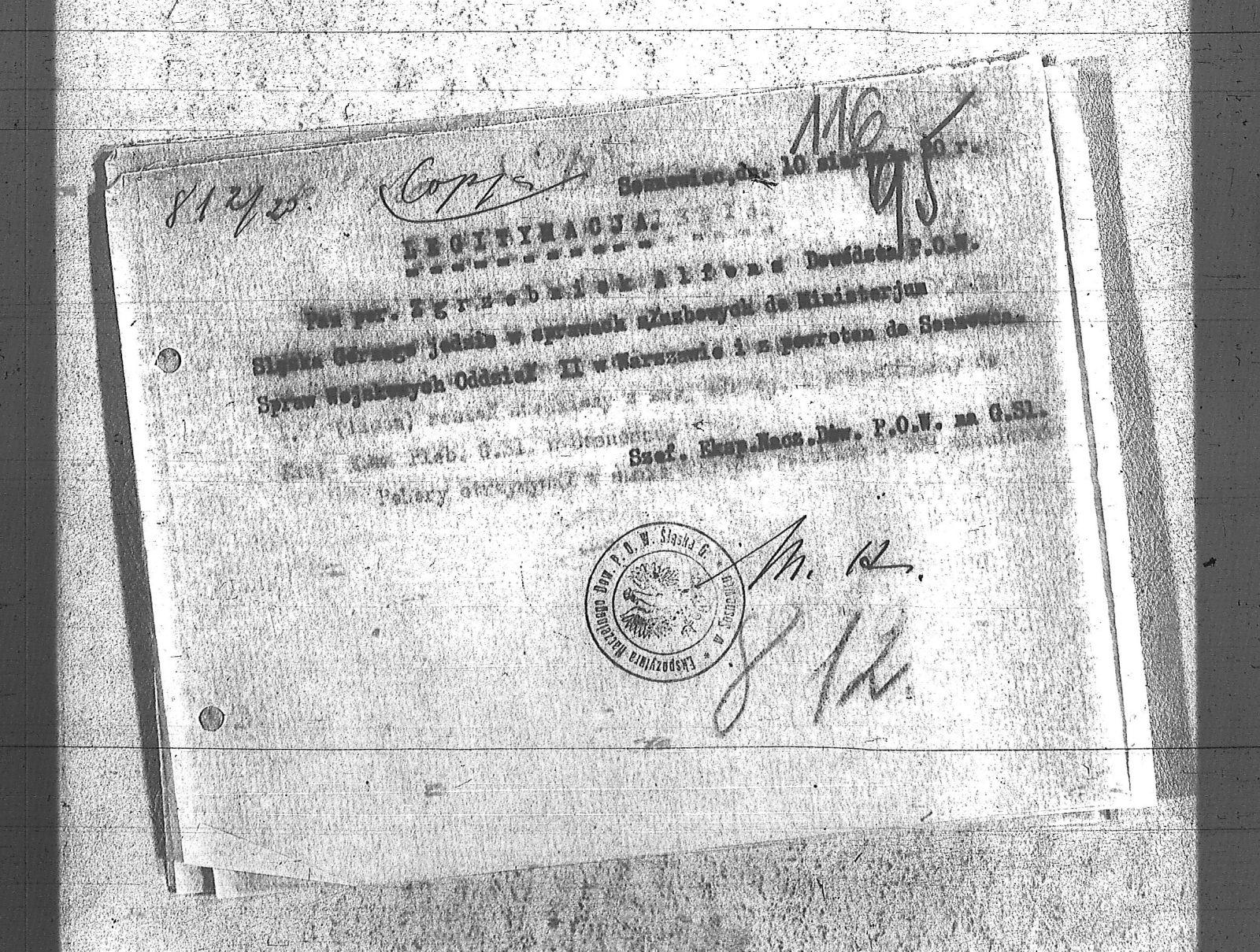 Tytuł teczki[Naczelne Dowództwo POW na Górnym Śląsku - protokoły, korespondencja, legitymacje, przepustki i upoważnienia]