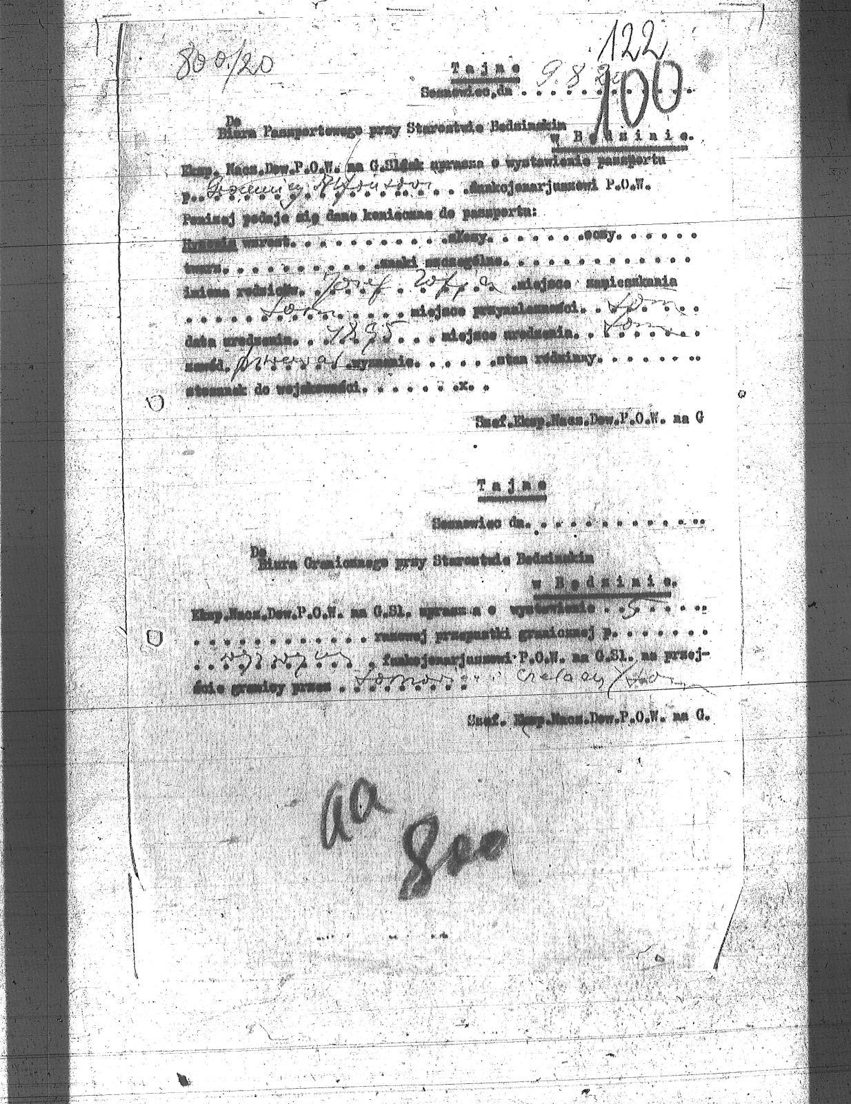 | Tytuł teczki | [Naczelne Dowództwo POW na Górnym Śląsku - protokoły, korespondencja, legitymacje, przepustki i upoważnienia] |