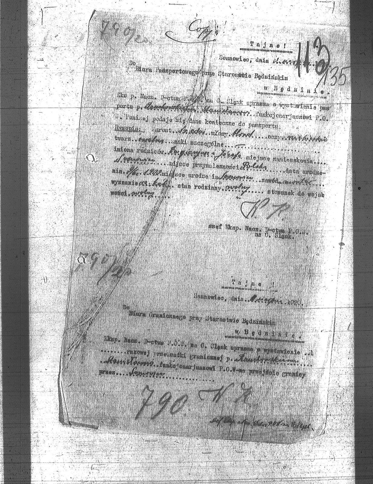 | Tytuł | Do Biura Paszportowego i Granicznego przy Starostwie Będzińskim |