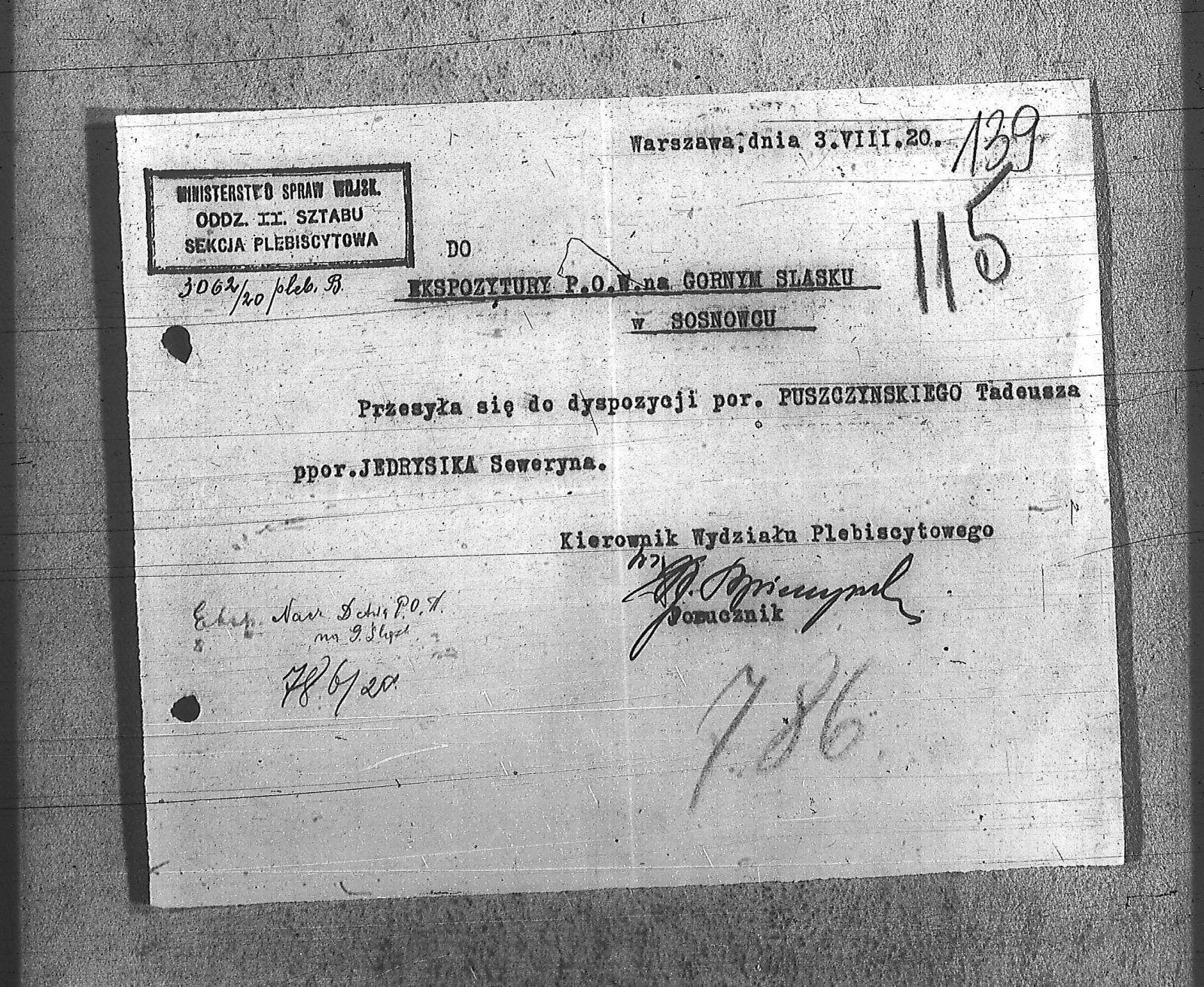 | Tytuł | Do Ekspozytury P.O.W. na Górnym Śląsku w Sosnowcu |